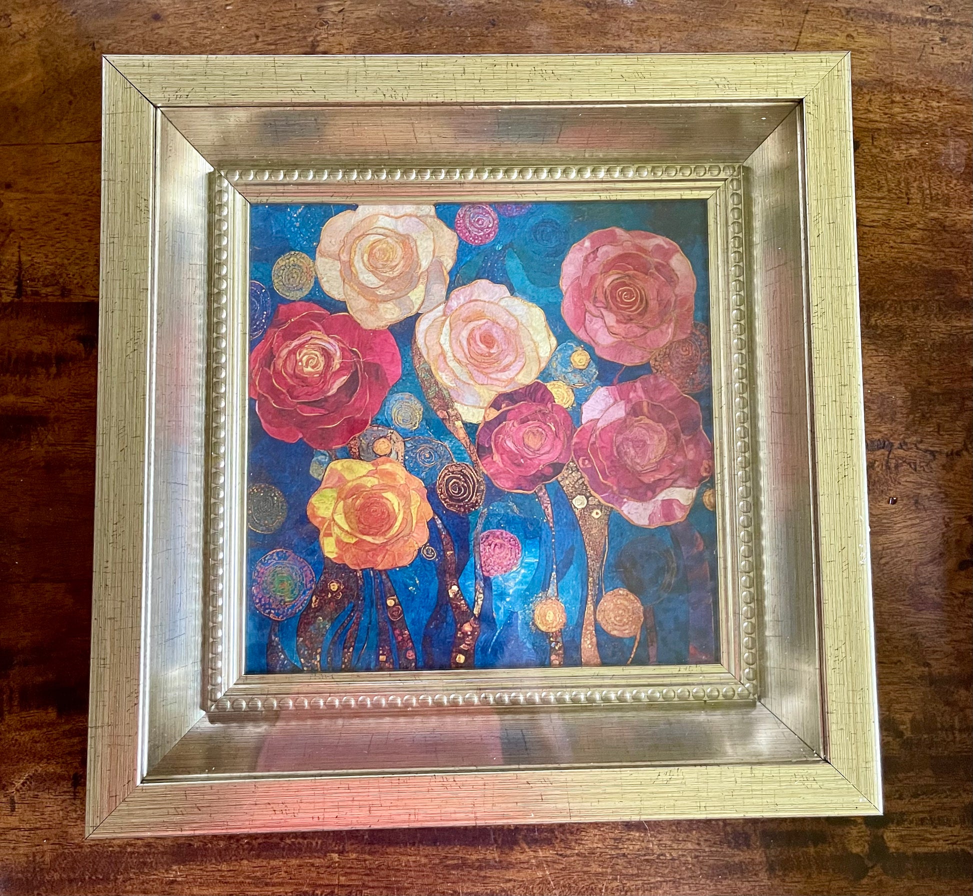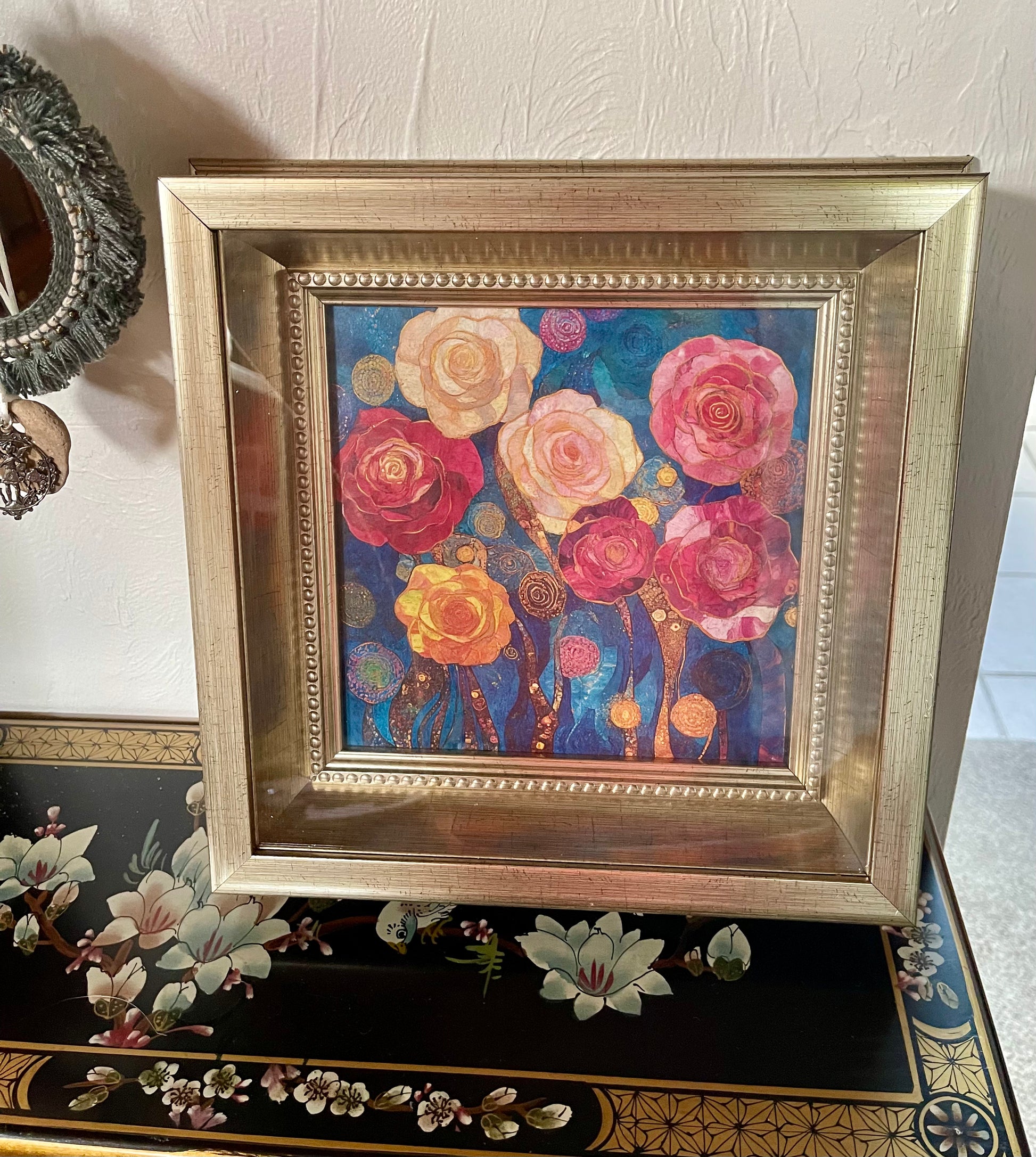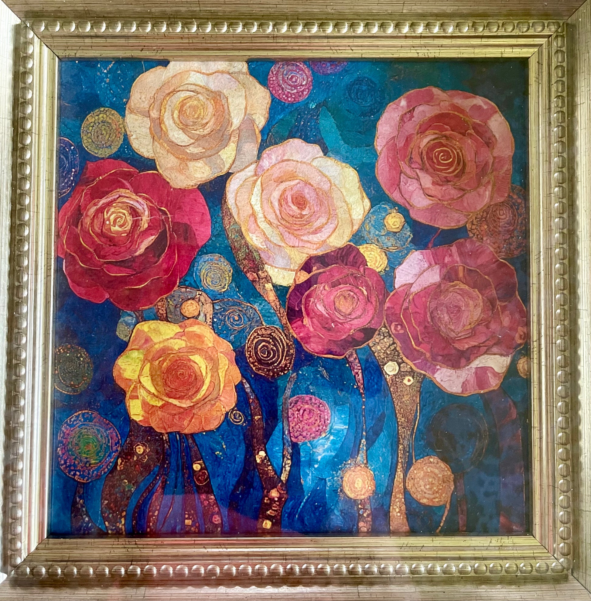 Limited Edition Mystical Roses Art Print on Decoupage Rice Paper in Heavy Shadow Box Frame, Bodhi Home Decor