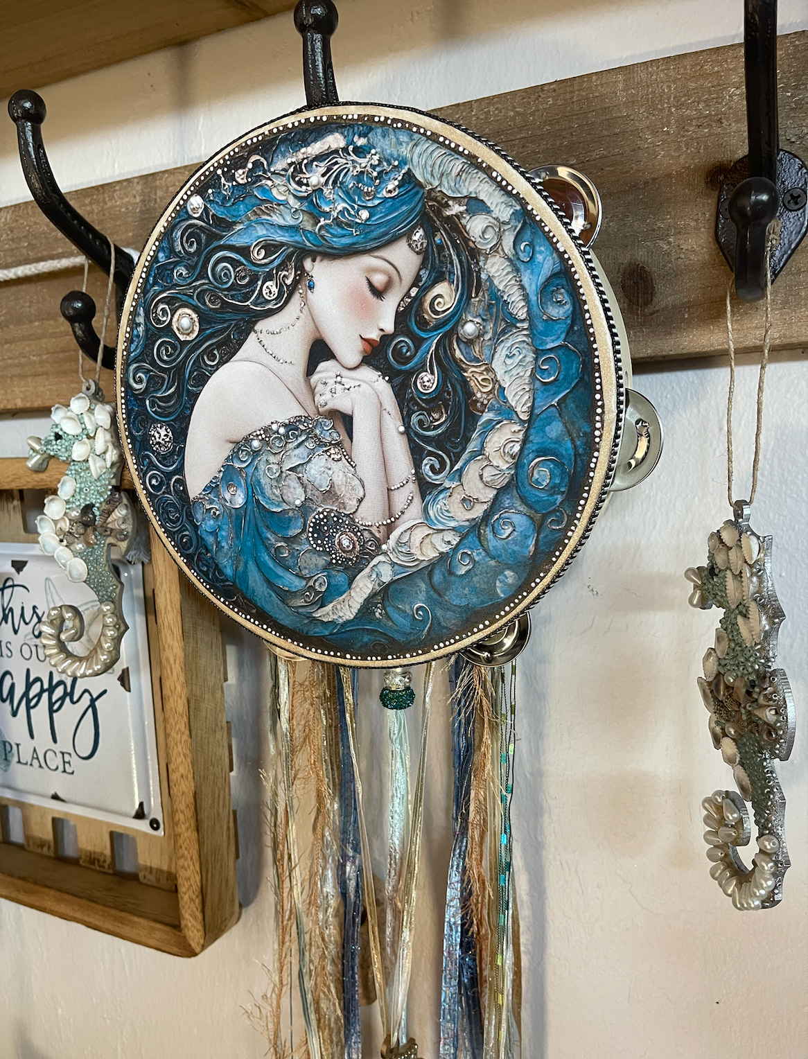 Limited Edition "Pearl" Mermaid Tambourine with Ribbon and Seahorse Ornament