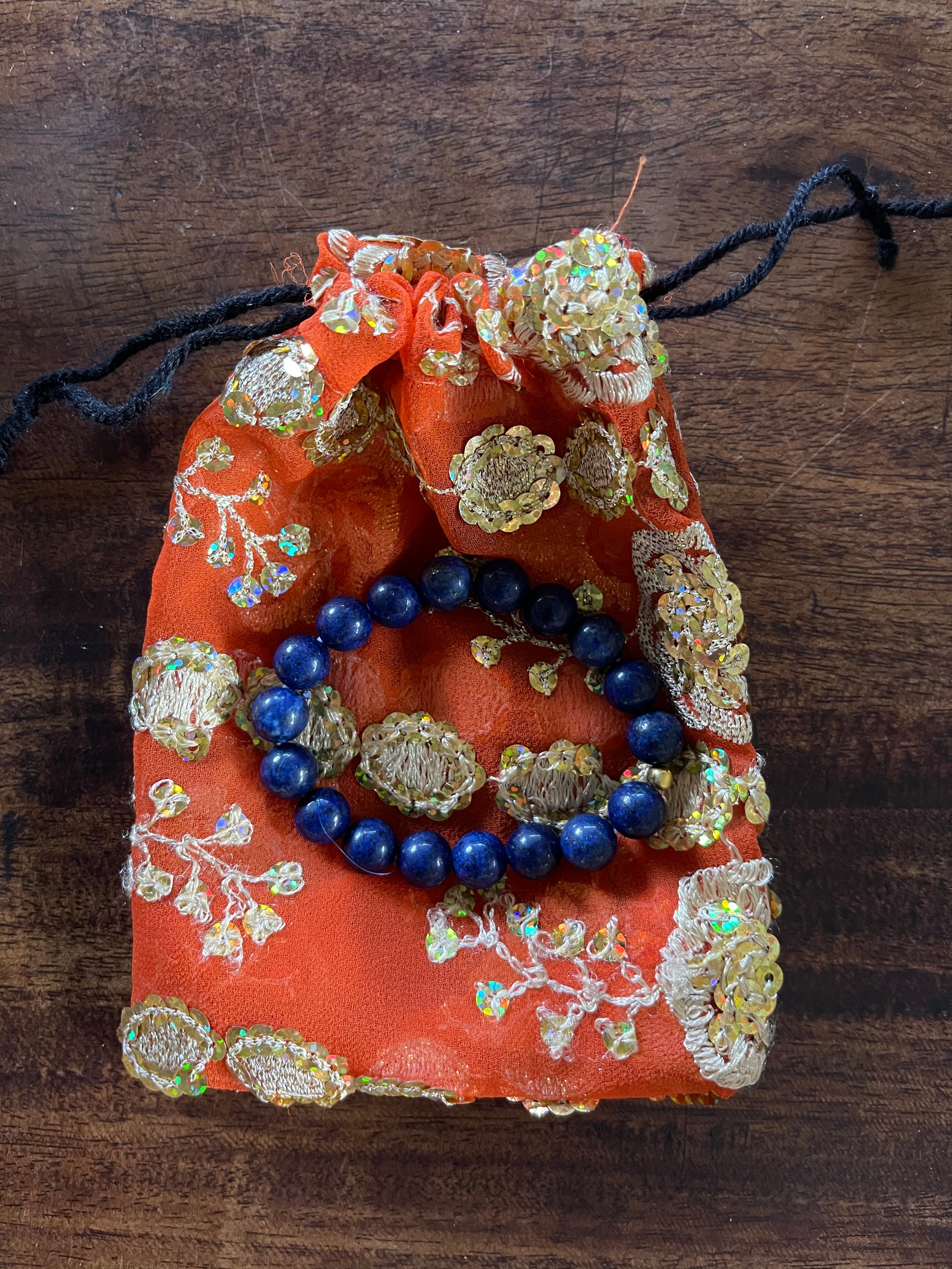 Little Goddess Hand Beaded Lapis Lazuli Bracelet with Gift Pouch, Bodhi Jewelry