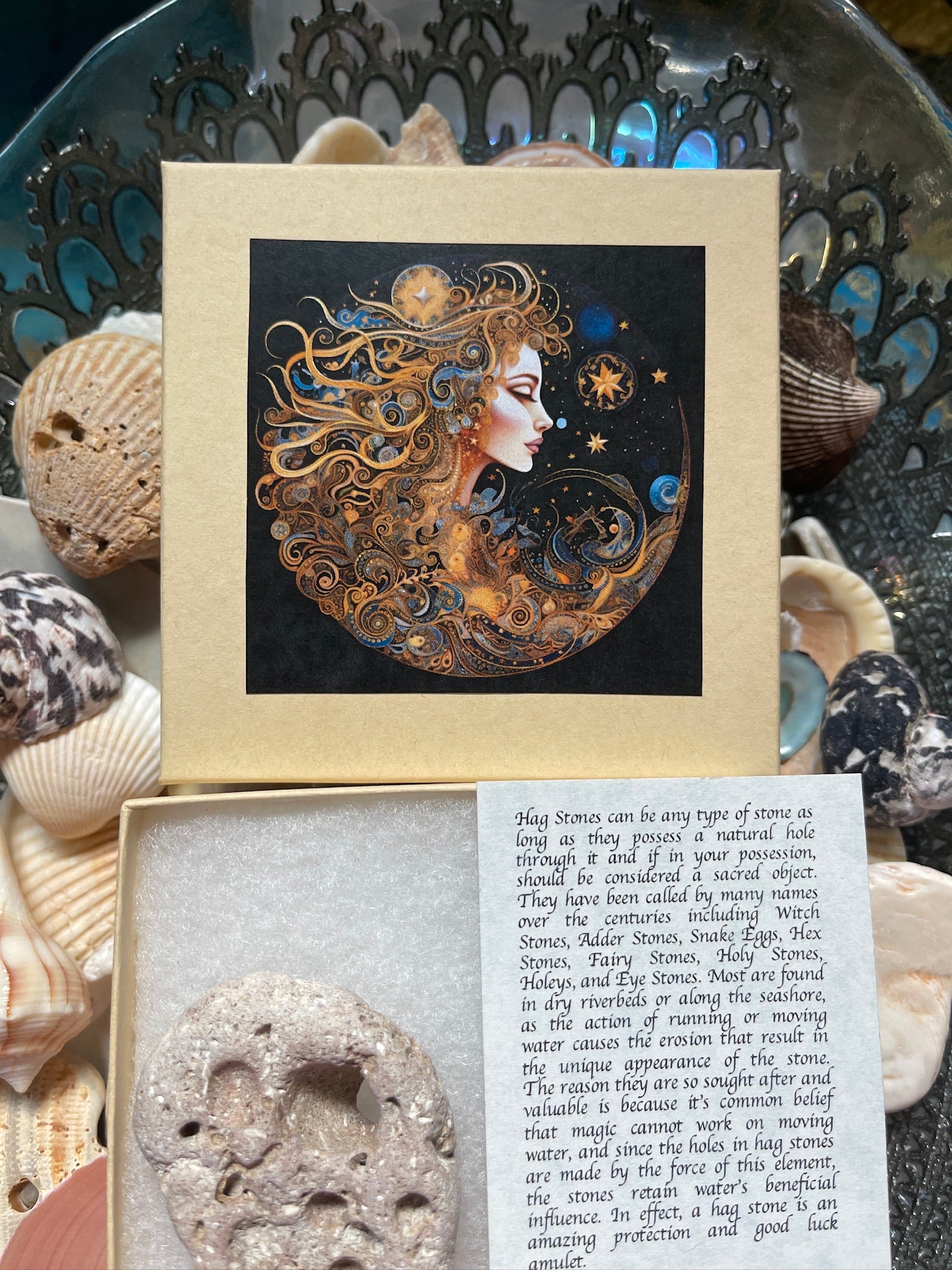 Local Bodhi Leaf Market Hagstone in Mystical Moon Goddess Gift Box