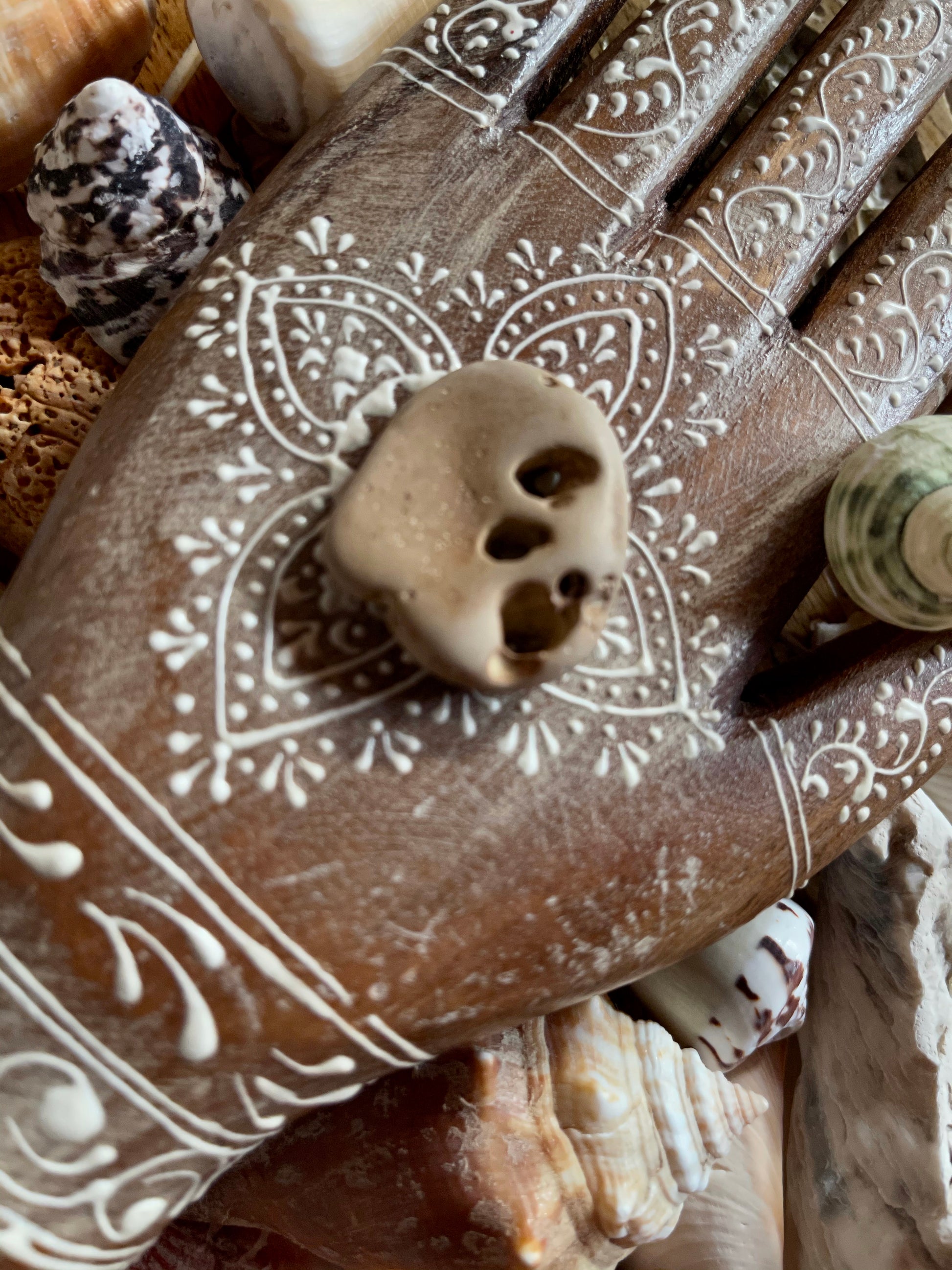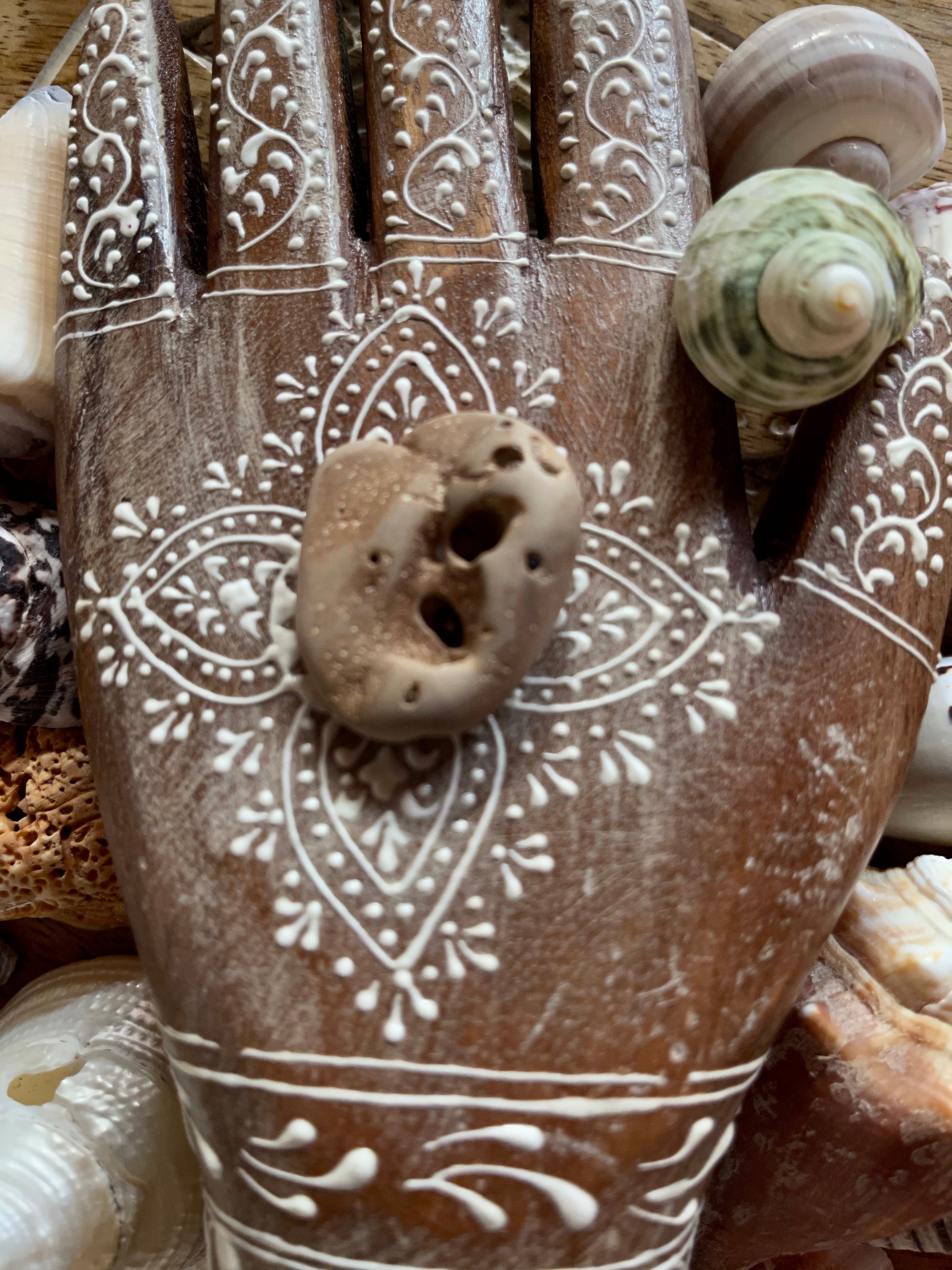 Hag Stones can be any type of stone as long as they possess a natural hole through it and if in your possession, should be considered a sacred object. They have been called by many names over the centuries including Witch Stones, Adder Stones, Snake Eggs, Hex Stones, Fairy Stones, Holy Stones, Holeys, and Eye Stones. Most are found in dry riverbeds or along the seashore, as the action of running or moving water causes the erosion that result in the unique appearance of the stone.