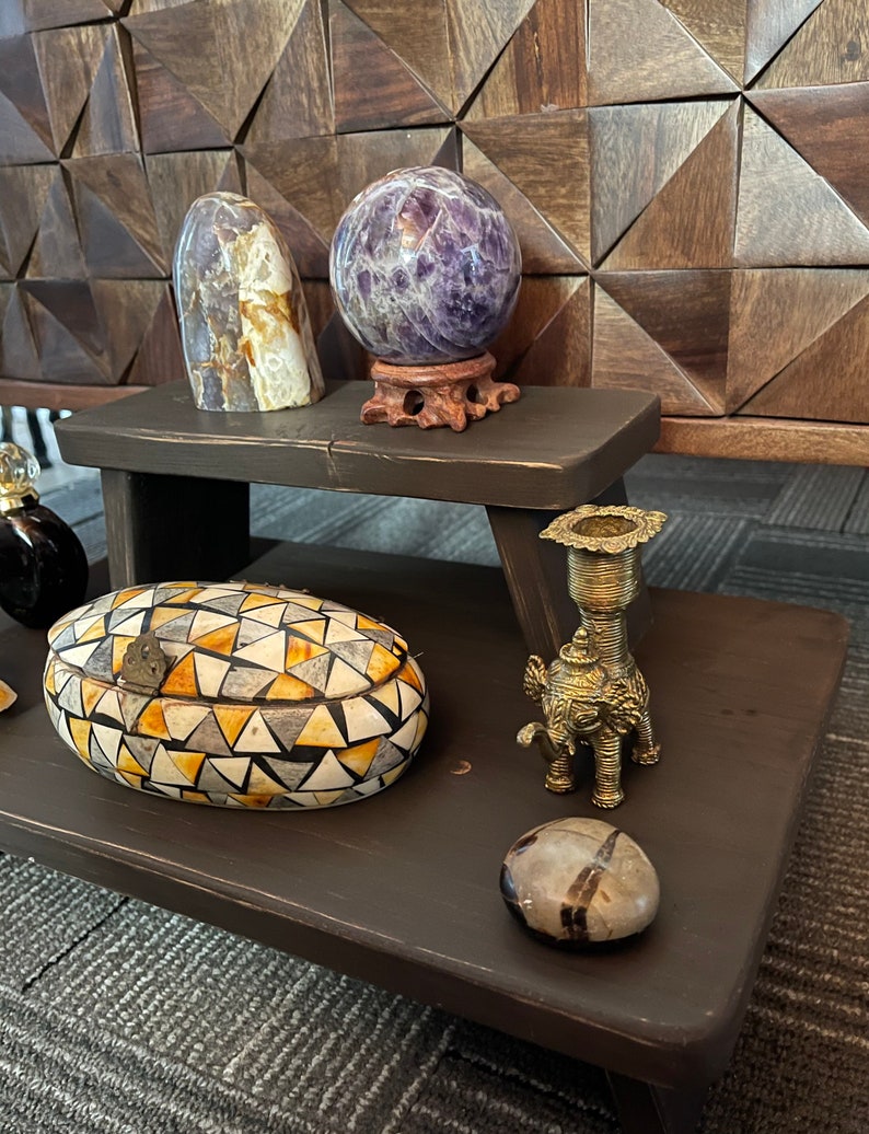 This one has been stained a deep brown and then slightly distressed for a beautiful finish.