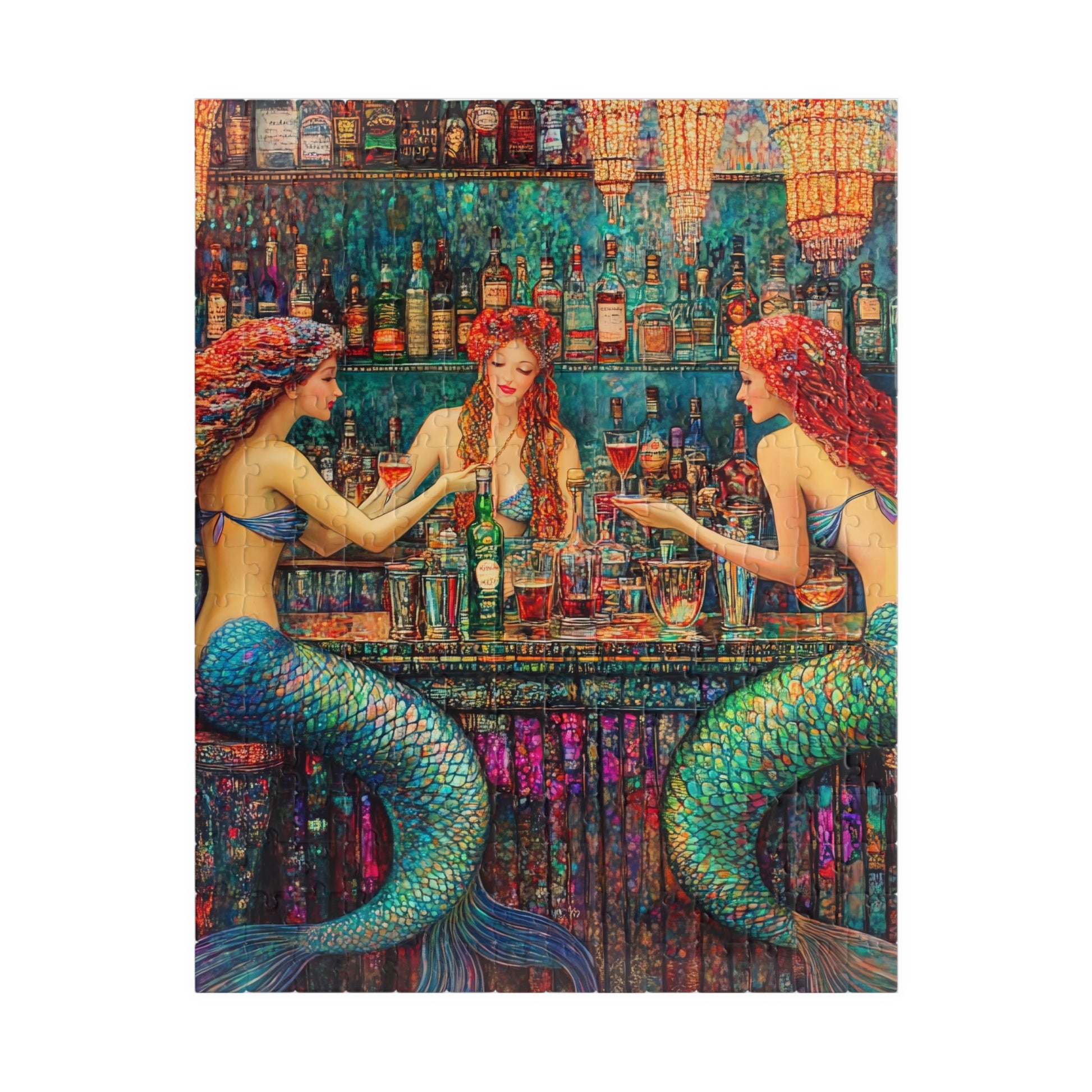 Mermaid Bar Scene Puzzle | 520 or 1014 Piece Jigsaw, Colorful Mermaid Artwork