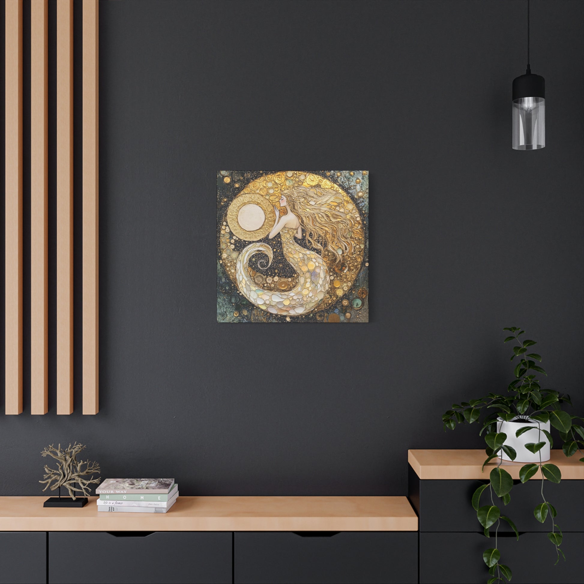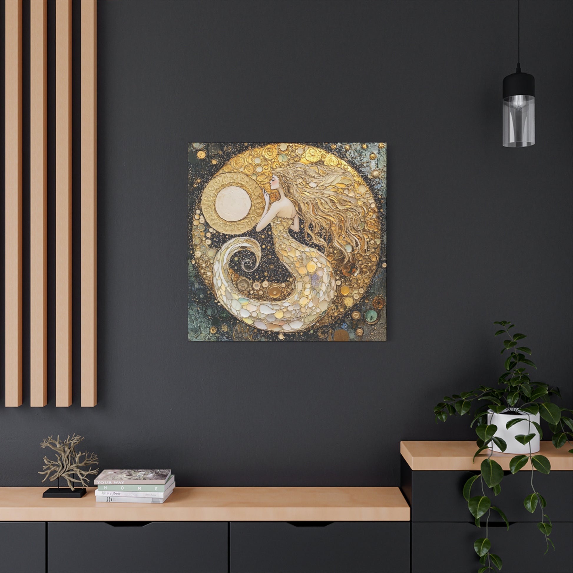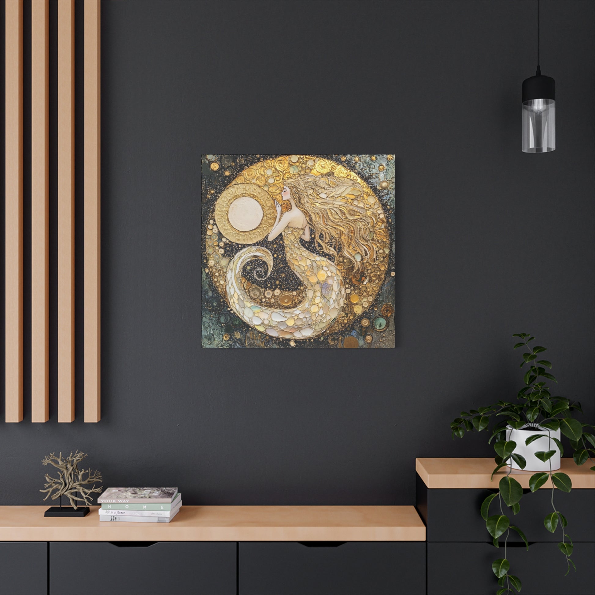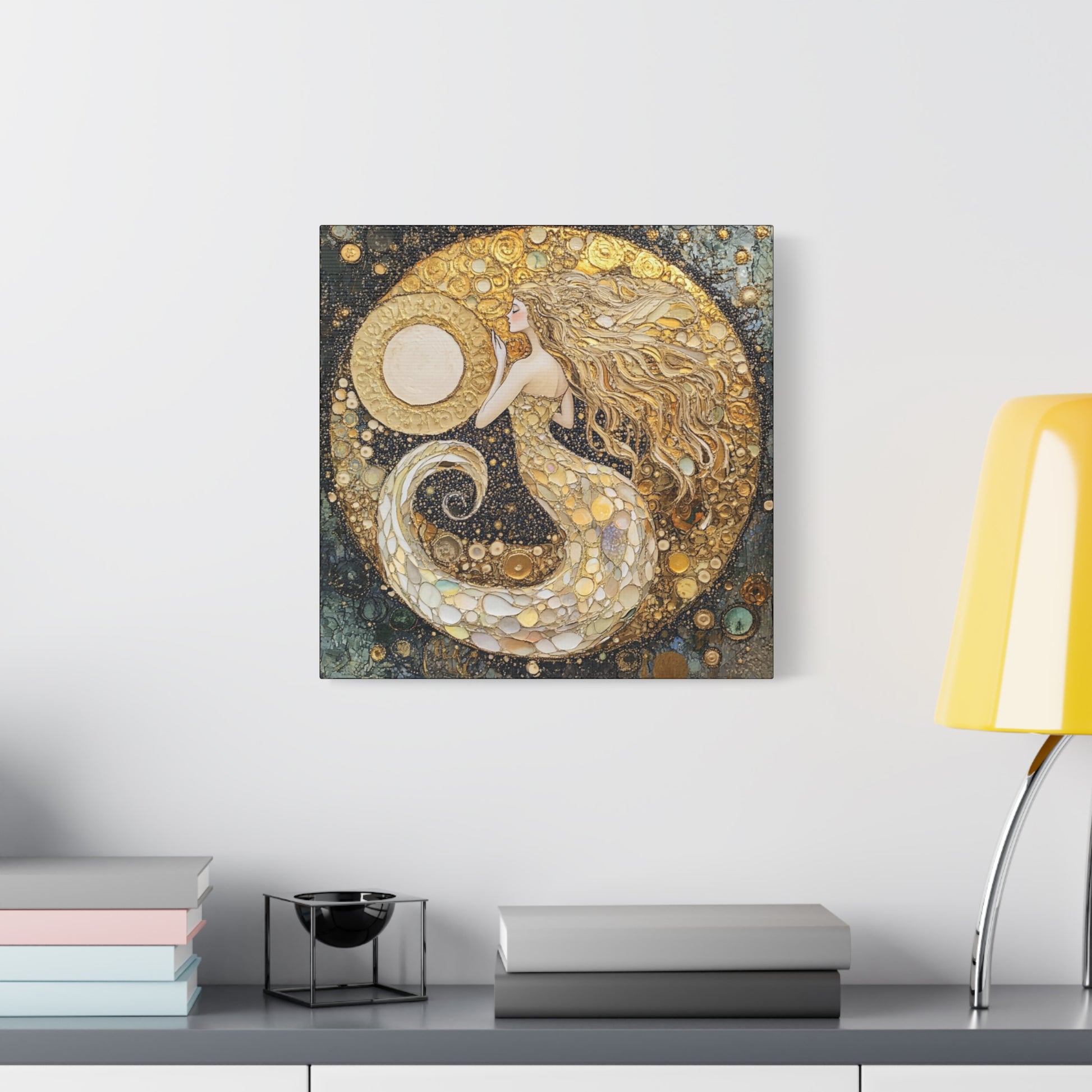 Mermaid Moon Art Canvas, Magical Home Decor, Coastal Vibes, Bohemian Wall Art, Gift for Sea Lovers, Nautical Aesthetic, Unique Art Piece