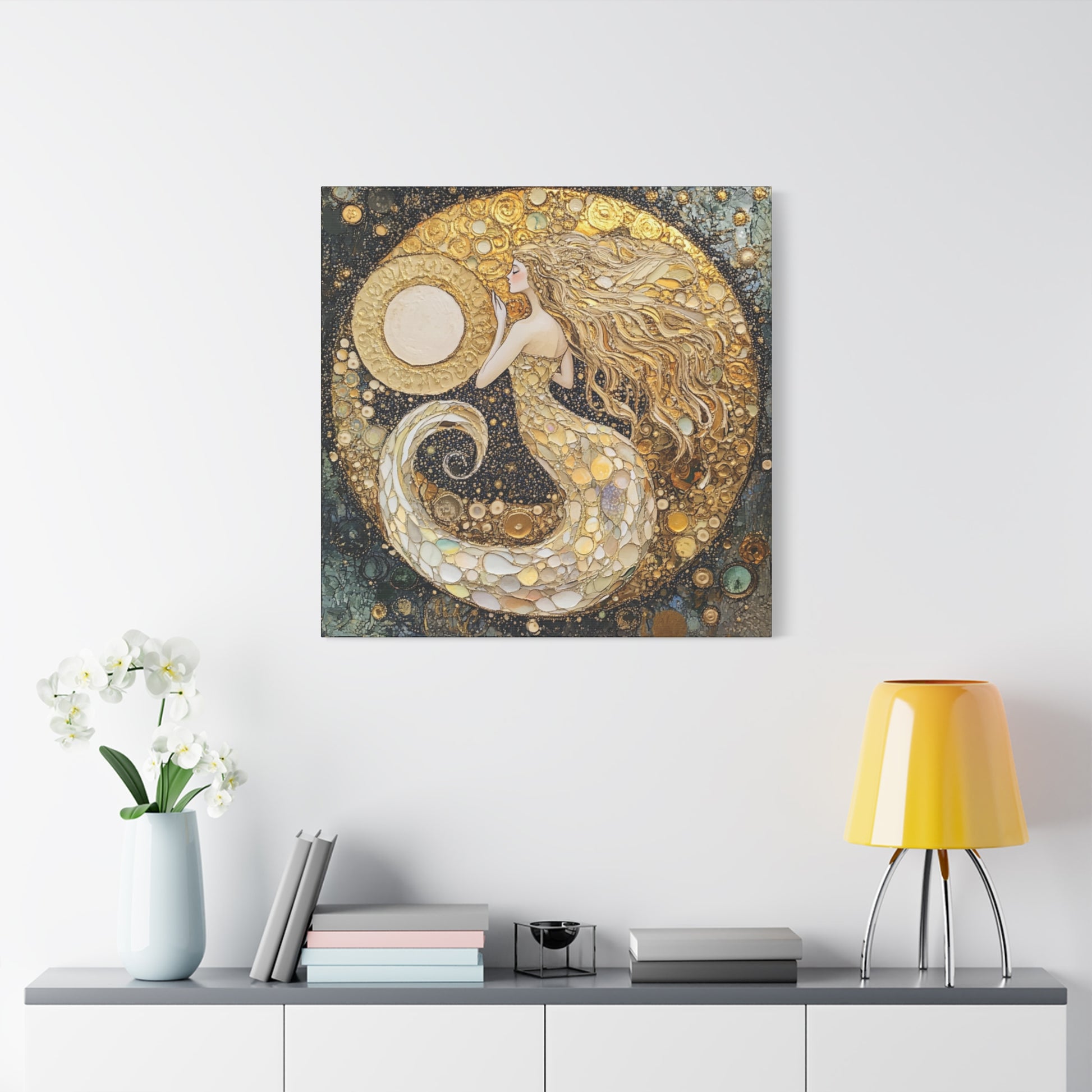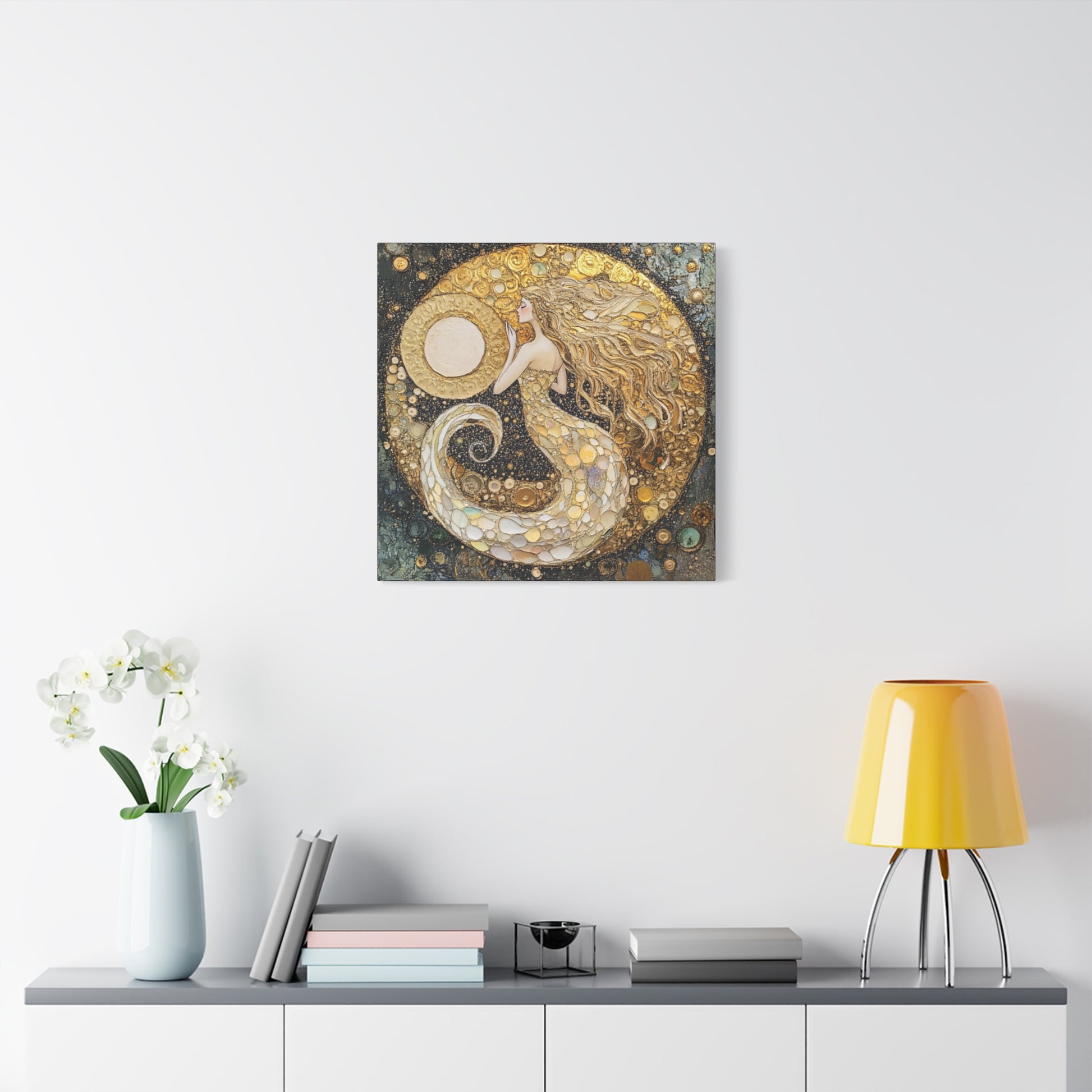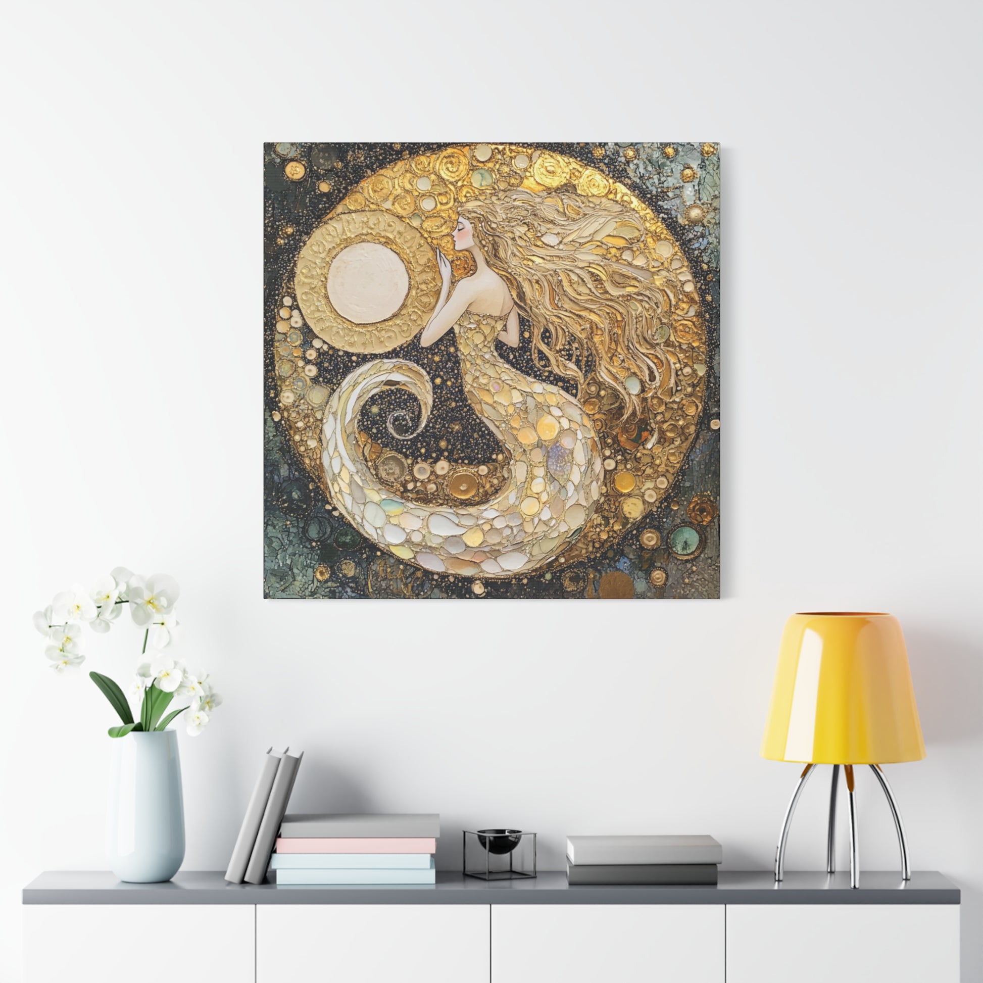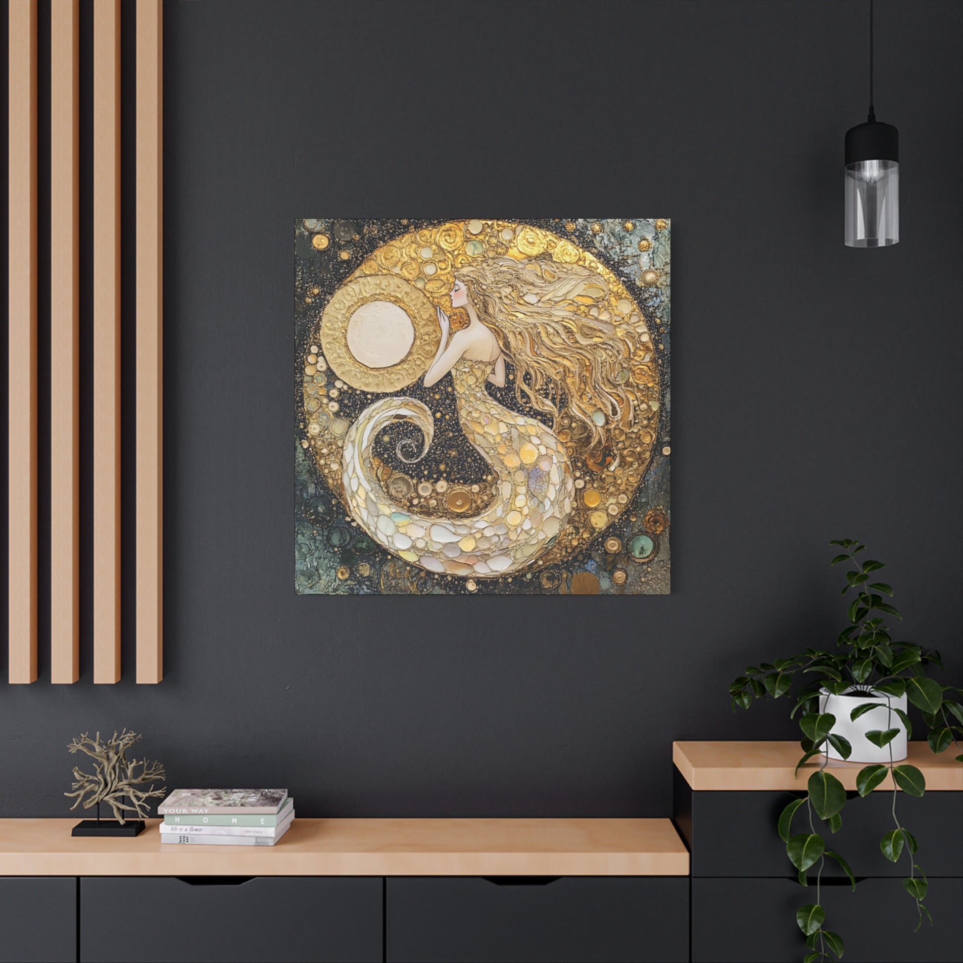 Mermaid Moon Art Canvas, Magical Home Decor, Coastal Vibes, Bohemian Wall Art, Gift for Sea Lovers, Nautical Aesthetic, Unique Art Piece