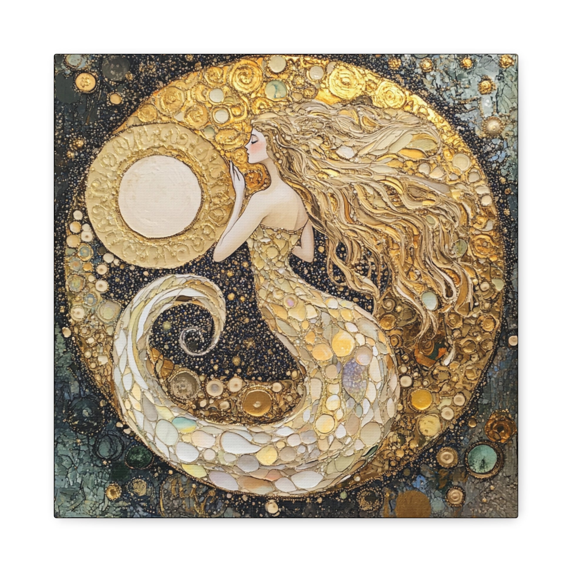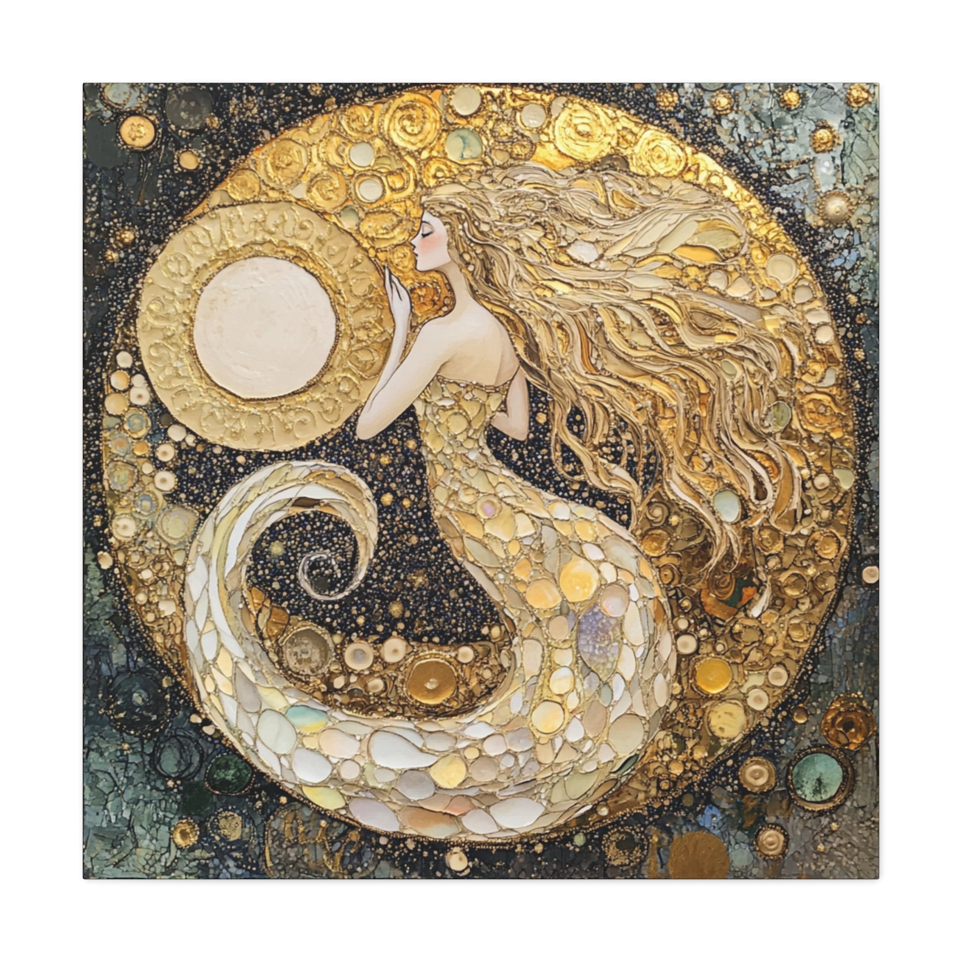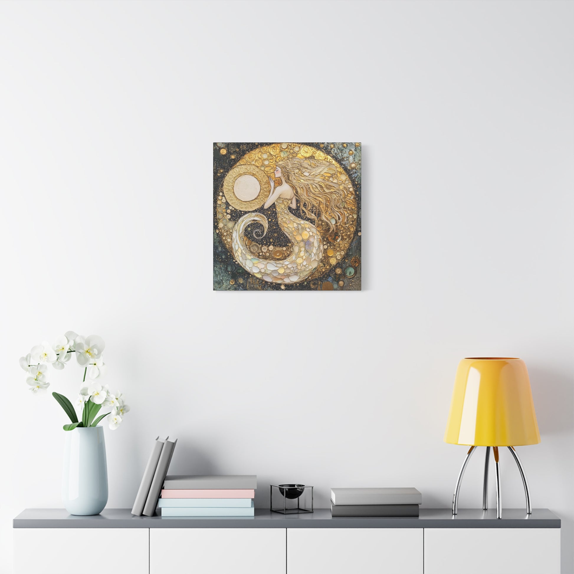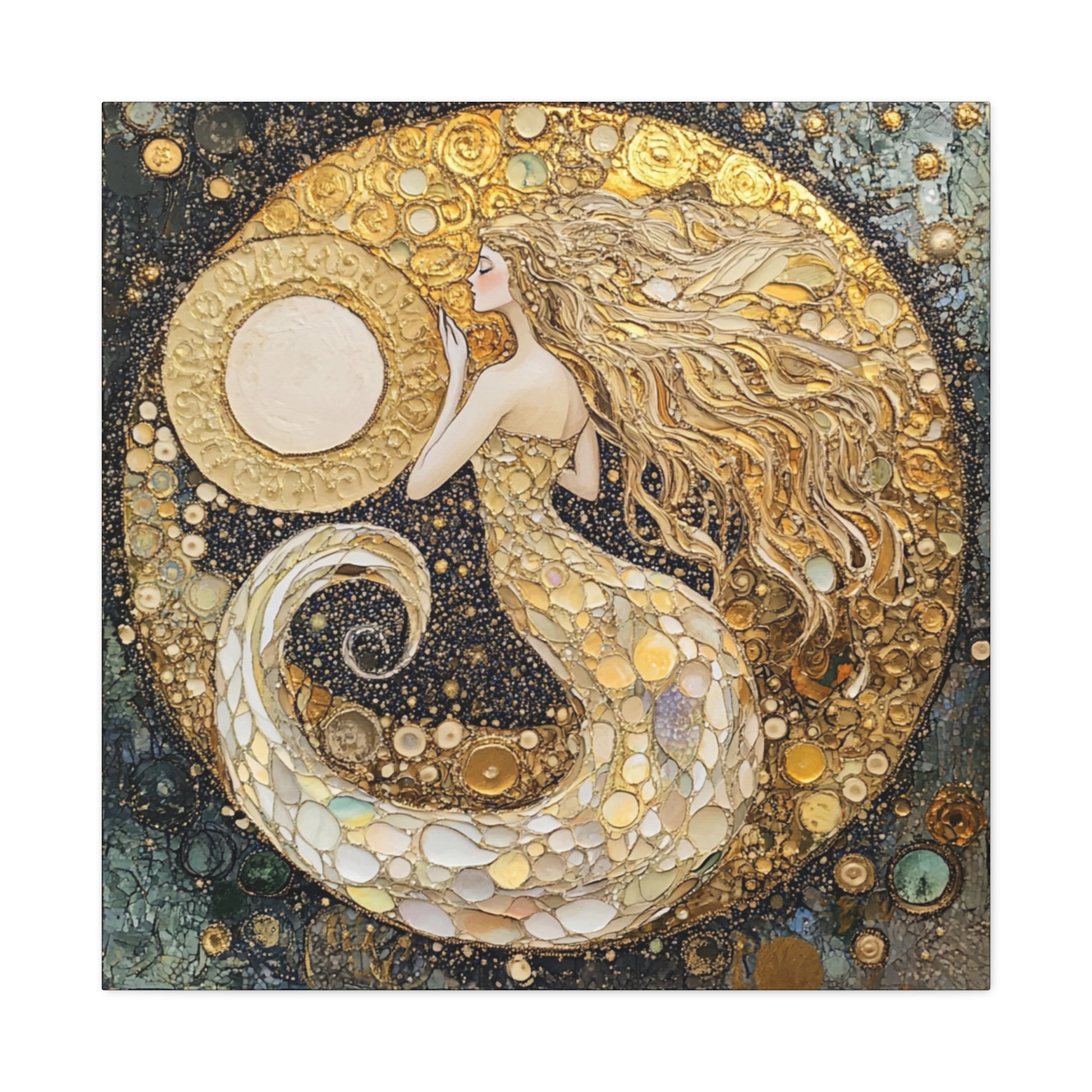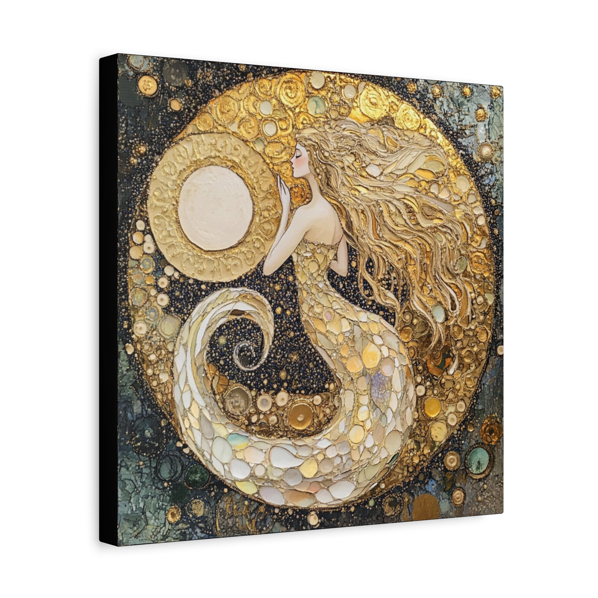 Mermaid Moon Art Canvas, Magical Home Decor, Coastal Vibes, Bohemian Wall Art, Gift for Sea Lovers, Nautical Aesthetic, Unique Art Piece