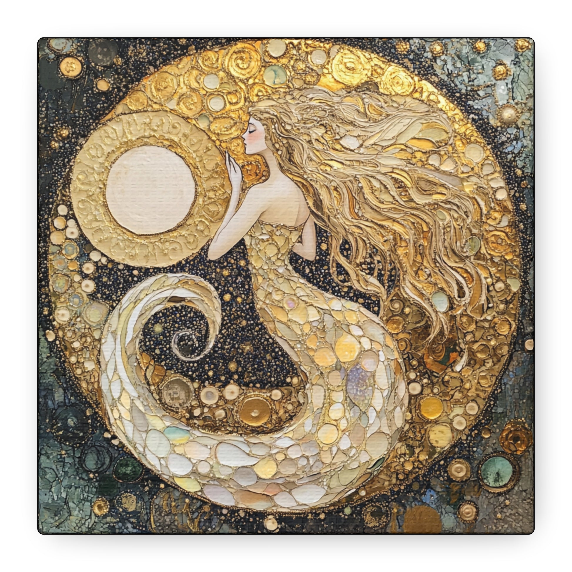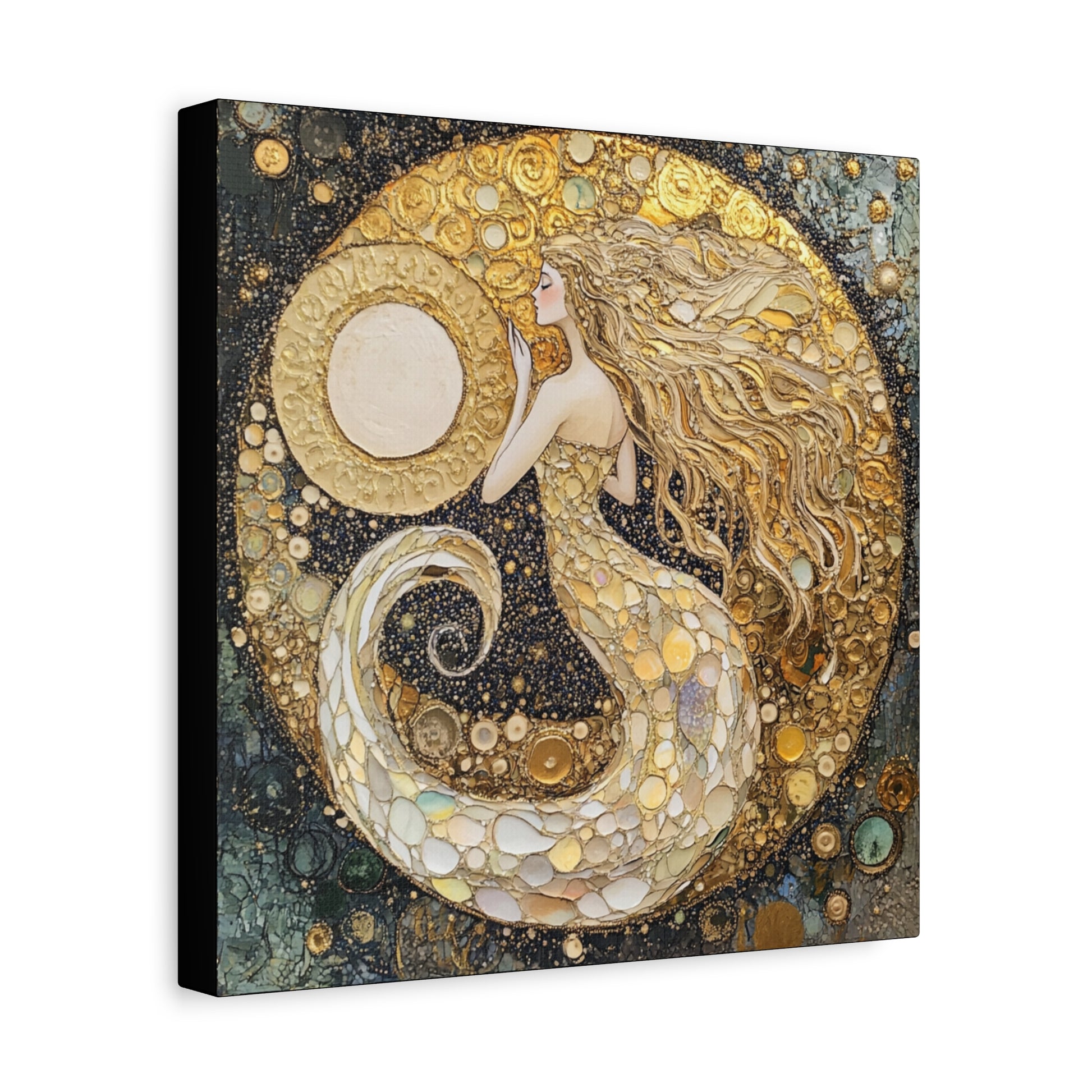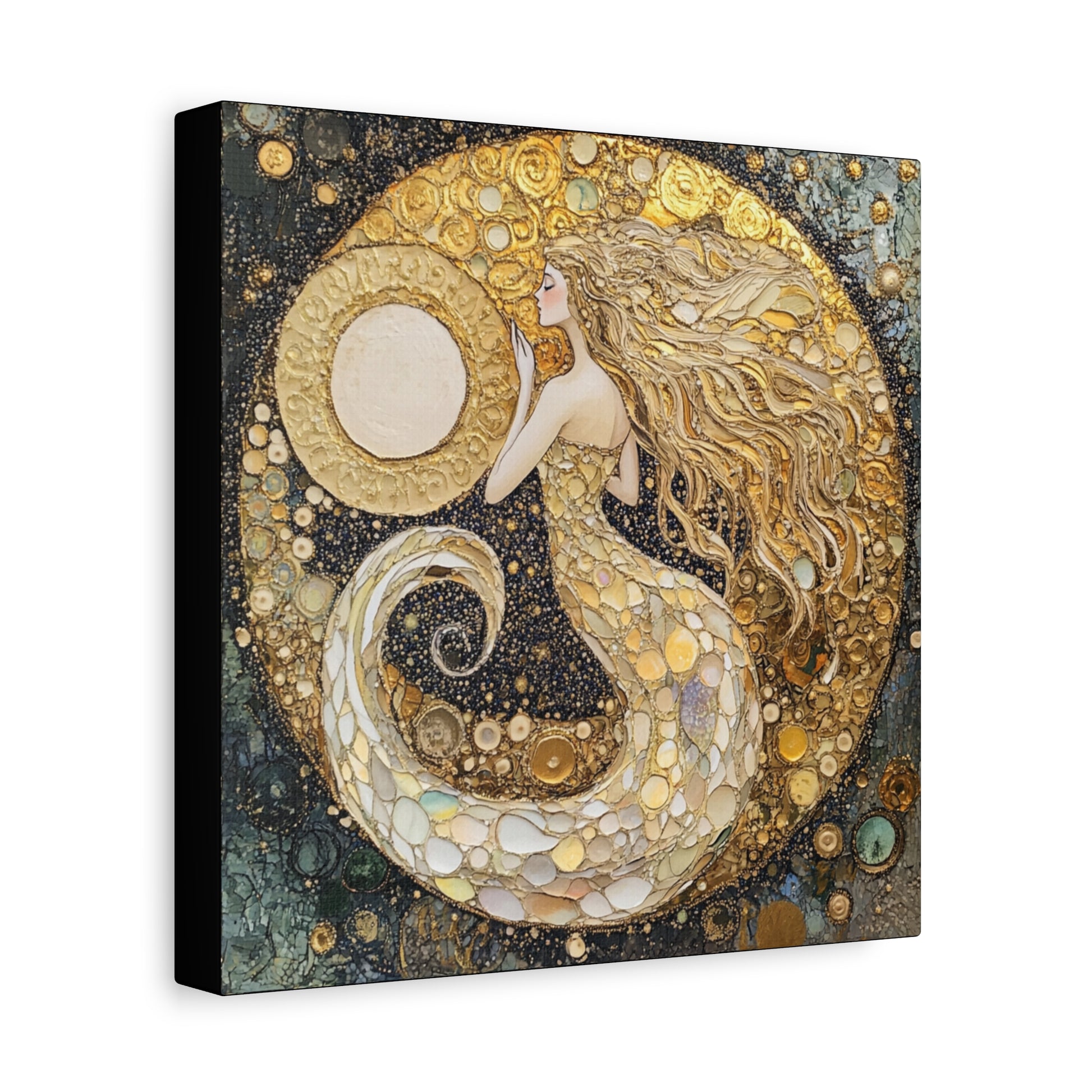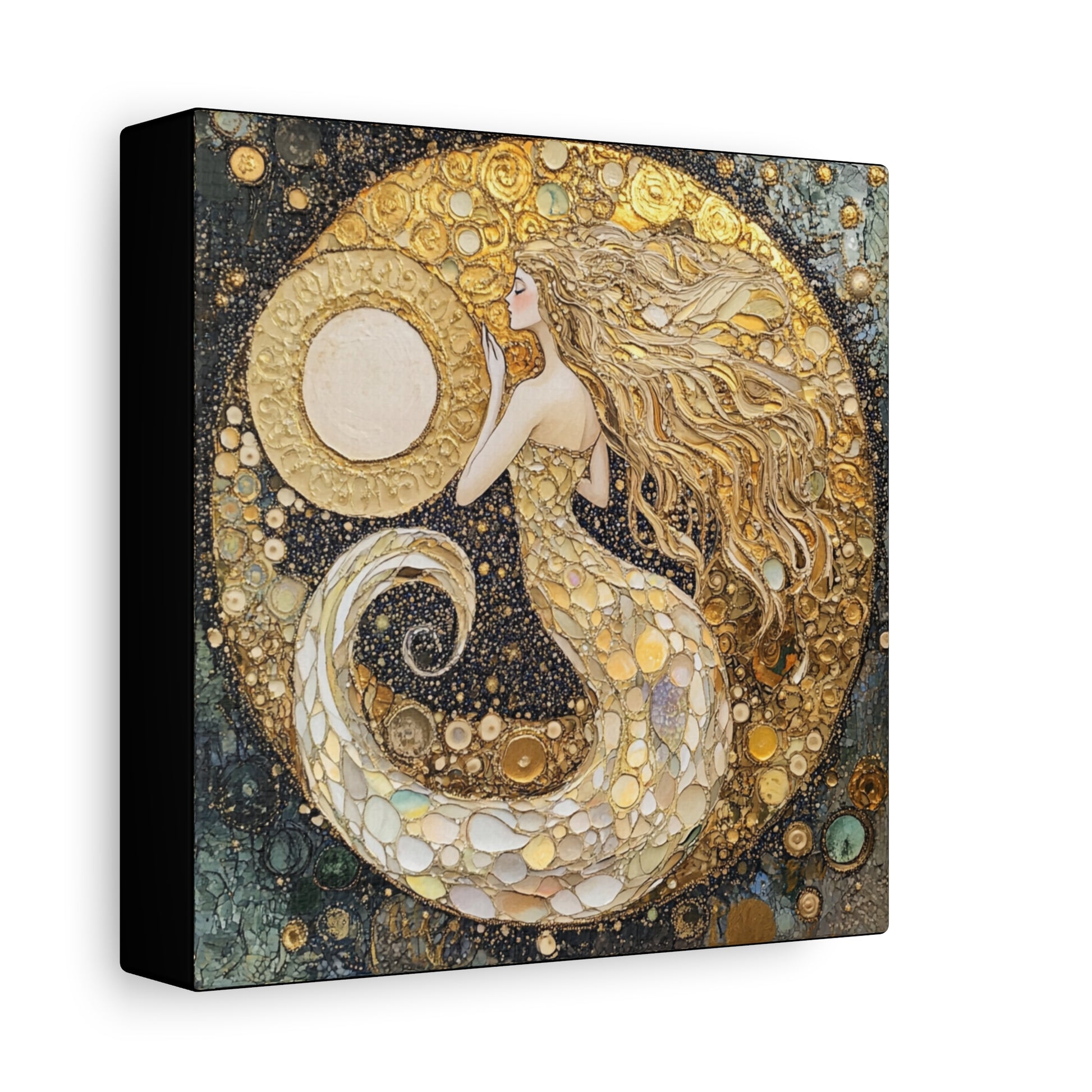 Mermaid Moon Art Canvas, Magical Home Decor, Coastal Vibes, Bohemian Wall Art, Gift for Sea Lovers, Nautical Aesthetic, Unique Art Piece