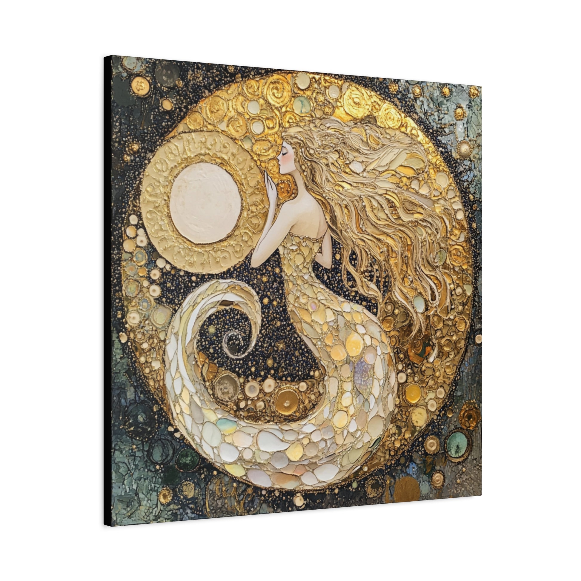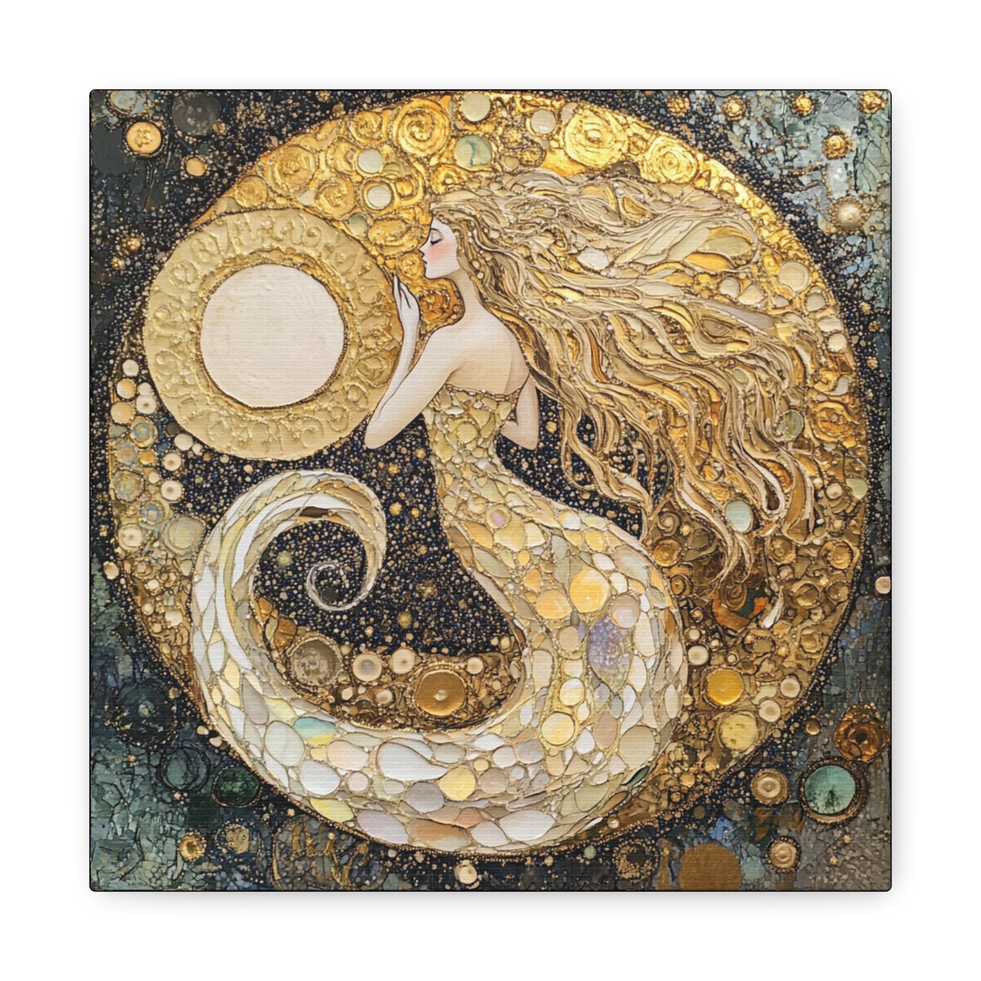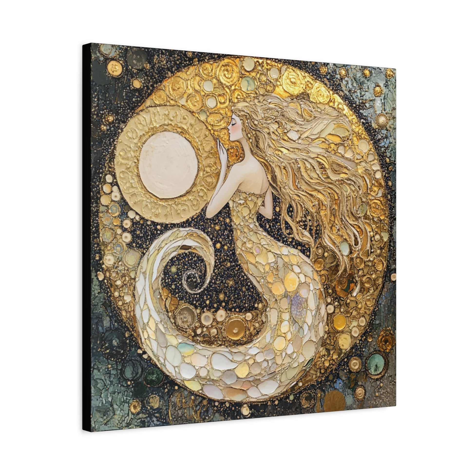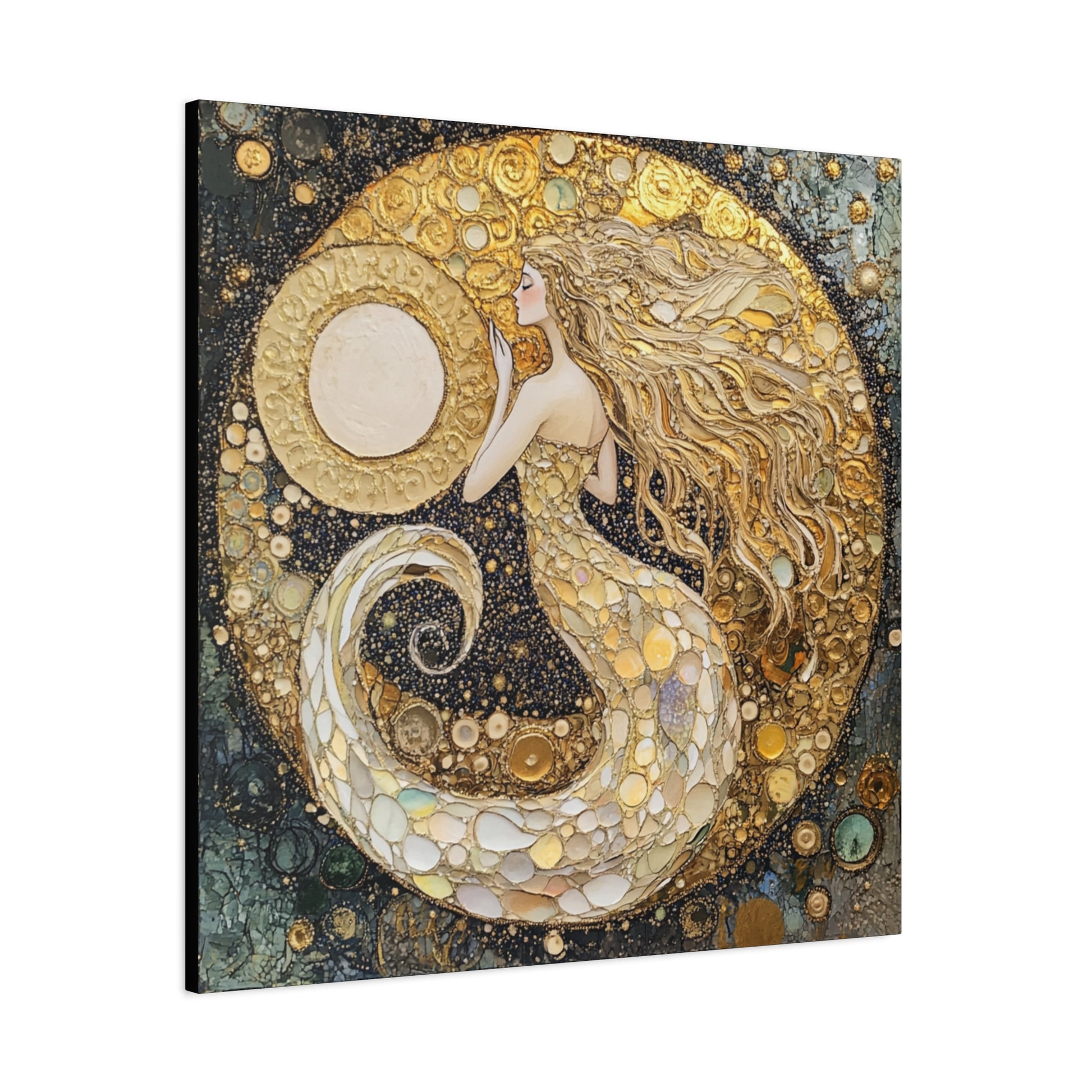 Mermaid Moon Art Canvas, Magical Home Decor, Coastal Vibes, Bohemian Wall Art, Gift for Sea Lovers, Nautical Aesthetic, Unique Art Piece