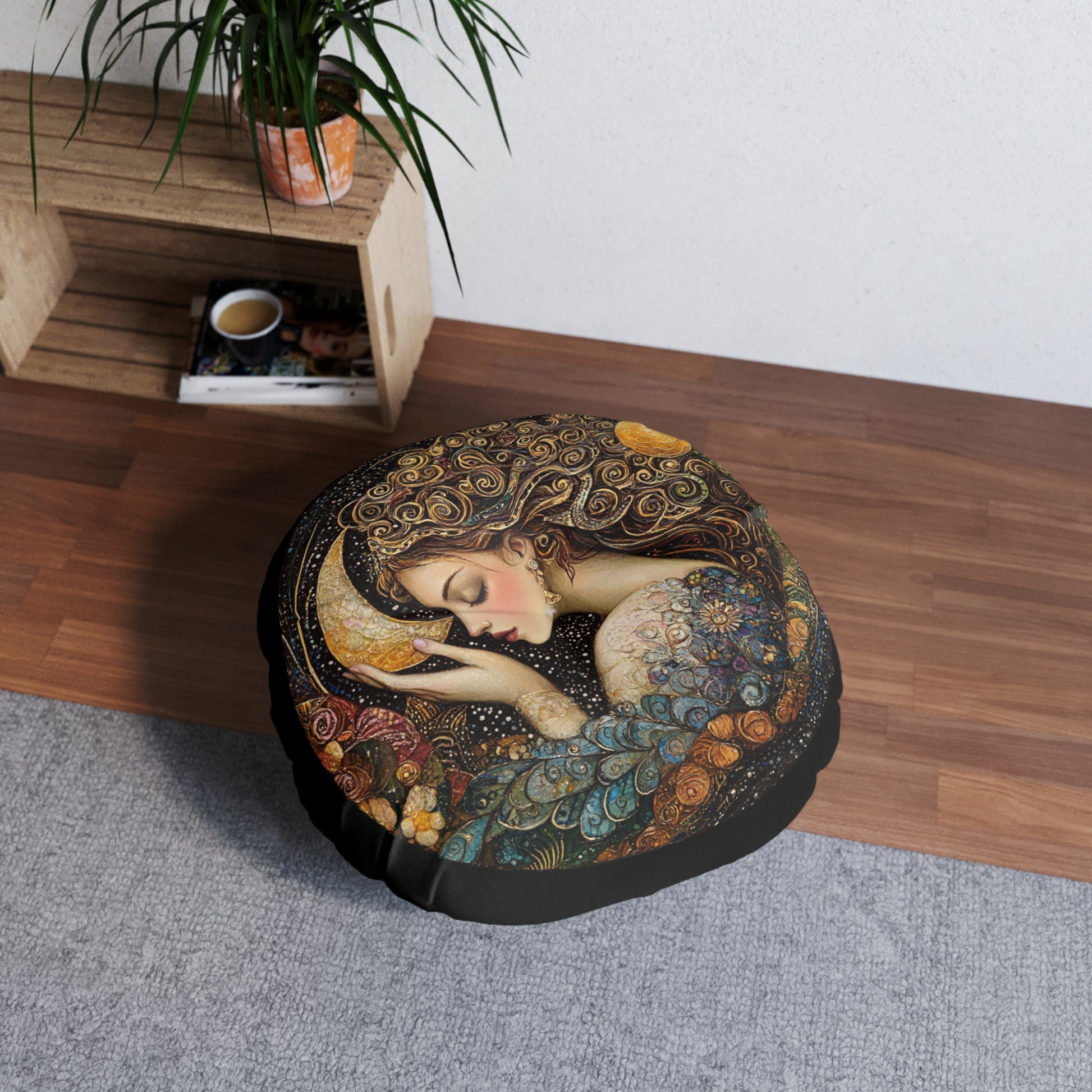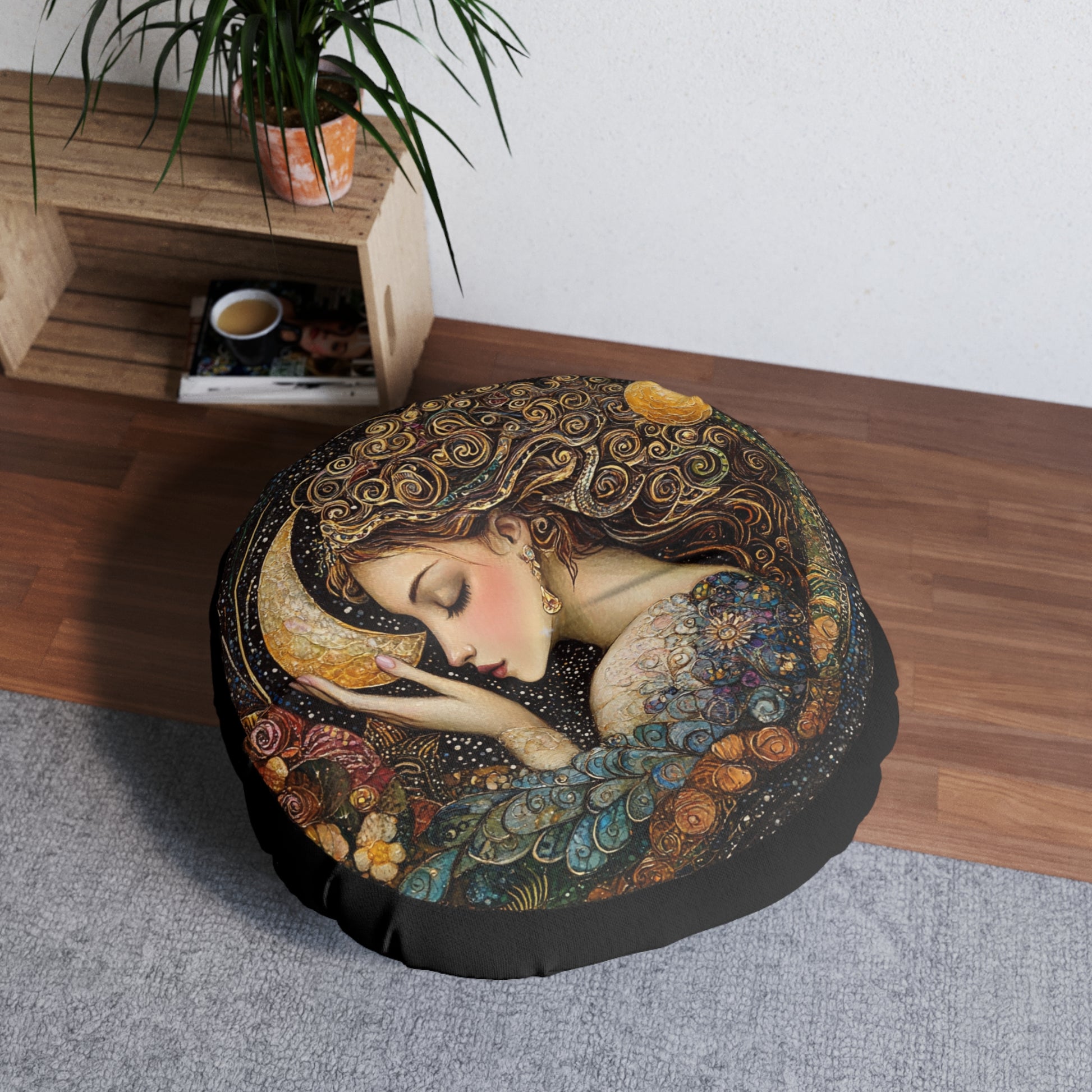 Mermaid Slumber Tufted Floor Pillow, Round - Cozy Home Decor, Meditation Cushion, Bohemian Gift, Festival Accent, Bedroom Accessory