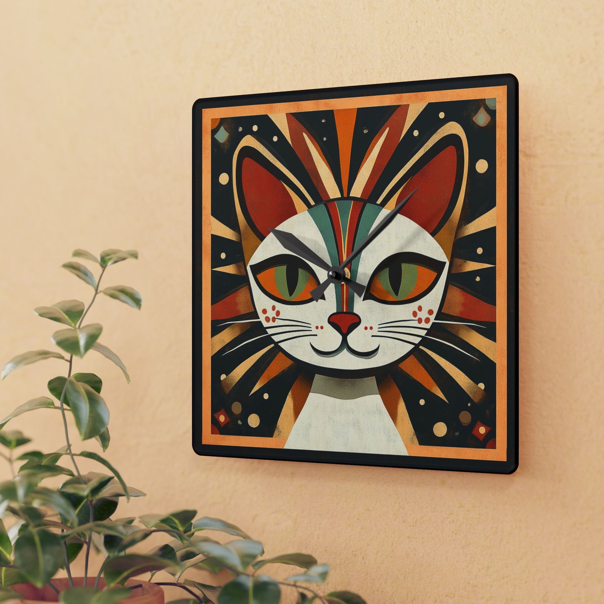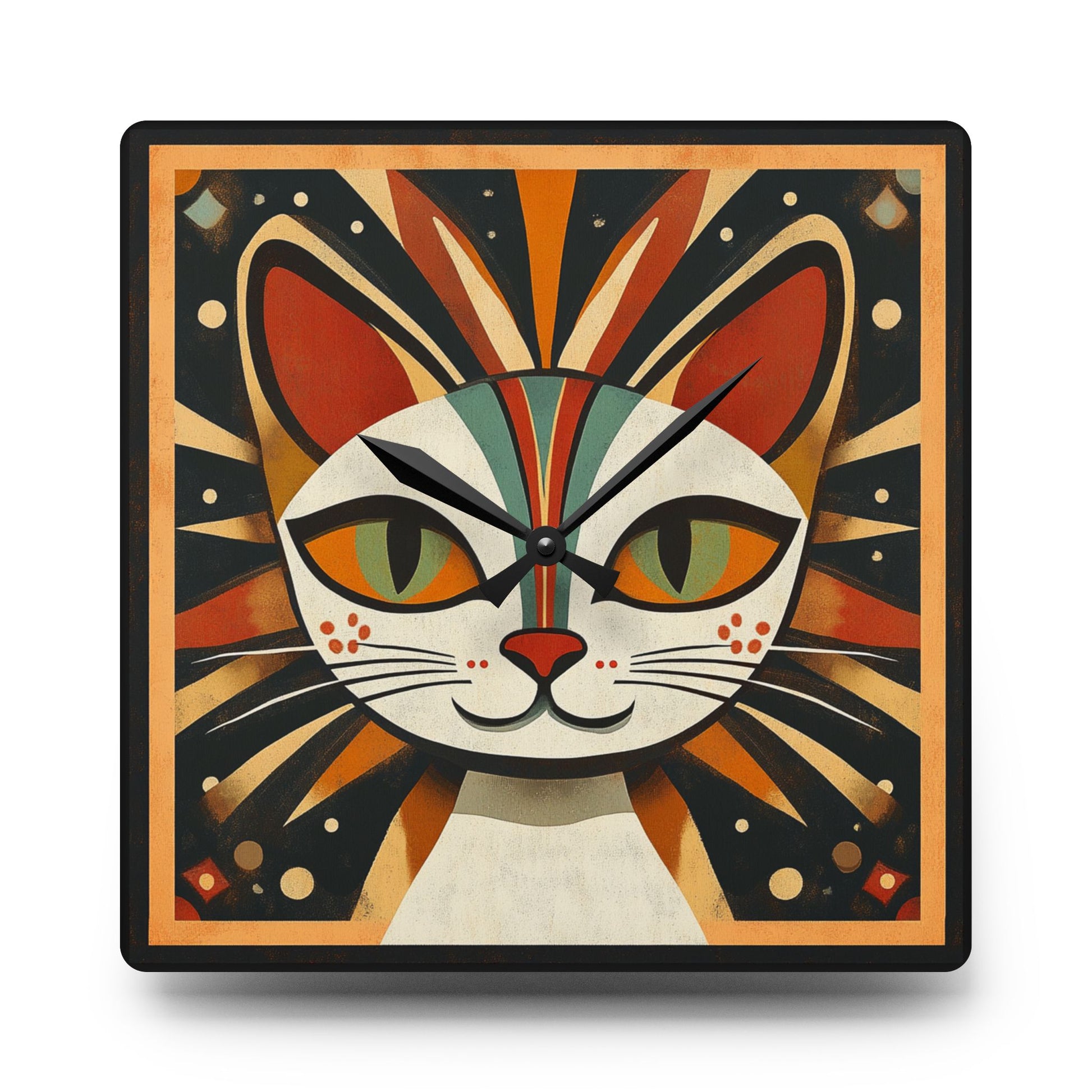 Mid Century Cat Acrylic Wall Clock, Modern Home Decor, Cat Lover Gift, Unique Wall Art, Whimsical Home Accent