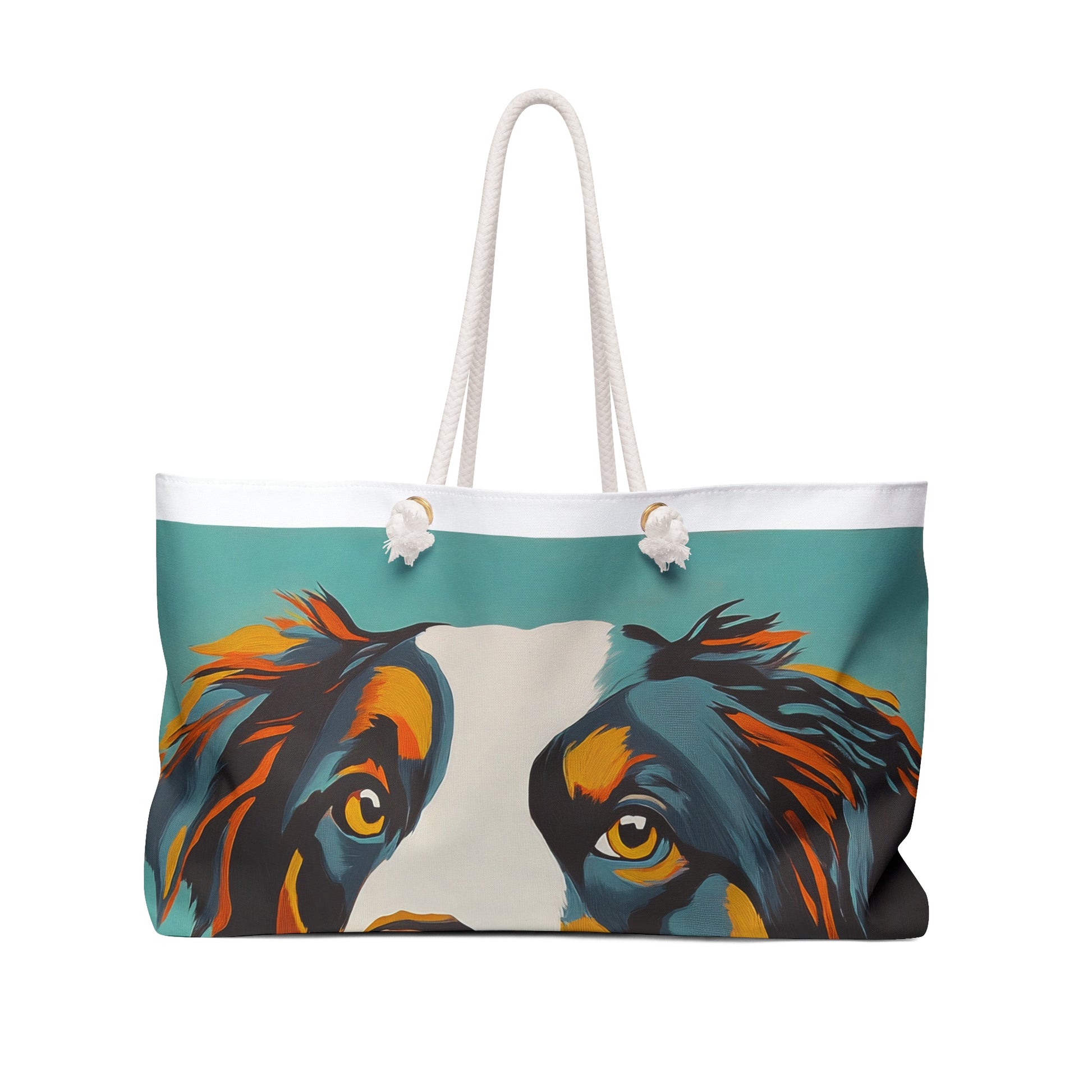 Mid Century Modern Black Tri Australian Shepherd Weekender Bag | Pet Lover Travel Tote, Perfect for Weekend Getaways