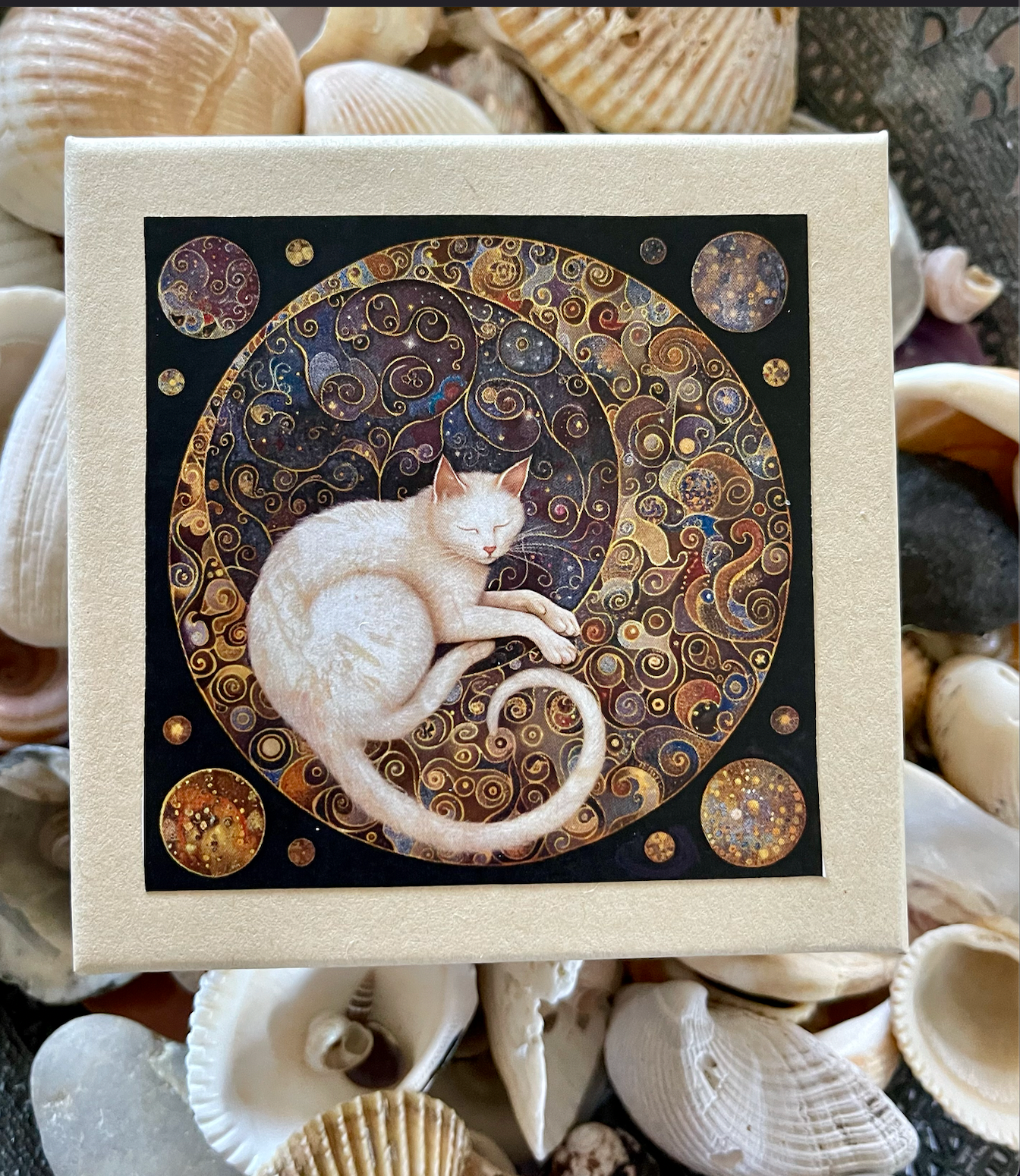 Mystical Cat Gift Box with Silver Cat Paw Charm and Crystal, Bodhi Jewelry