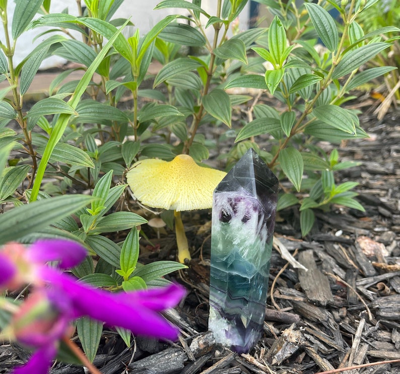 Natural Heart Shape Rainbow Fluorite Tower, High Quality, Crystal Magic