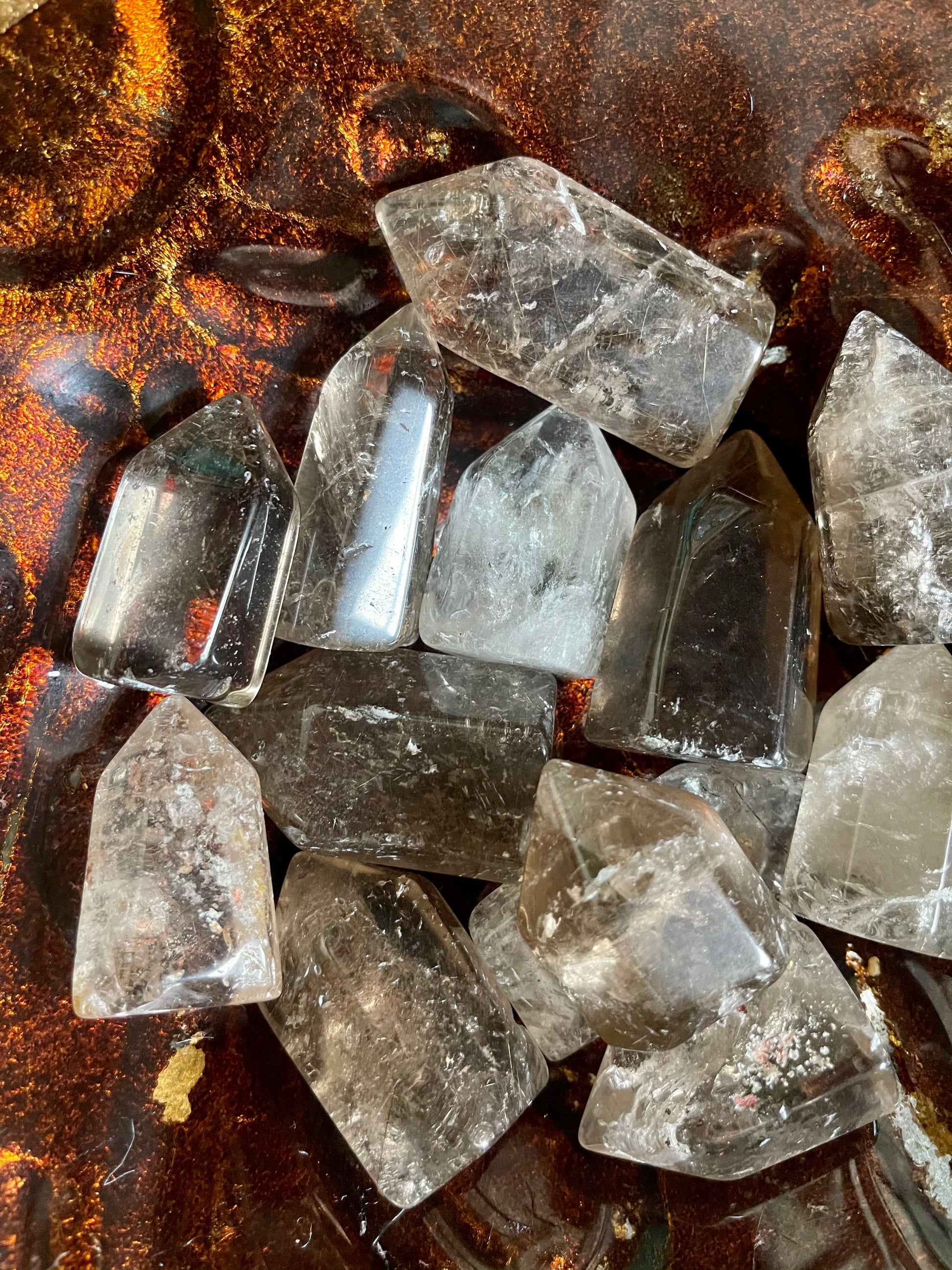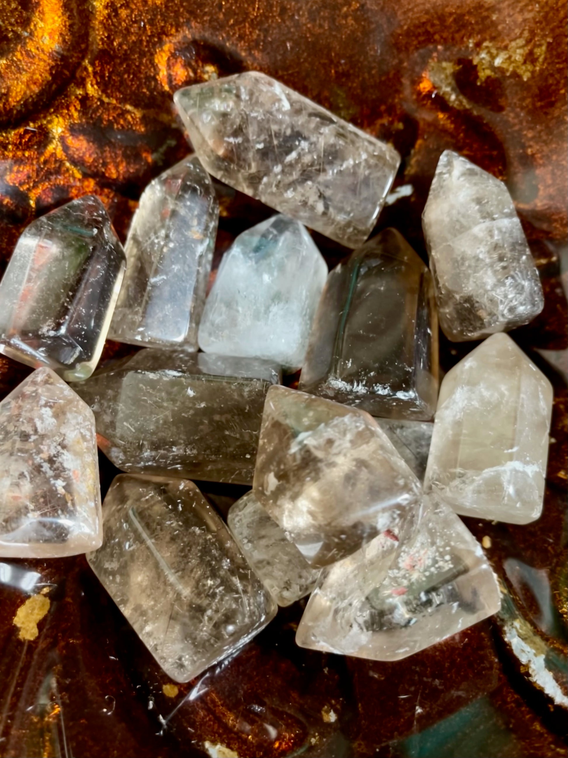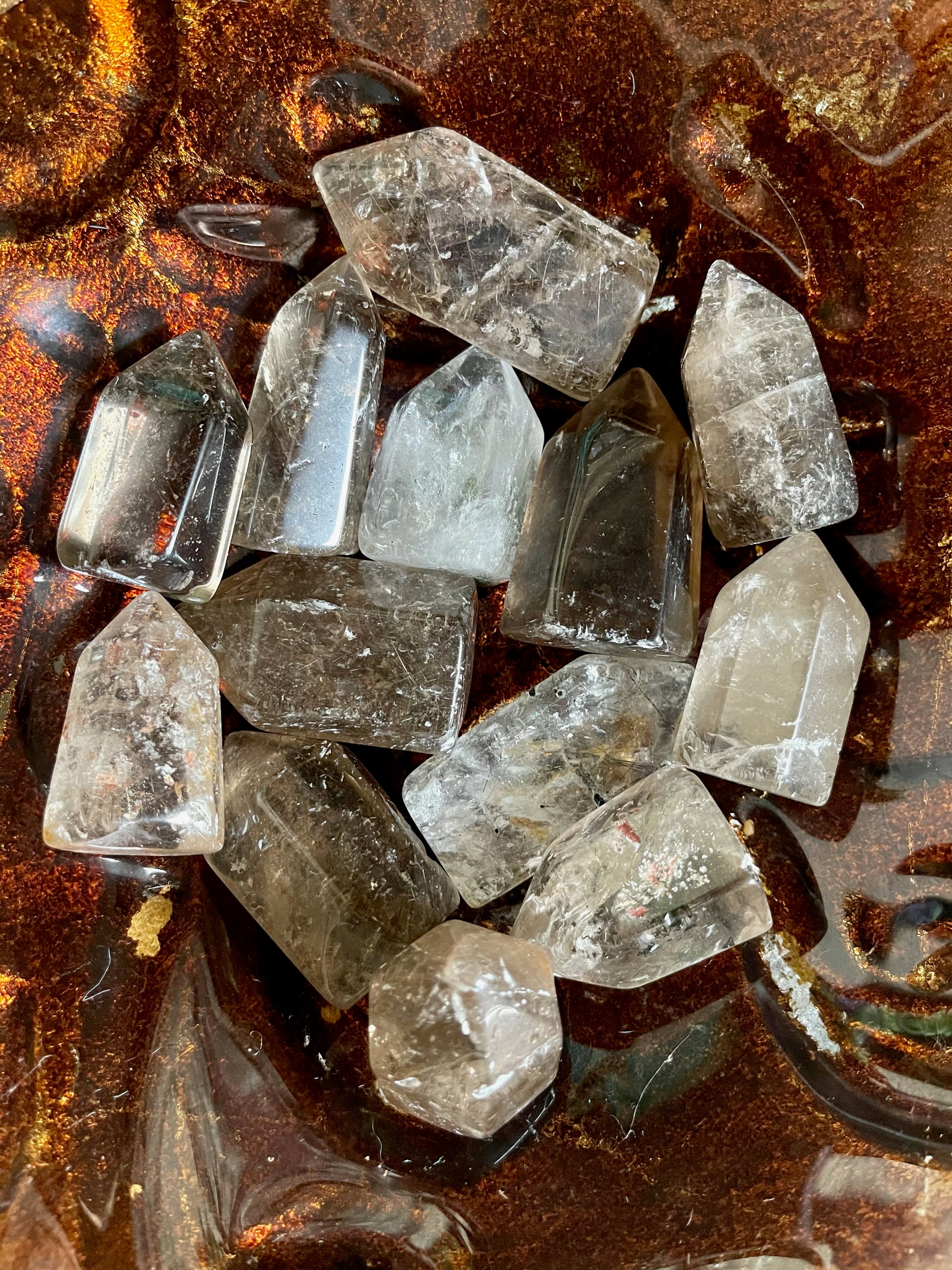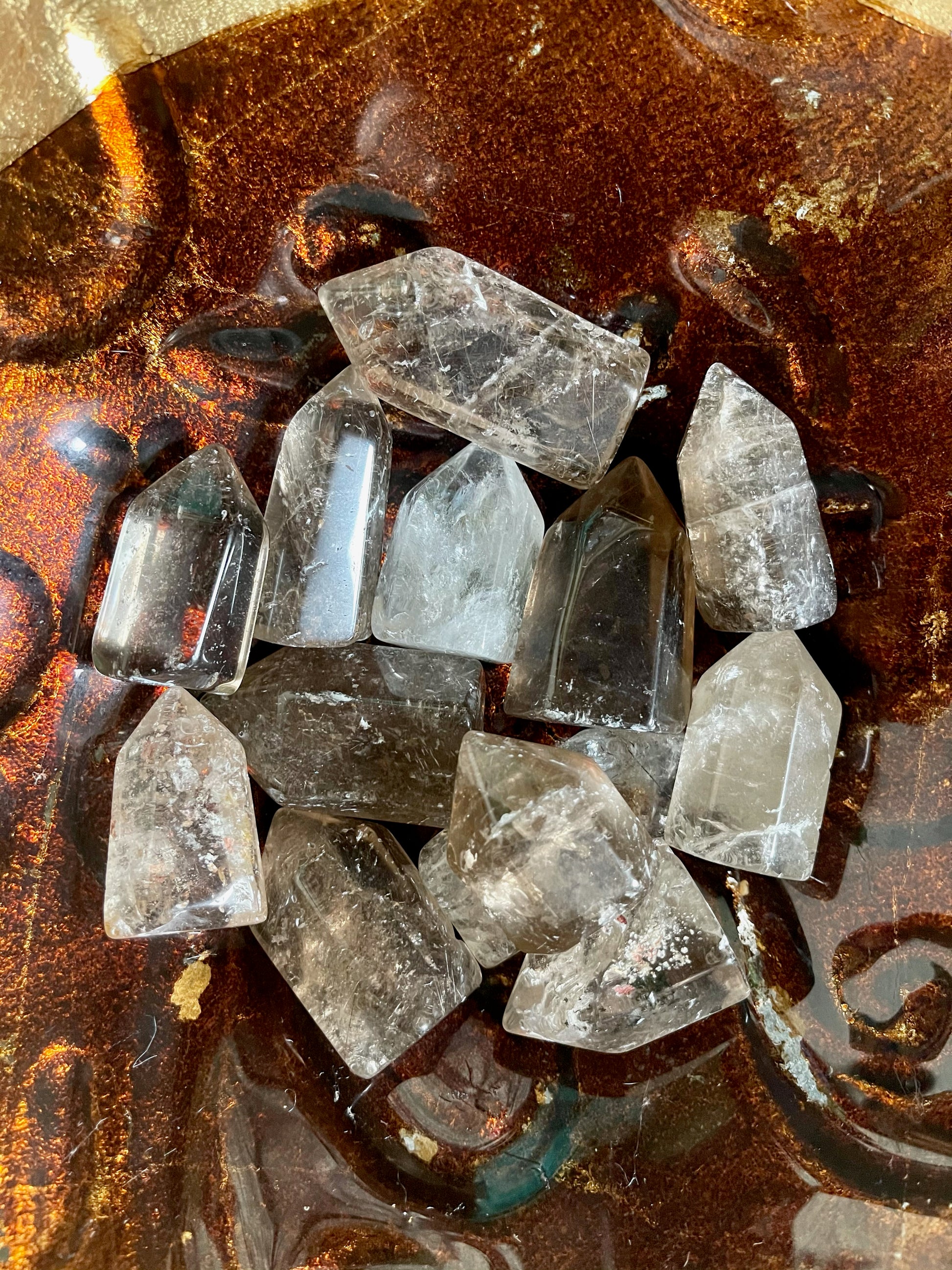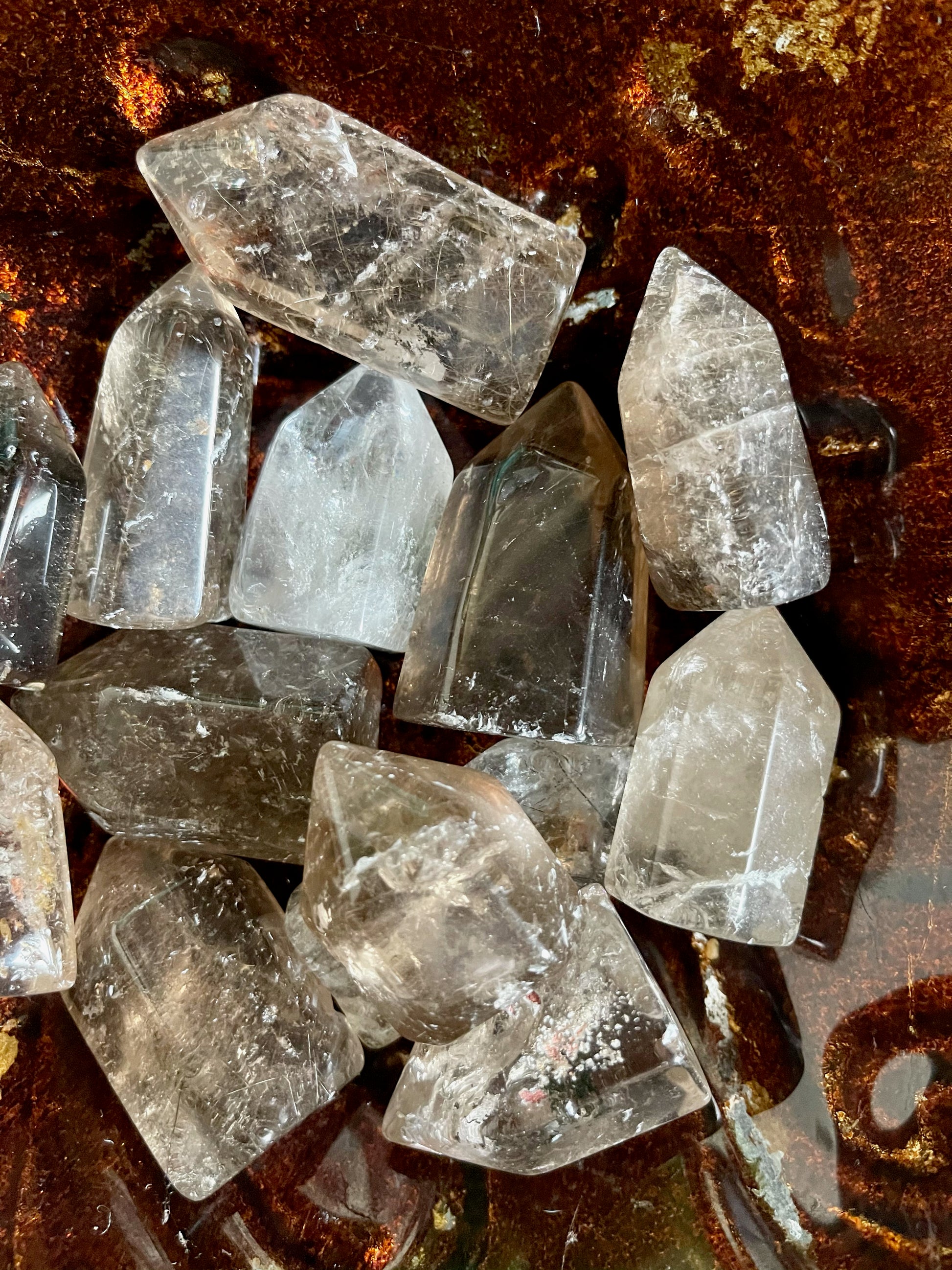 These magical mini smoky quartz towers vary with rainbow inclusions, lodi and some with rutile. They measures approx 2".