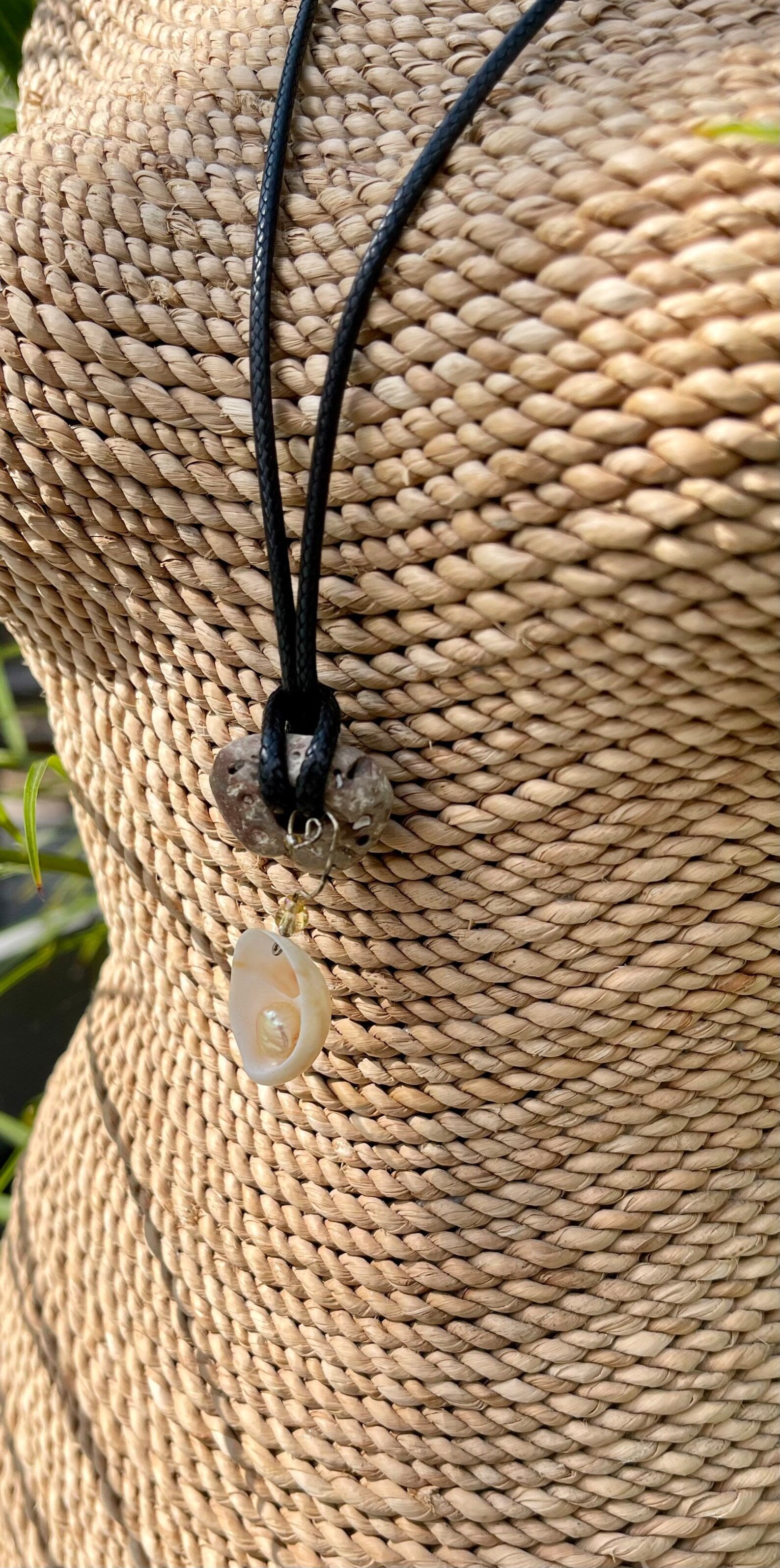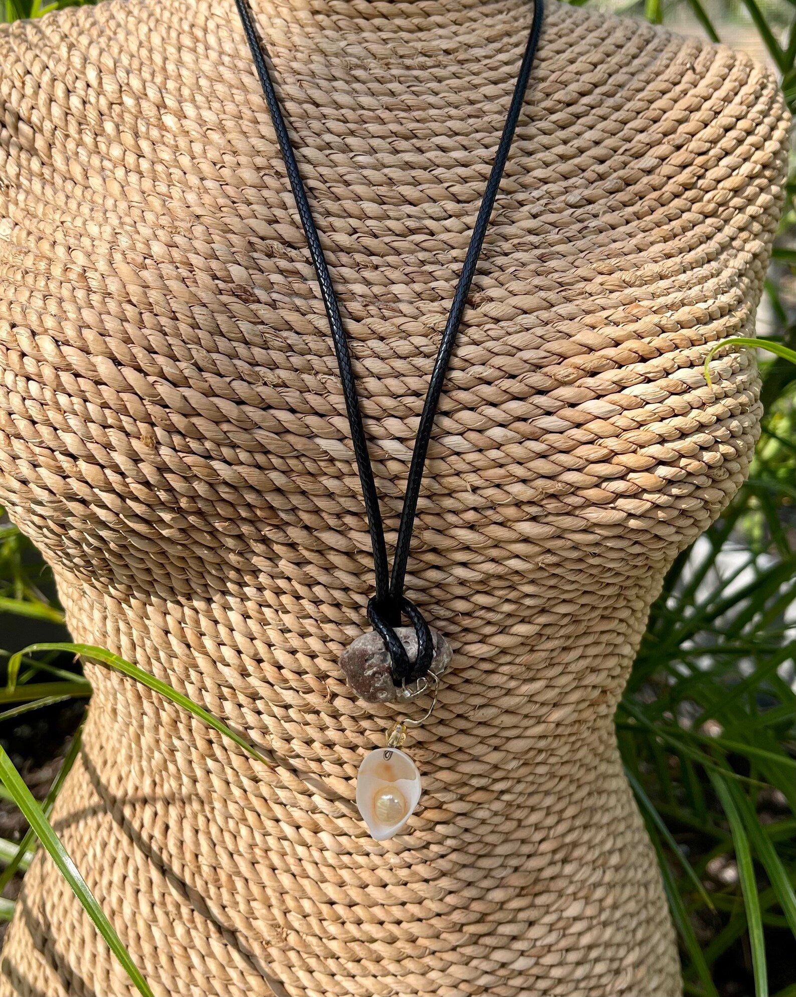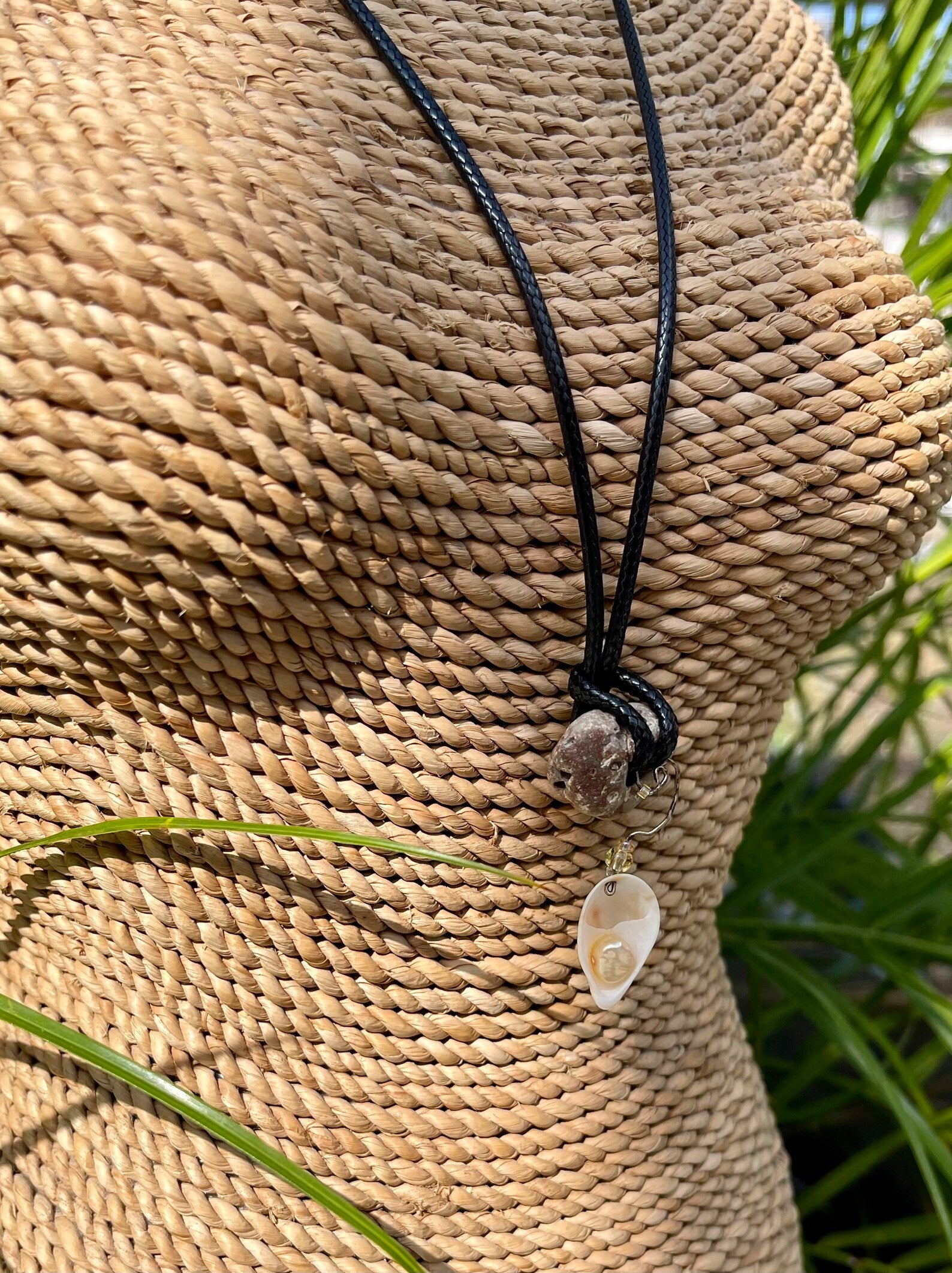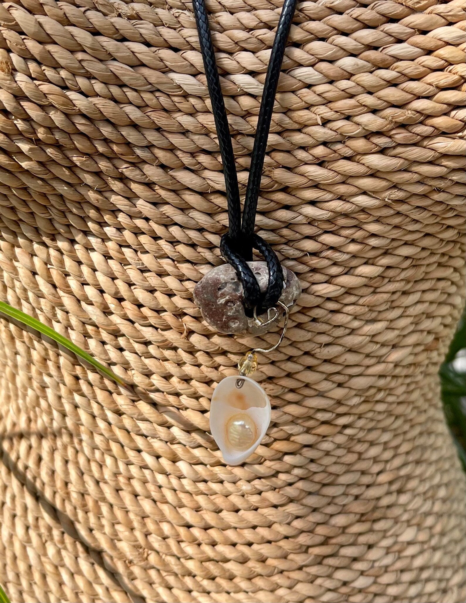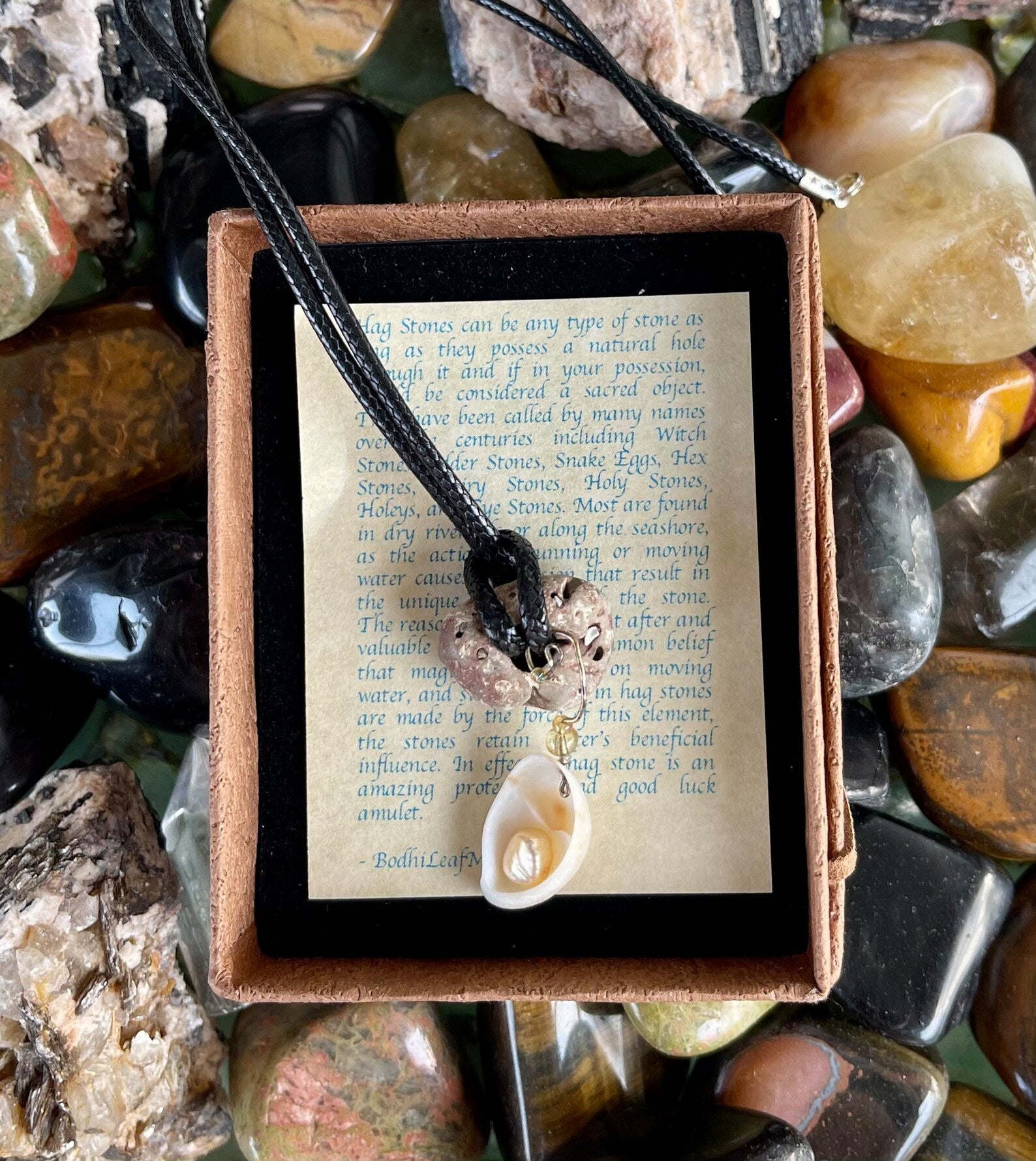 This stone measures approx 1/2" across and the necklace measures approx 16" with a 2 inch chain extender. You will receive the exact stone and seashell charm in this picture. This will be gift boxed with a brief description of the magical properties of the hagstone.