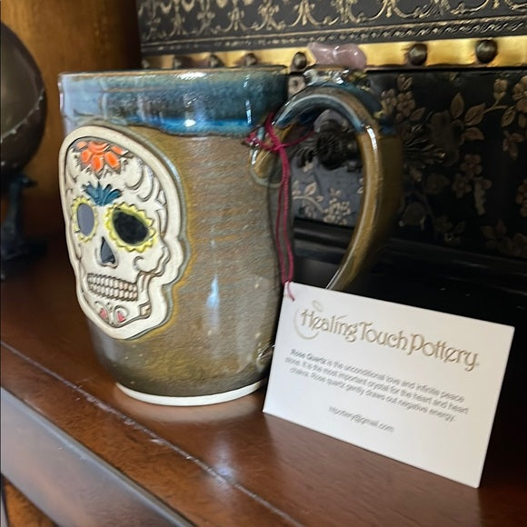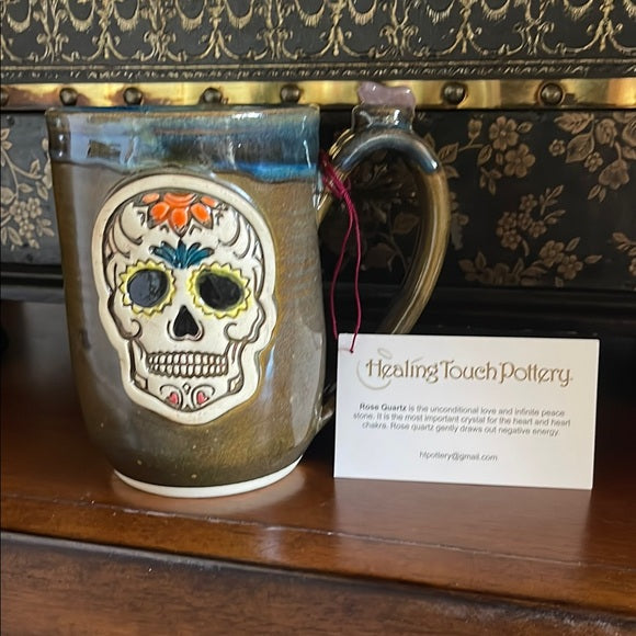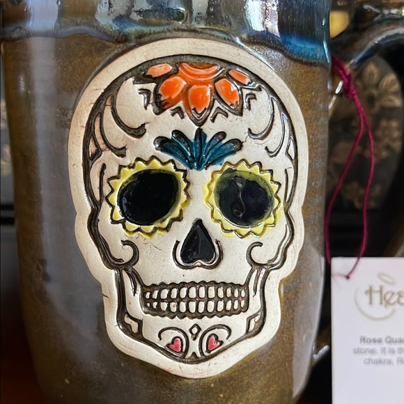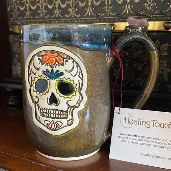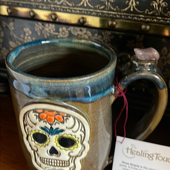 NWT Sugar Skull Mug with Genuine Rose Quartz Crystal, Bodhi Crystal Magic