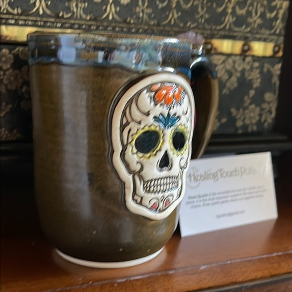 Infused with meaning, our sugar skull mugs celebrate transformation, creativity, and the vibrance of life. Each one is individually handmade and crowned with a unique metaphysical crystal on the handle — from calming amethyst to grounding obsidian — chosen to amplify energy and intention with every sip.