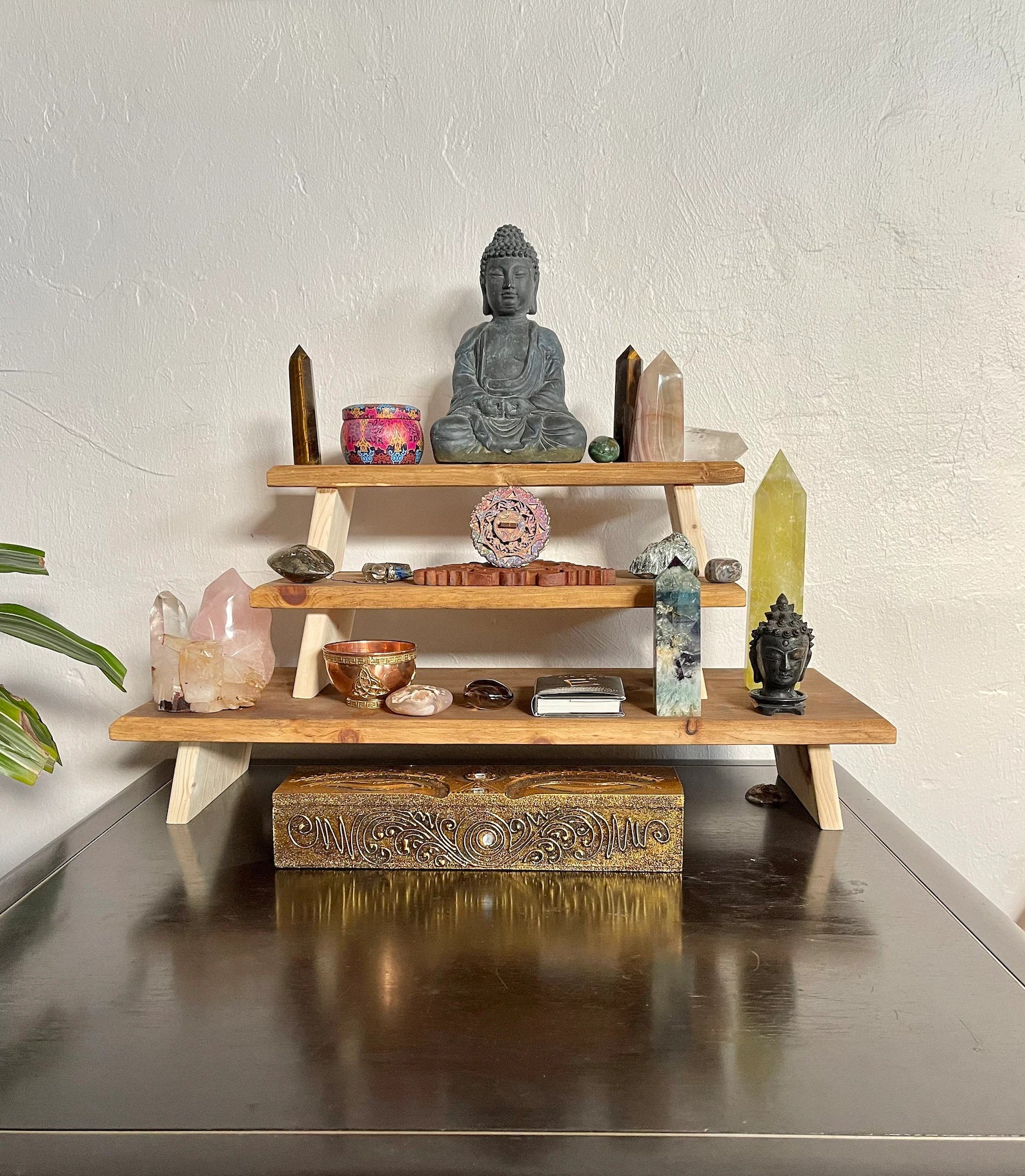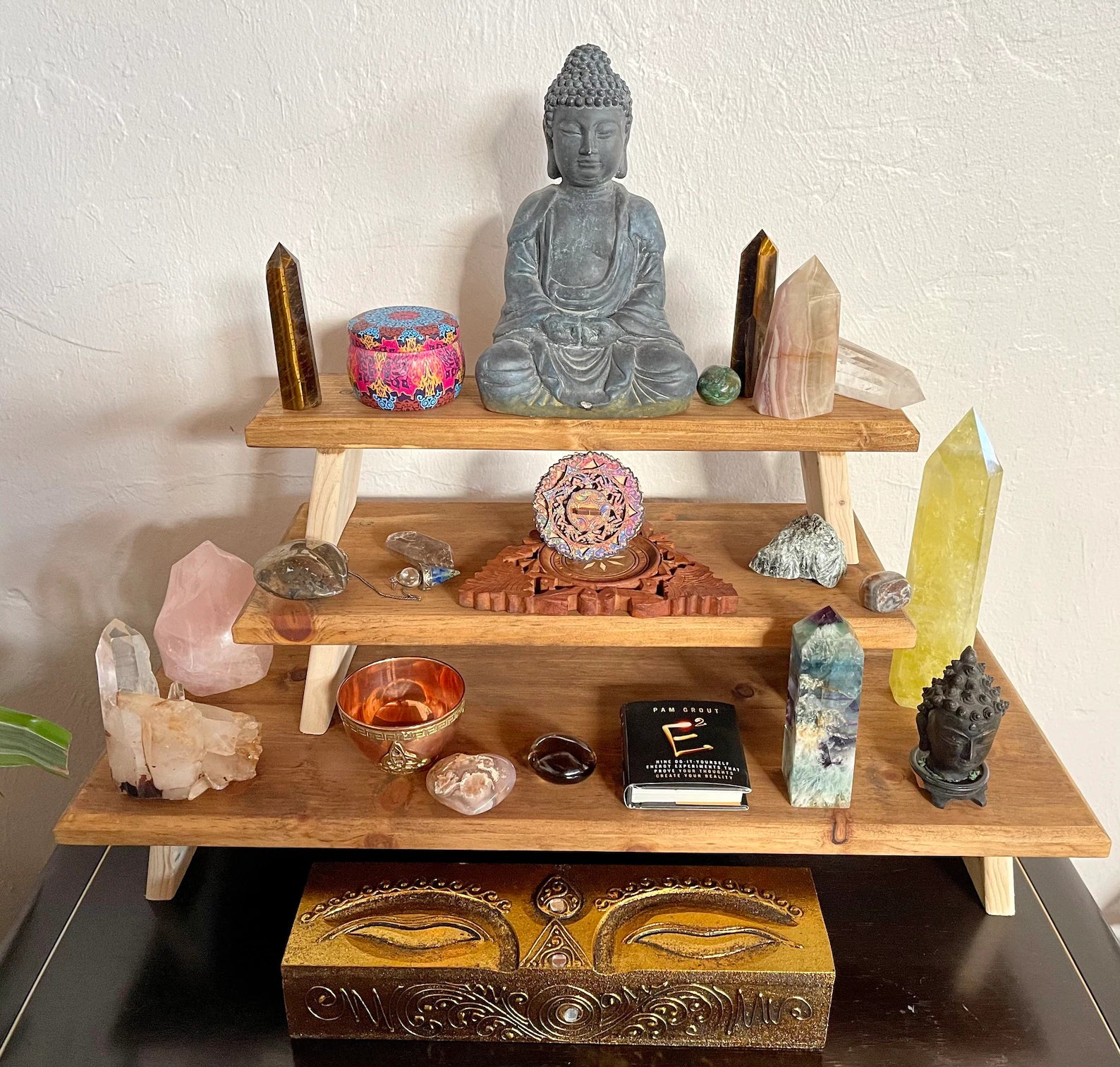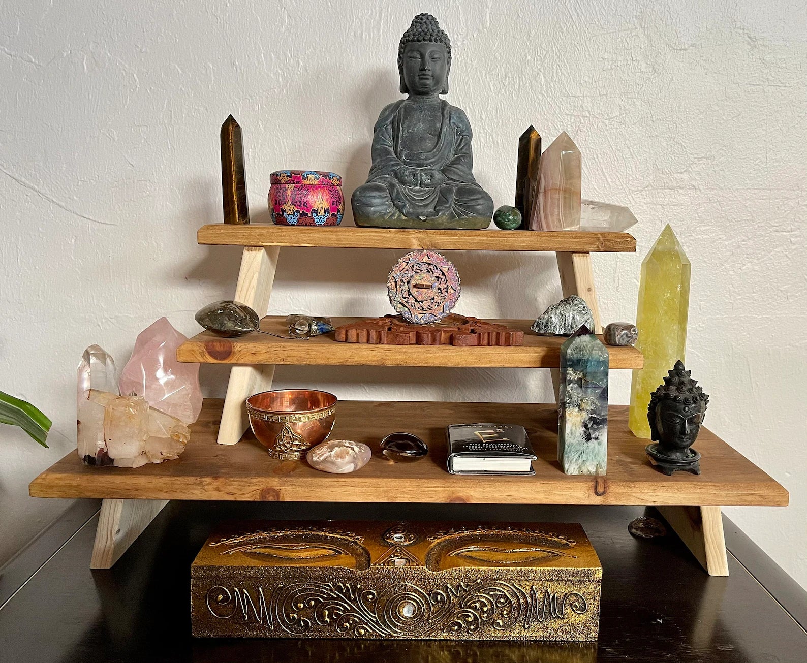 One of a Kind Knotted Boards, Hand Crafted Three Tier Meditation Table Set, Bodhi Home Decor