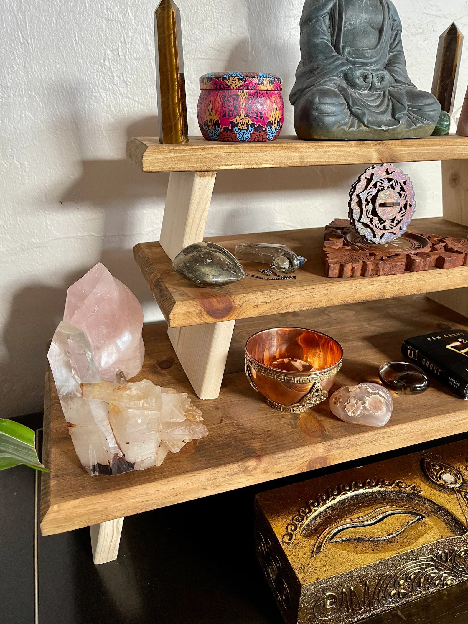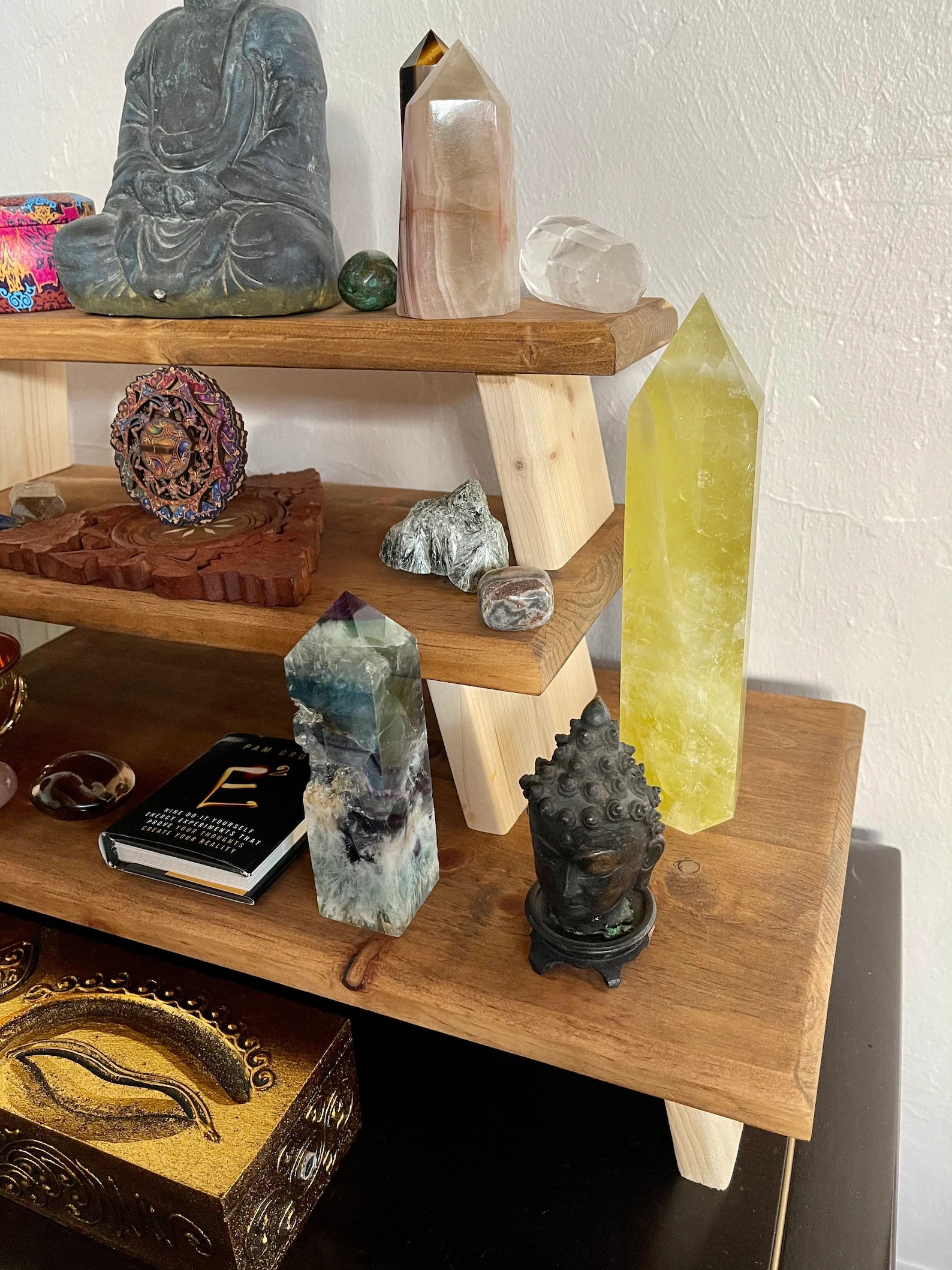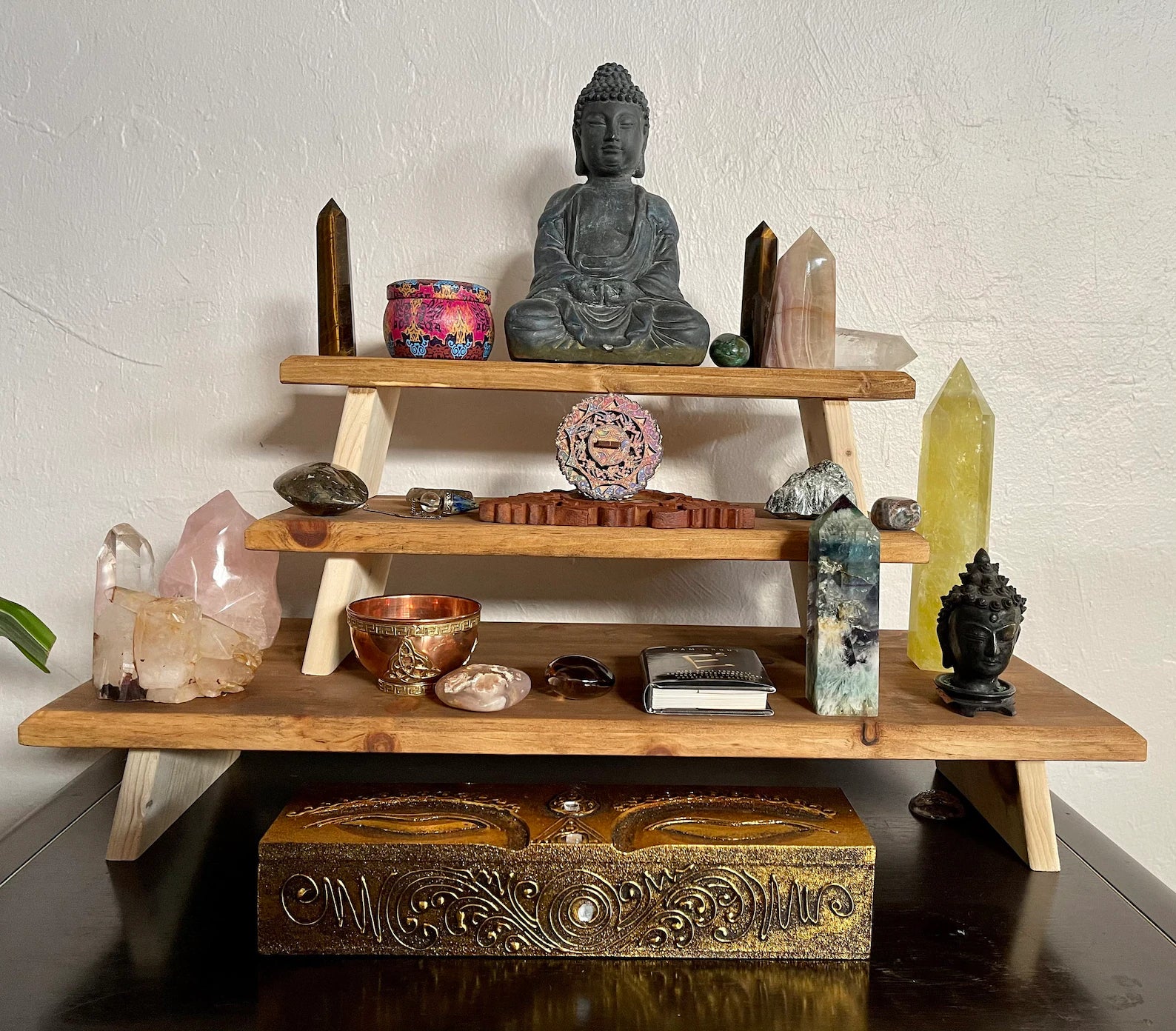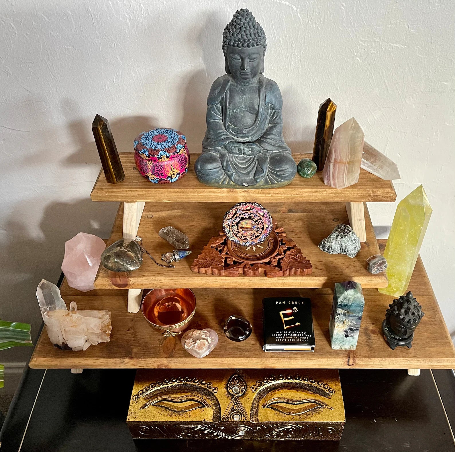 One of a Kind Knotted Boards, Hand Crafted Three Tier Meditation Table Set, Bodhi Home Decor