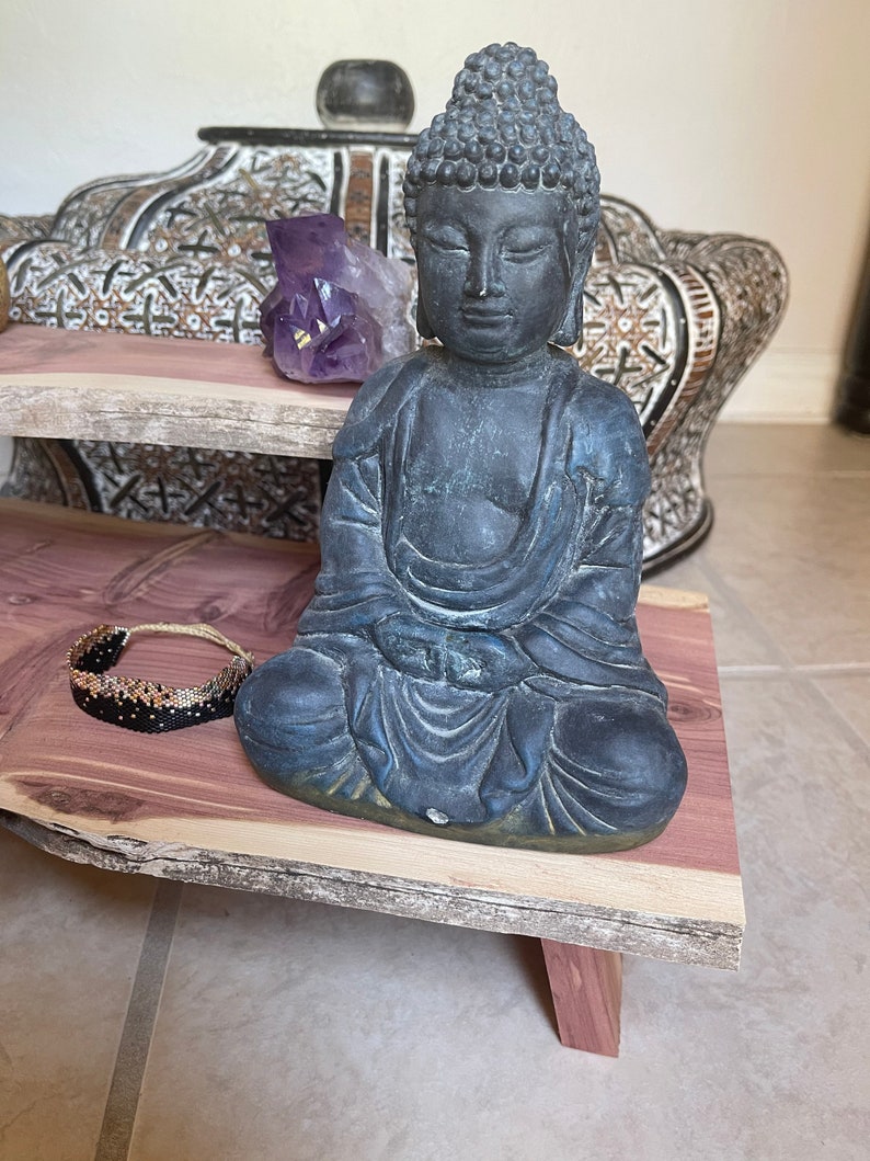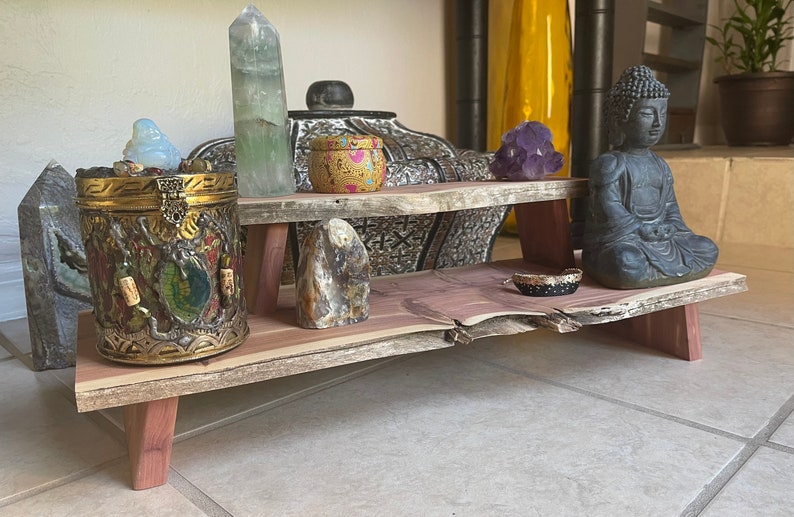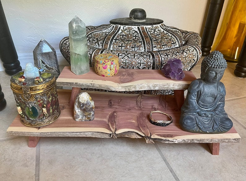 I recently acquired some rare vintage aromatic red cedar at an estate sale. I made a round meditation set for a customer and had enough left over to make this gorgeous one of a kind stacking meditation table.