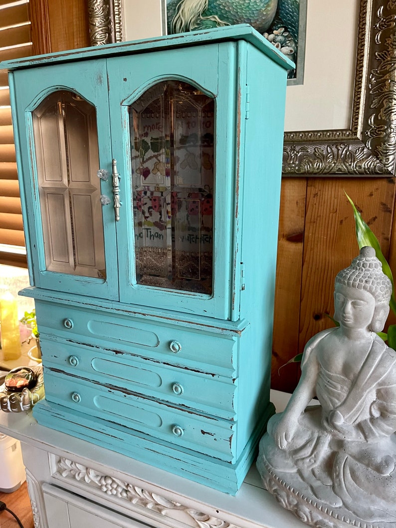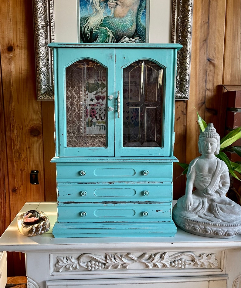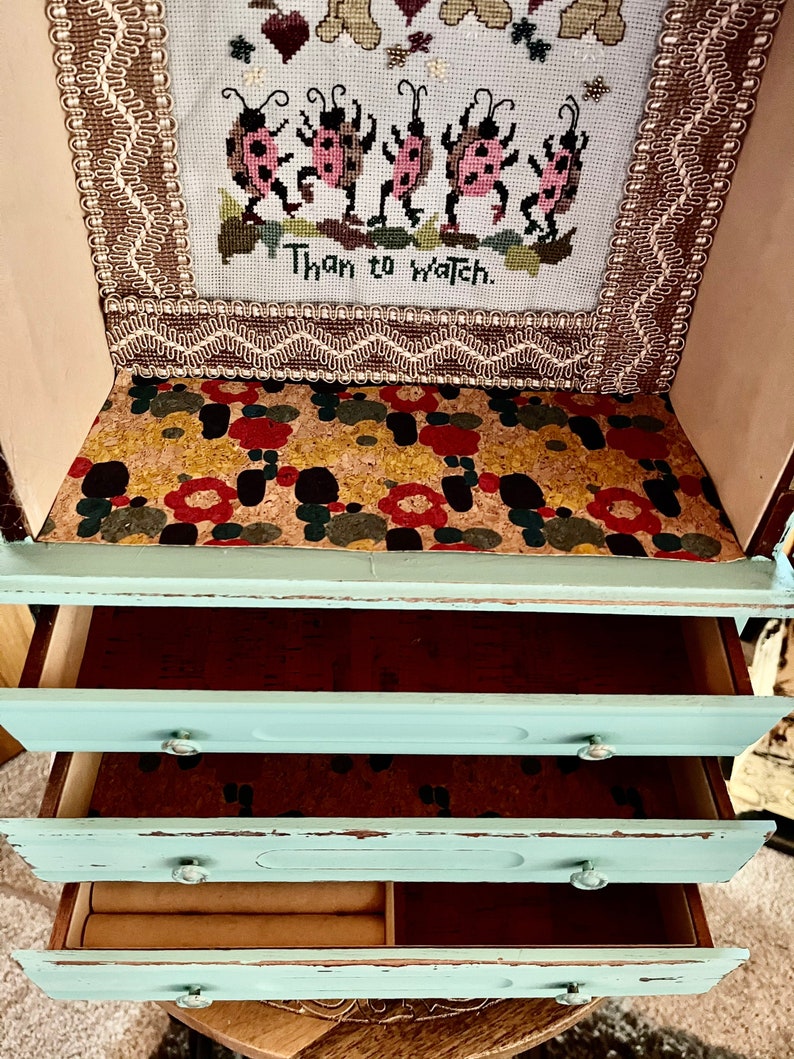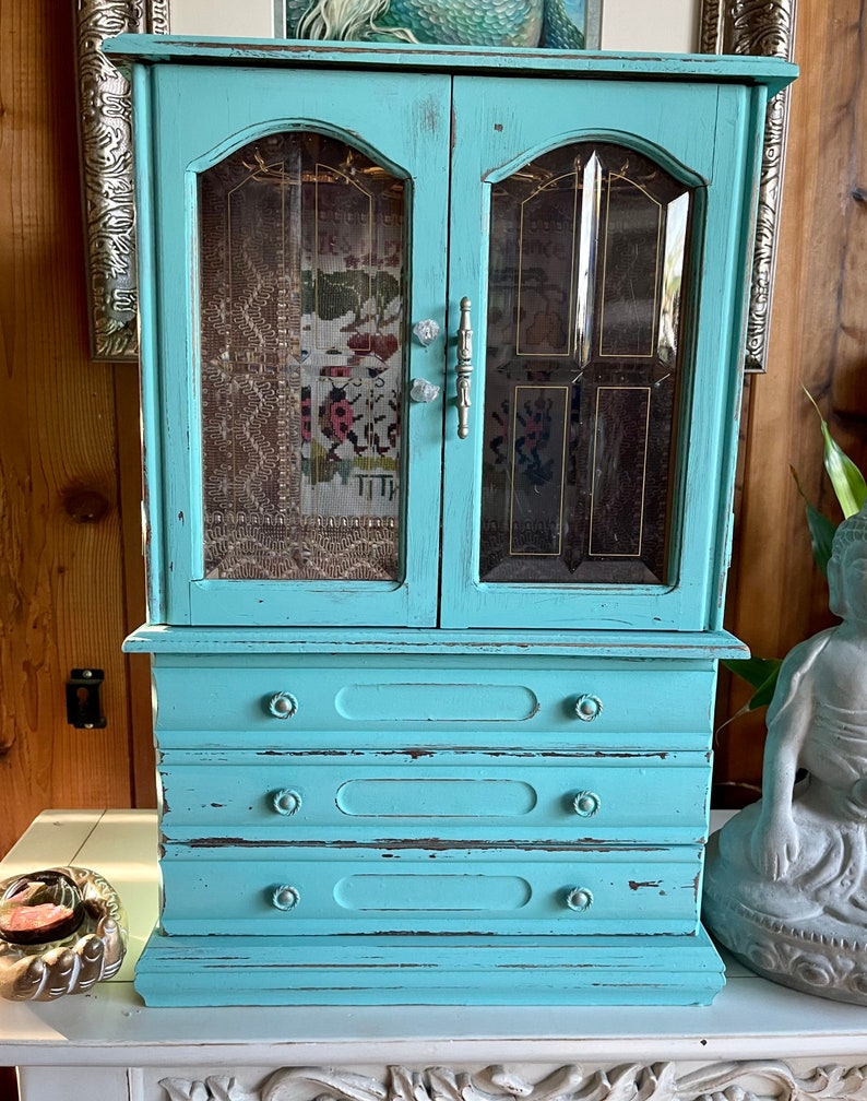 One of a Kind Vintage Cross Stitch Tall Jewelry Cabinet, Lovecycled Vintage