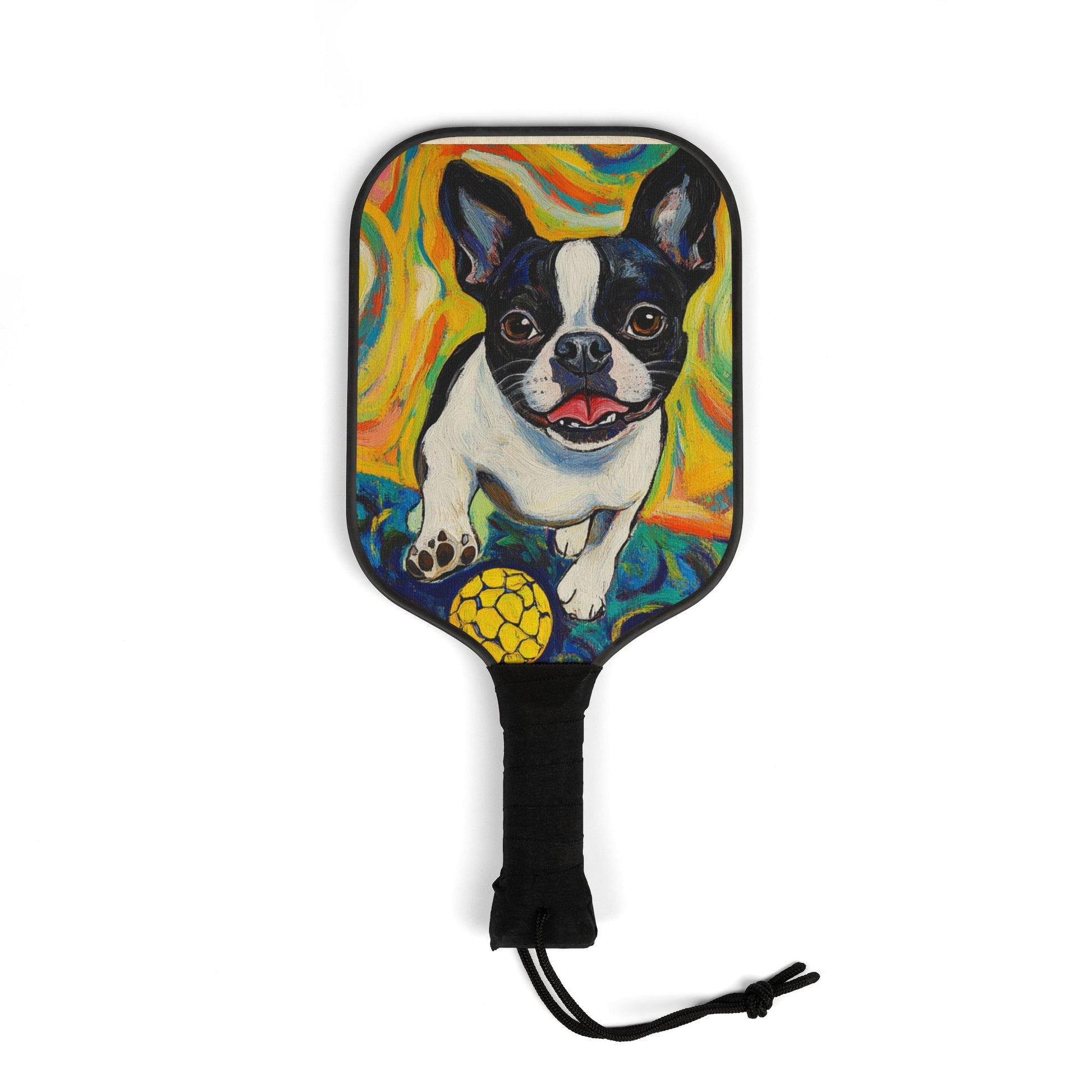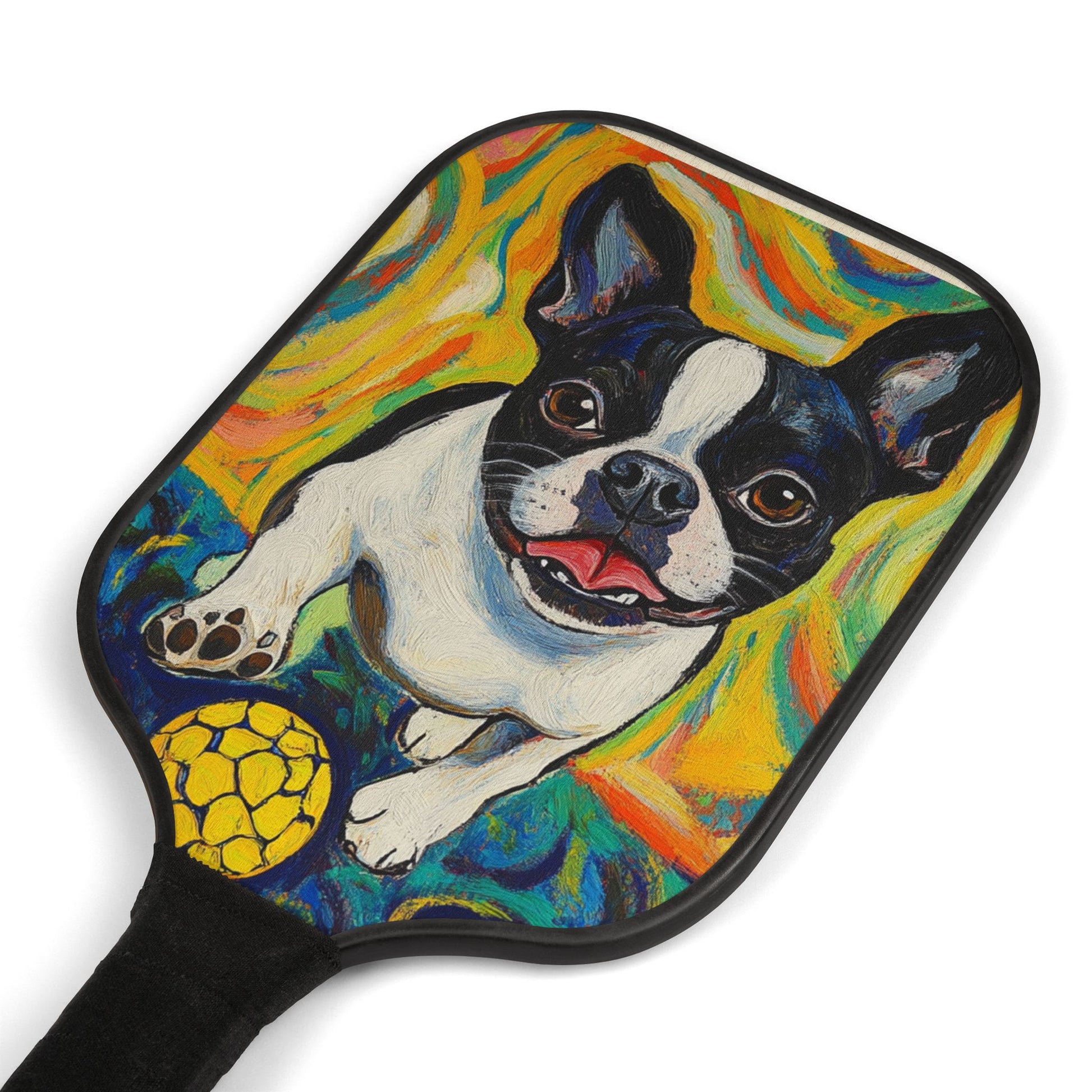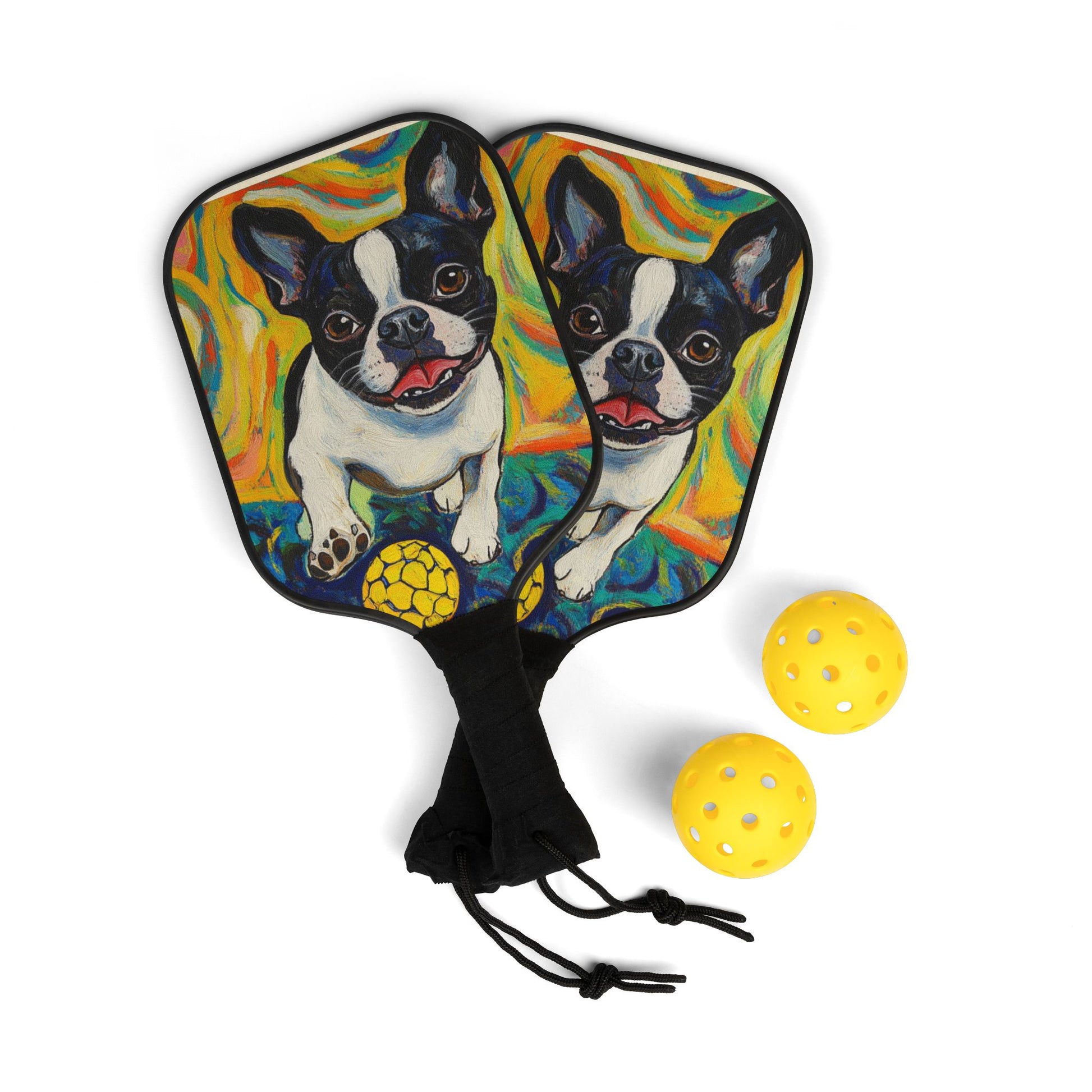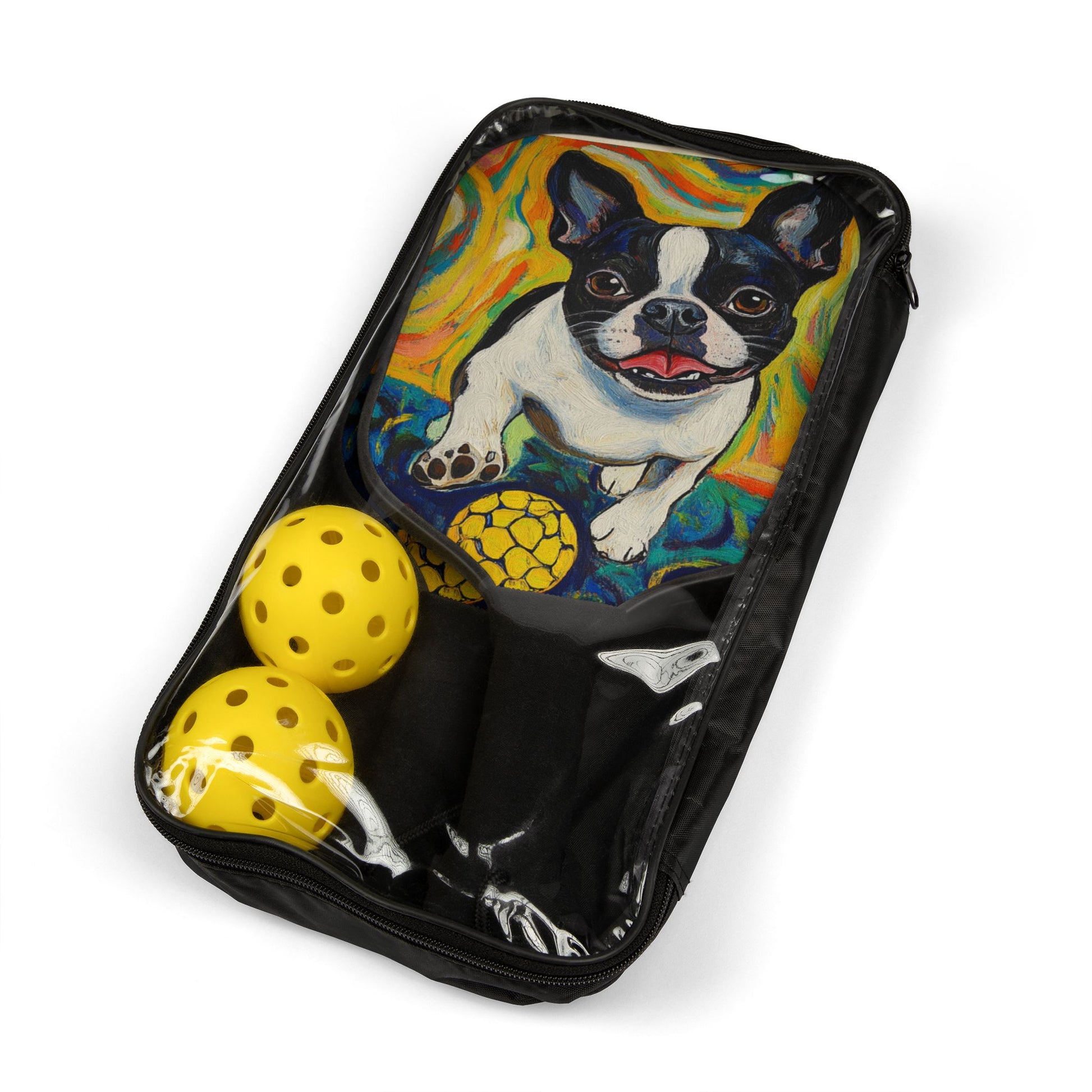 Pickleball Paddle Set with Boston Terrier, Fun Pickleball Gear for Pet Lovers, Sports Gift, Outdoor Fun, Unique Pickleball Accessories