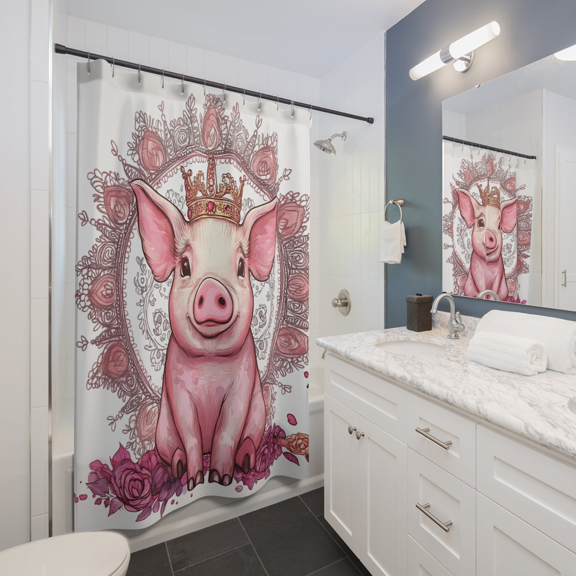Princess Pig Shower Curtain, Cute Farmhouse Decor, Bathroom Accessories, Animal Lover Gift, Queen Pig Design