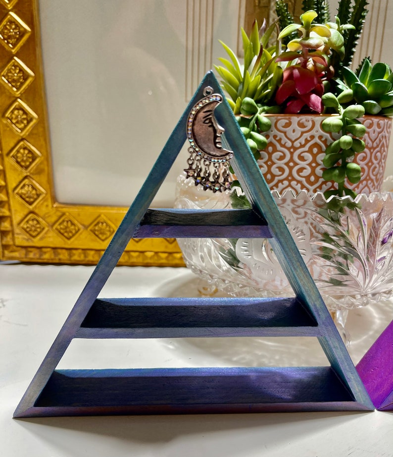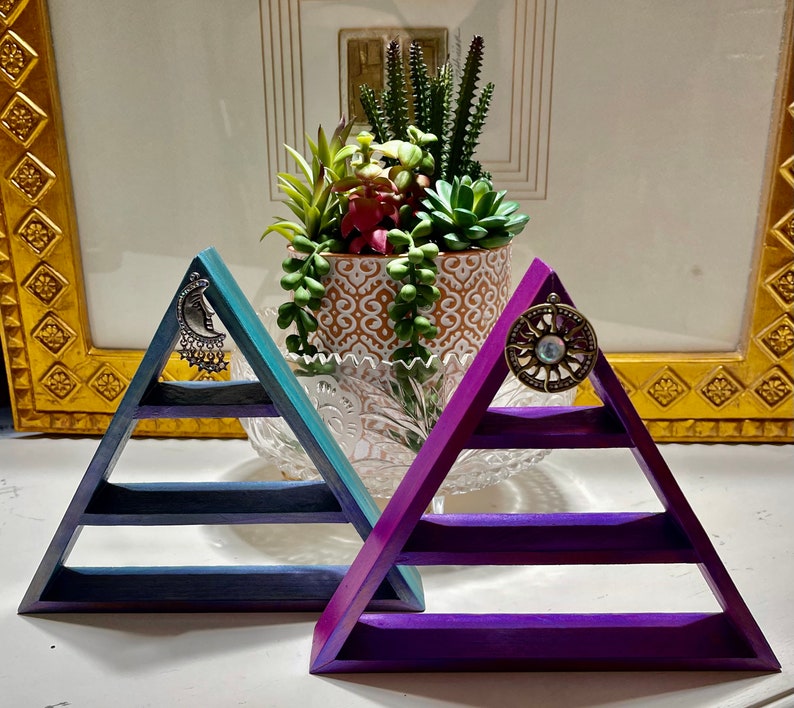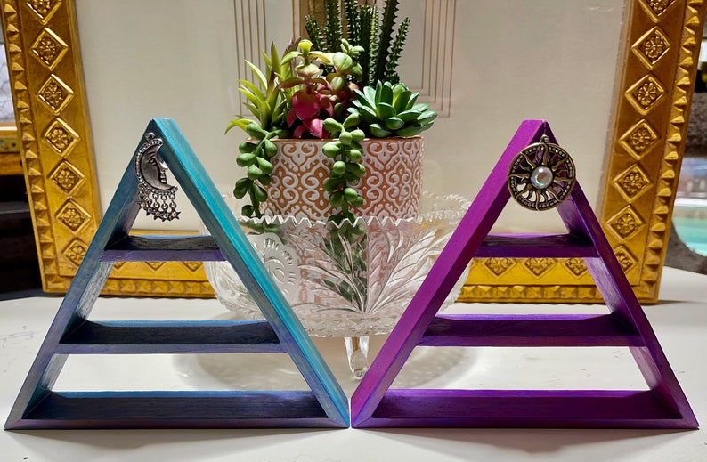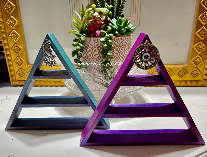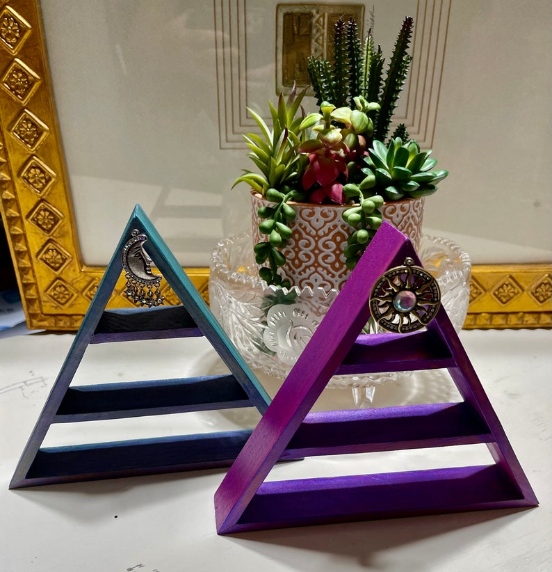 These shelves are individually handcrafted and take many hours to make. There are many shelves out there where they overlay the pieces... all of my shelves are cut precisely to come to a perfect point on top and have been done this way since 2014.