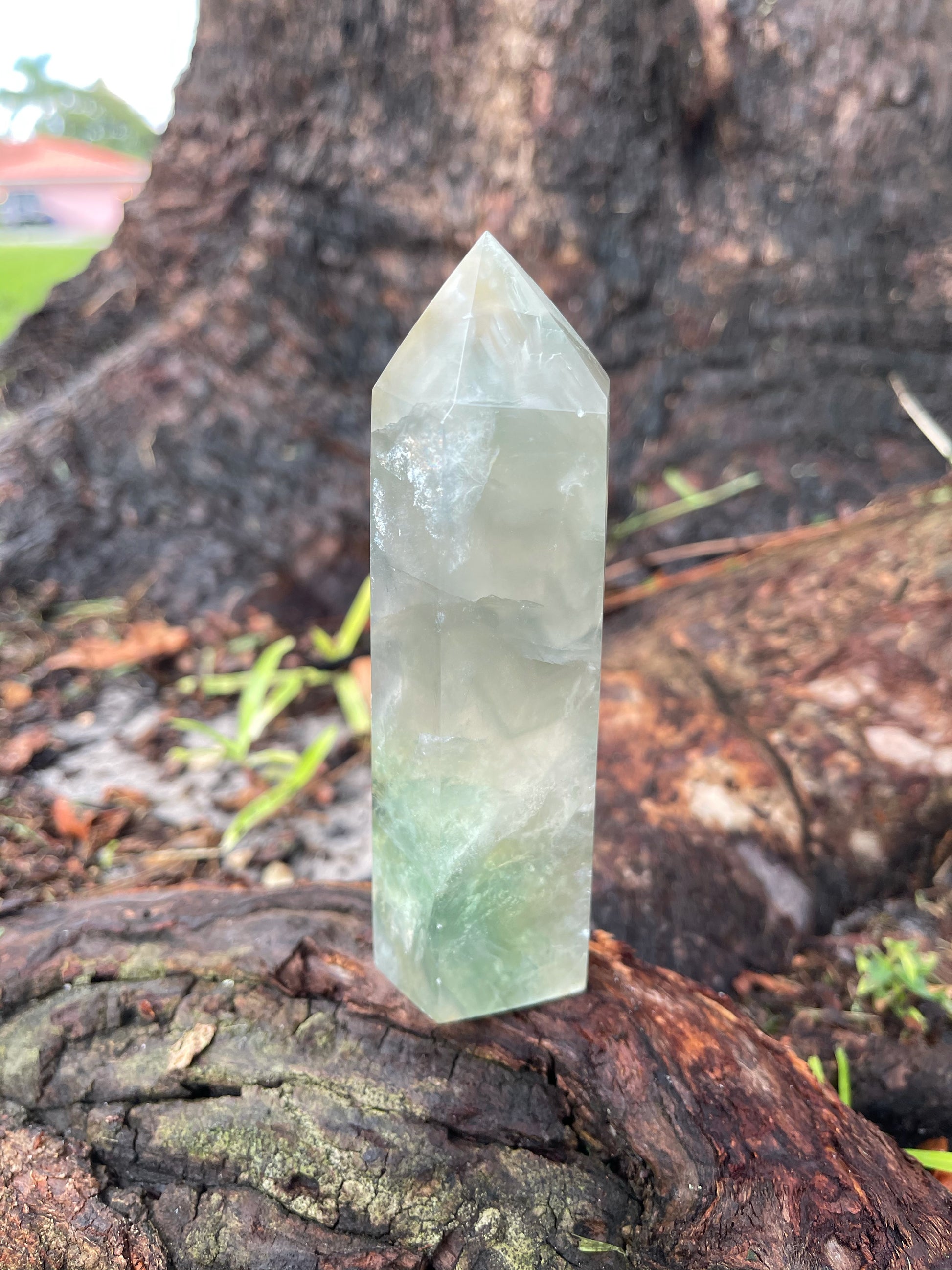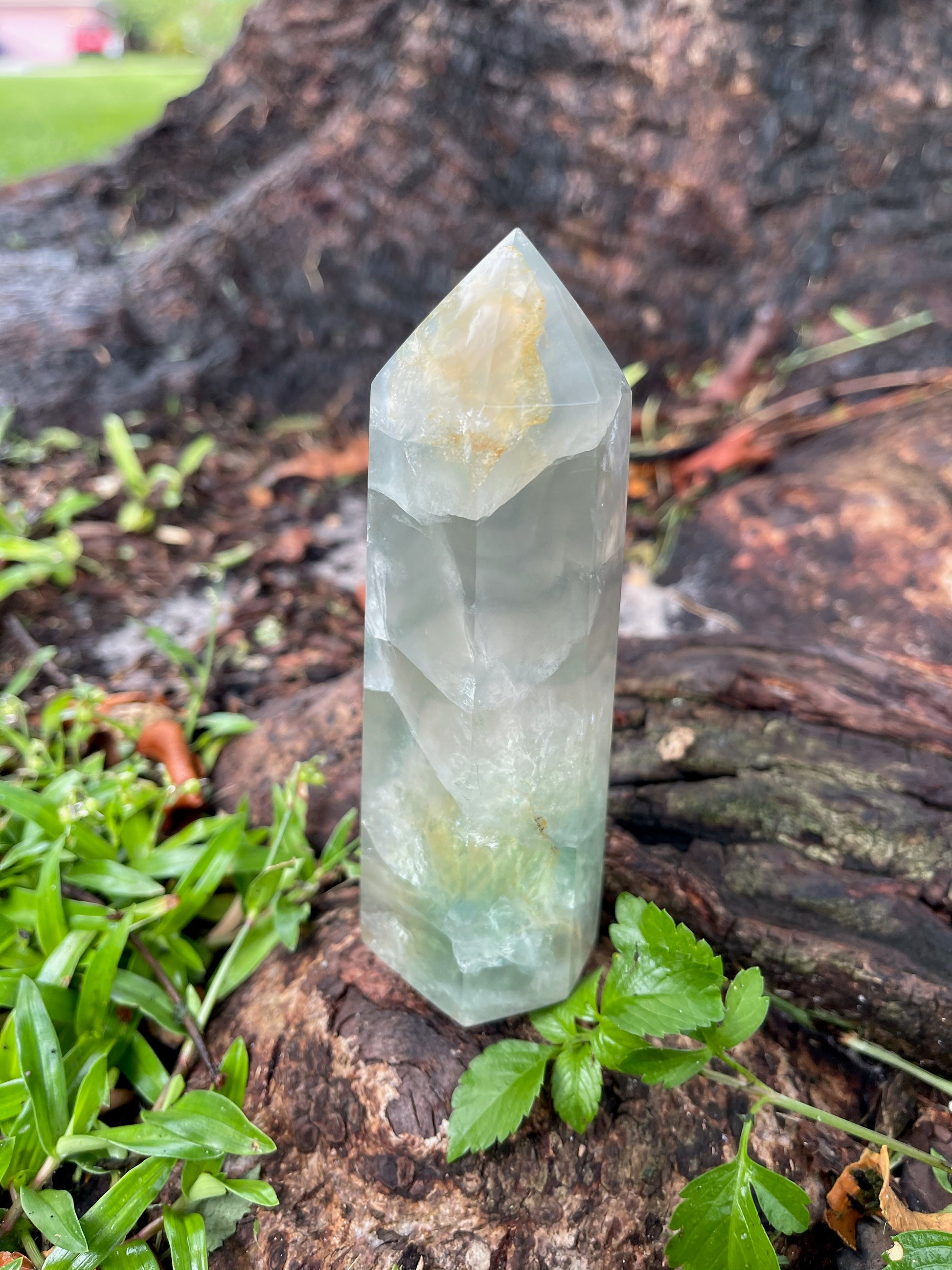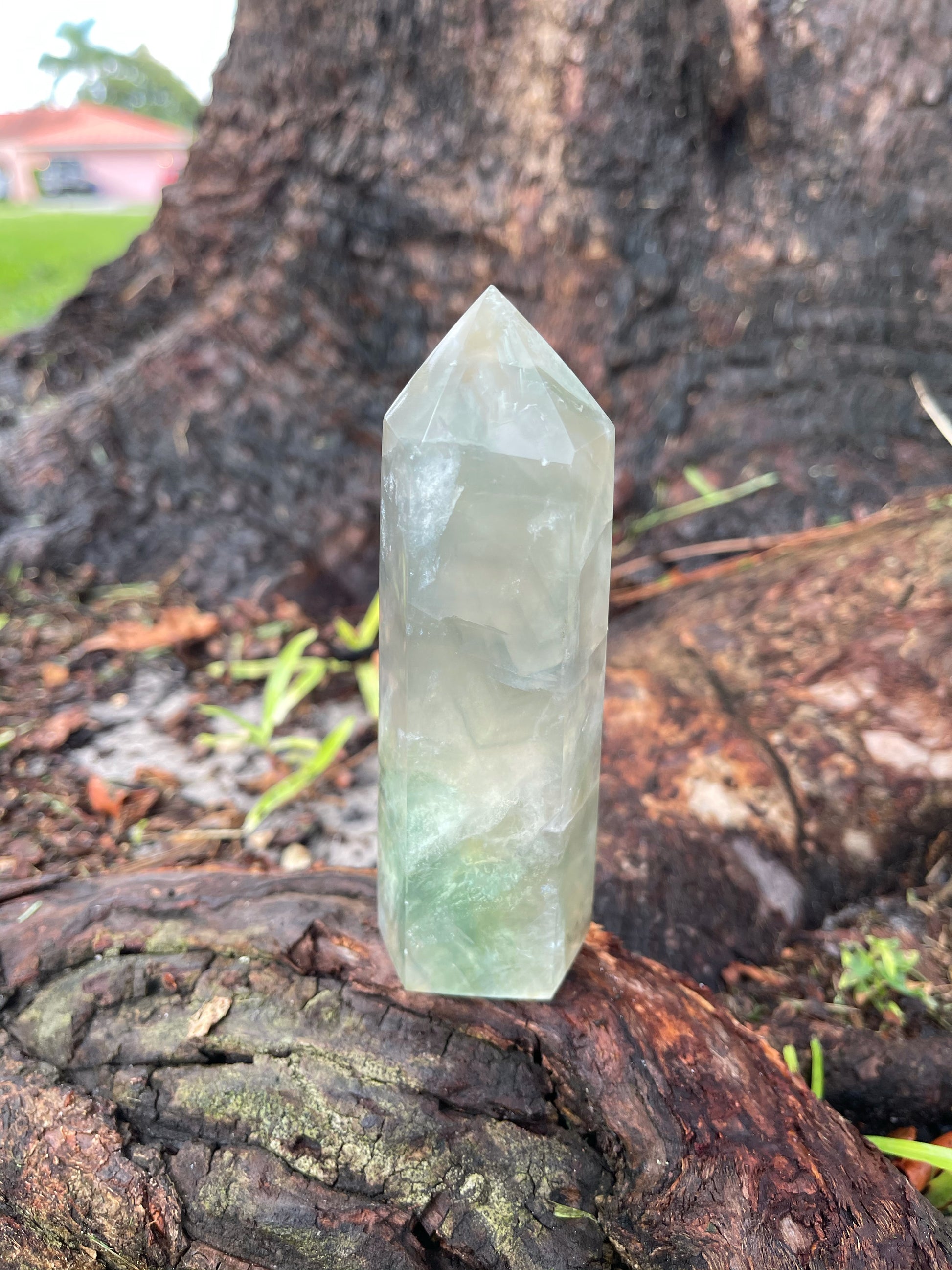 Soft Greens, Violet and Yellows Fluorite Tower, Crystal Magic