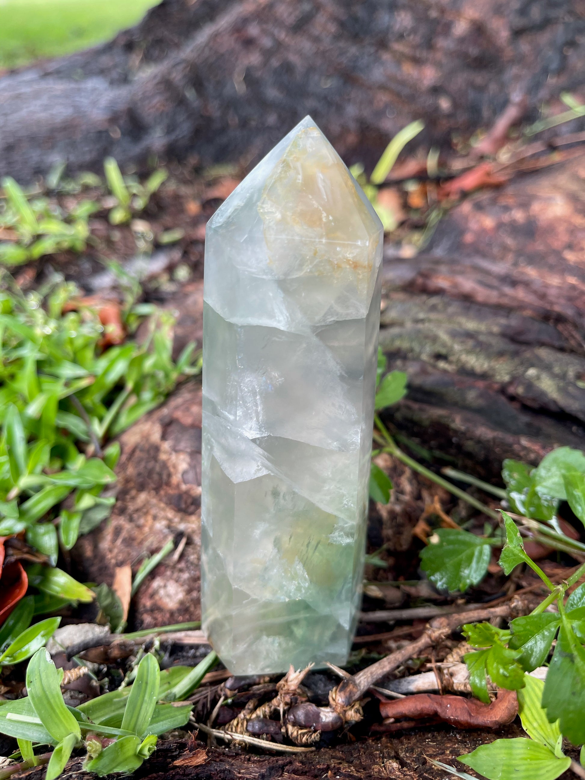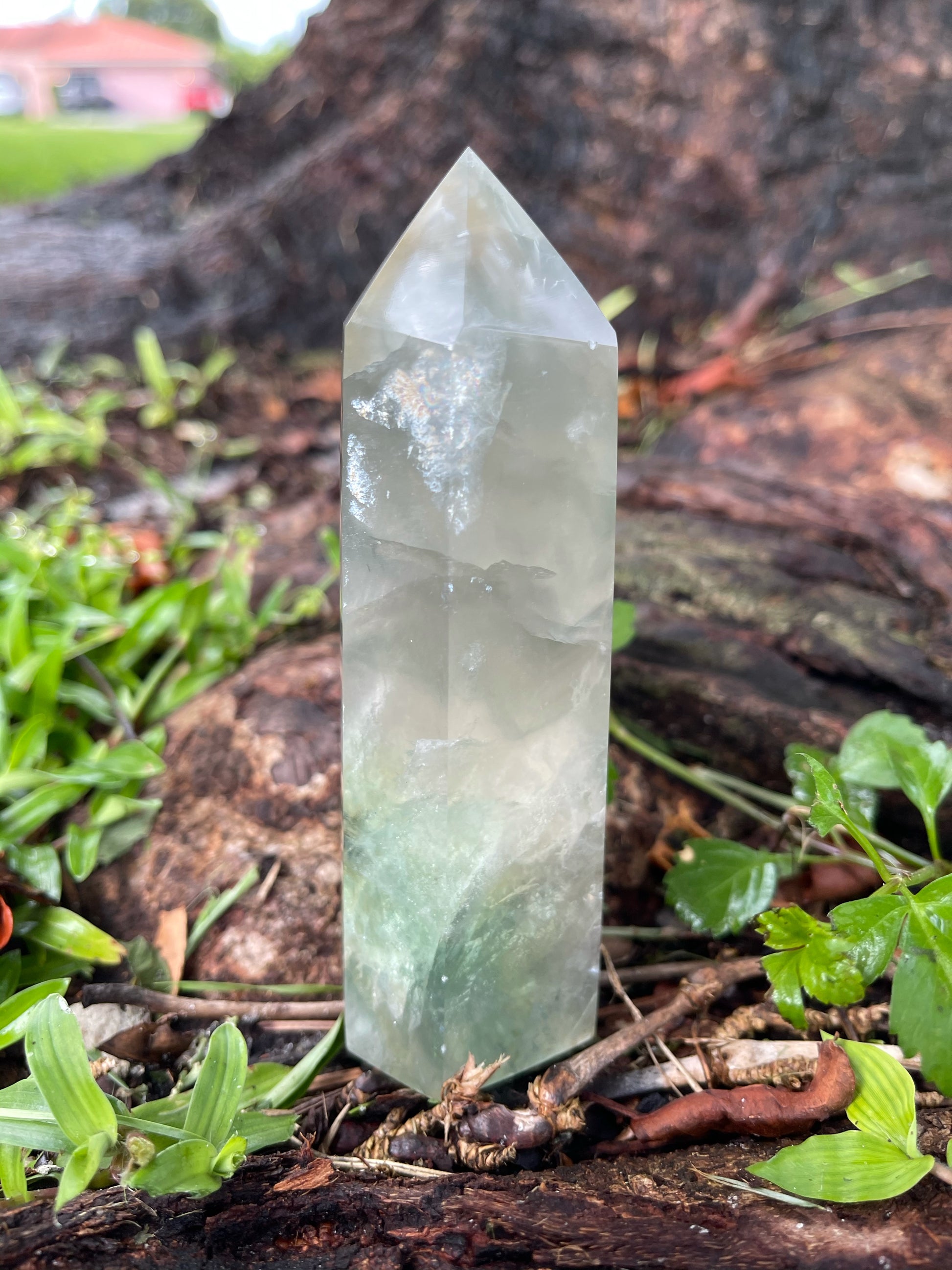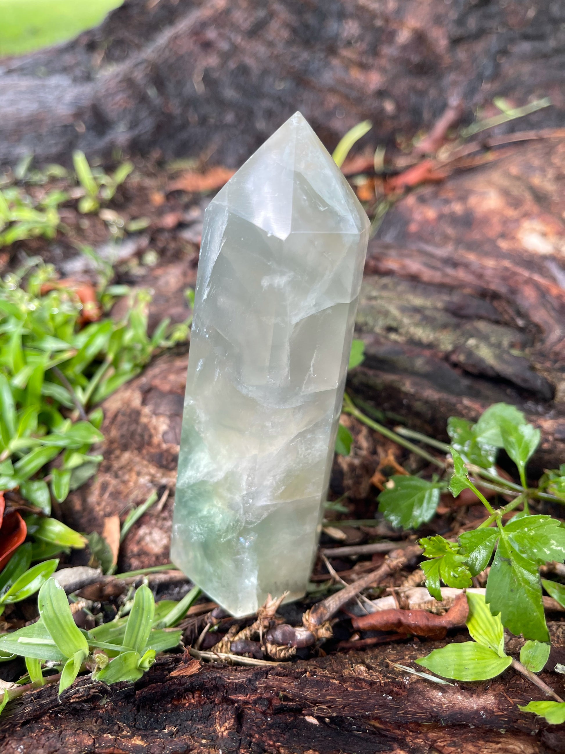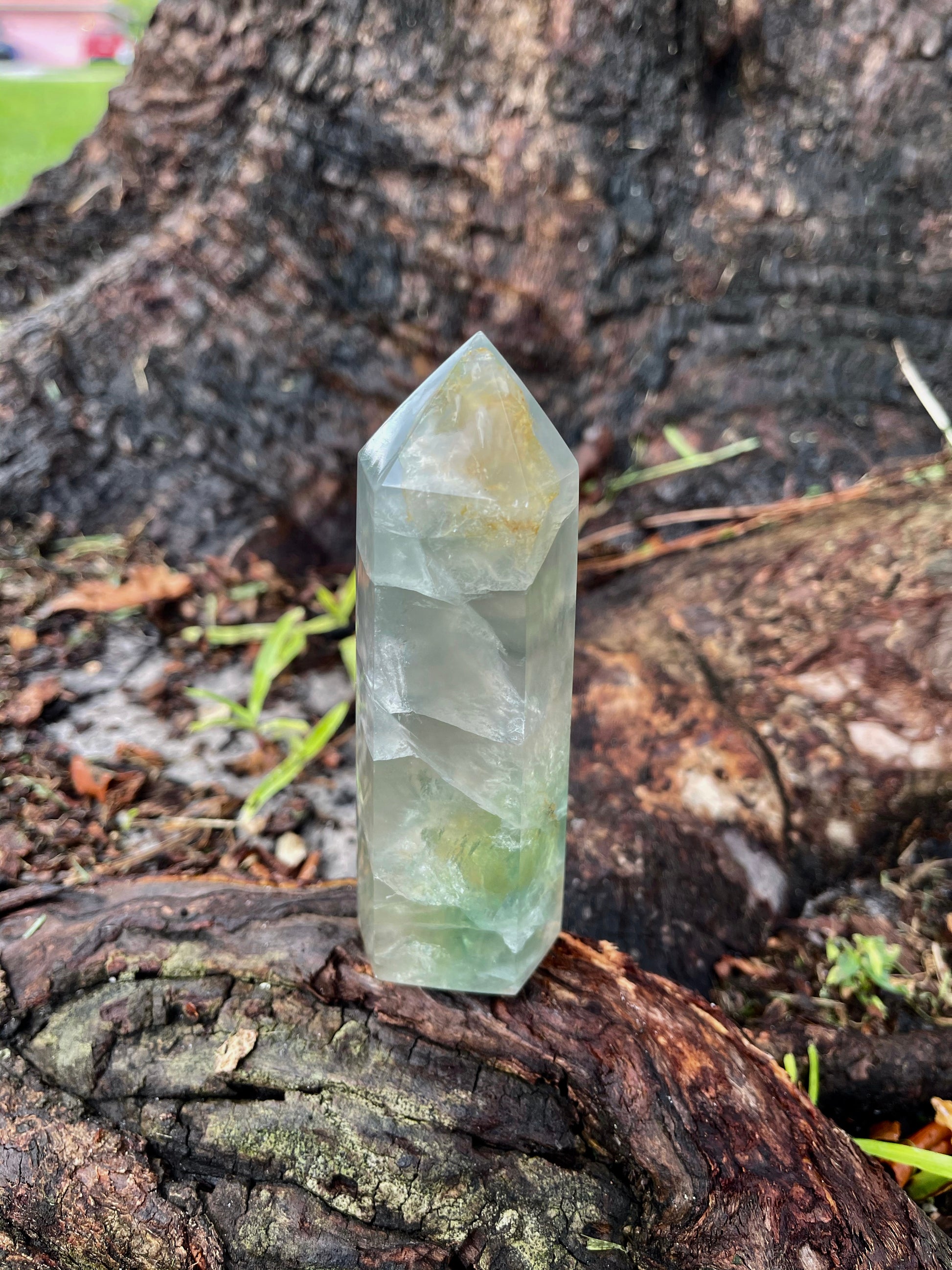 Soft Greens, Violet and Yellows Fluorite Tower, Crystal Magic