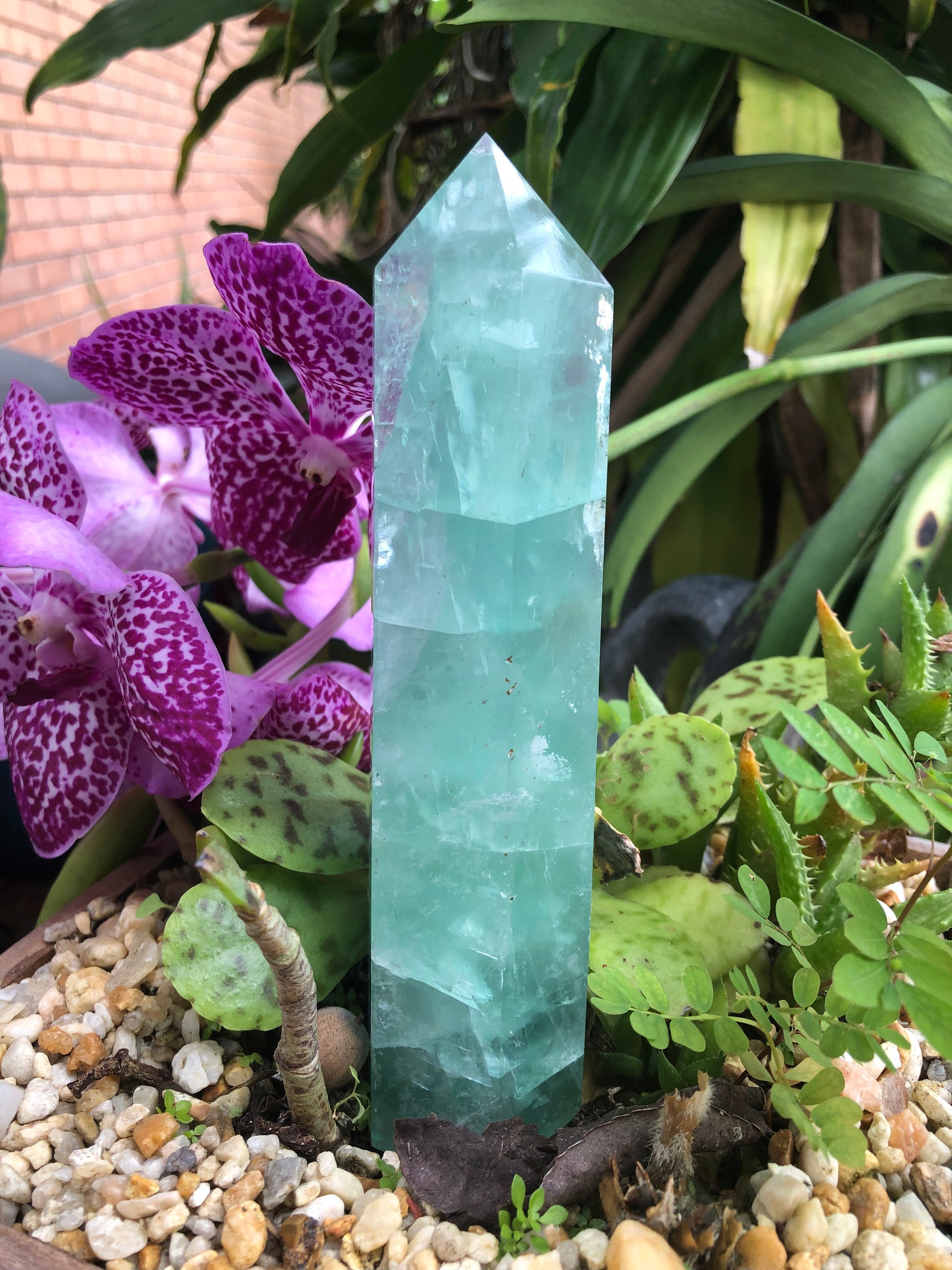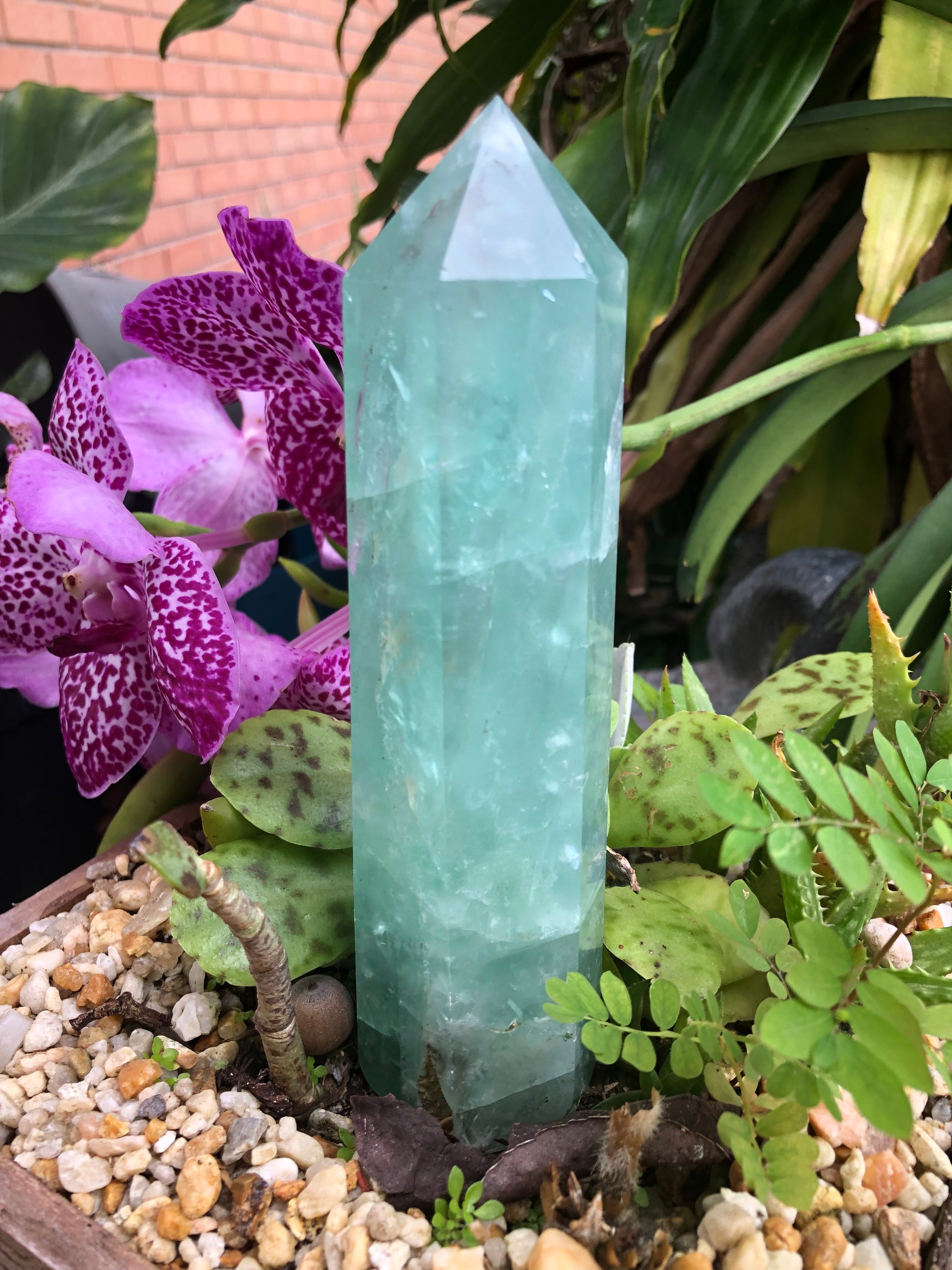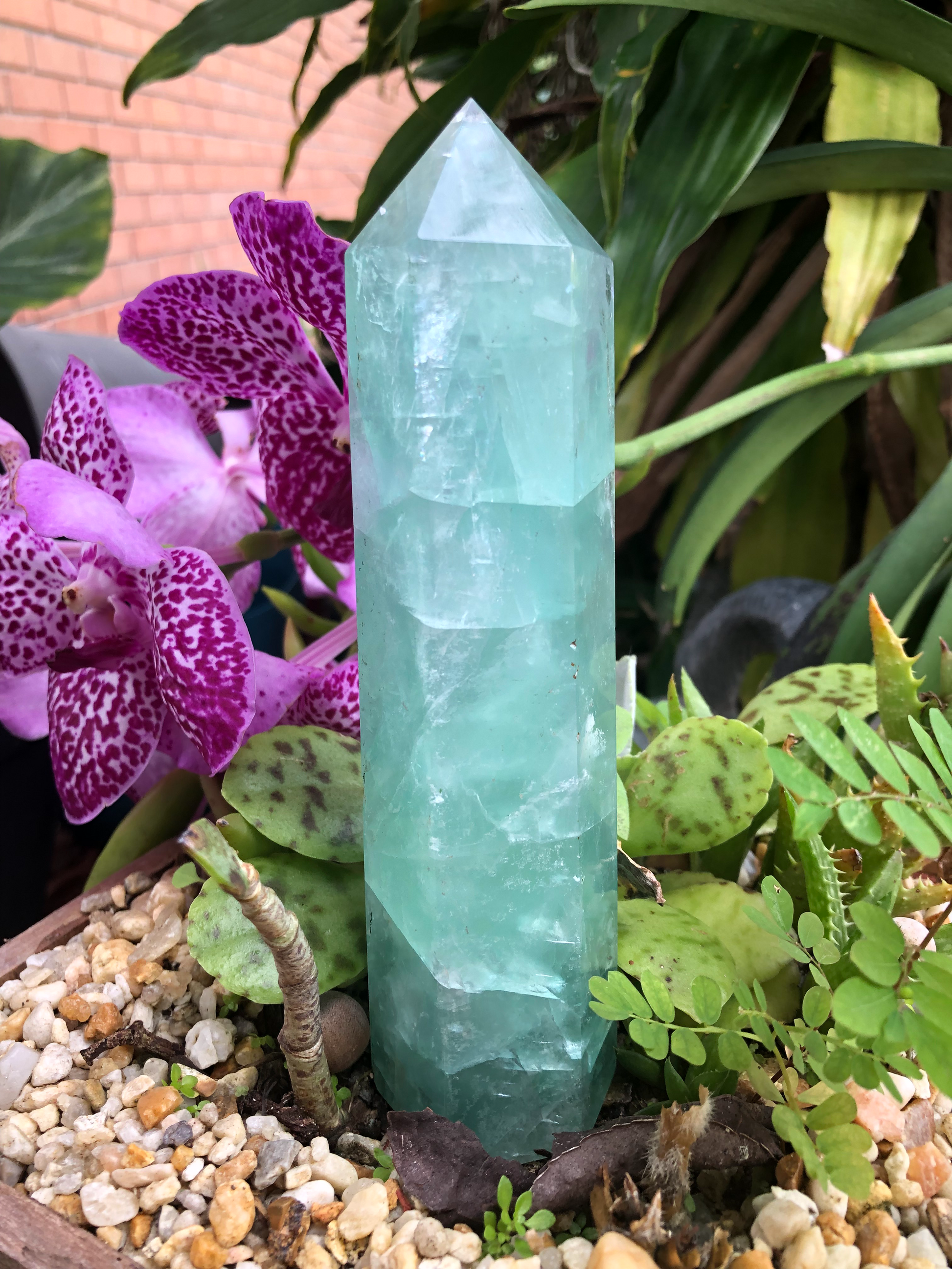 This large green fluorite obelisk is lovely to look at every angle! I hand choose my crystals for their energy and their quality.