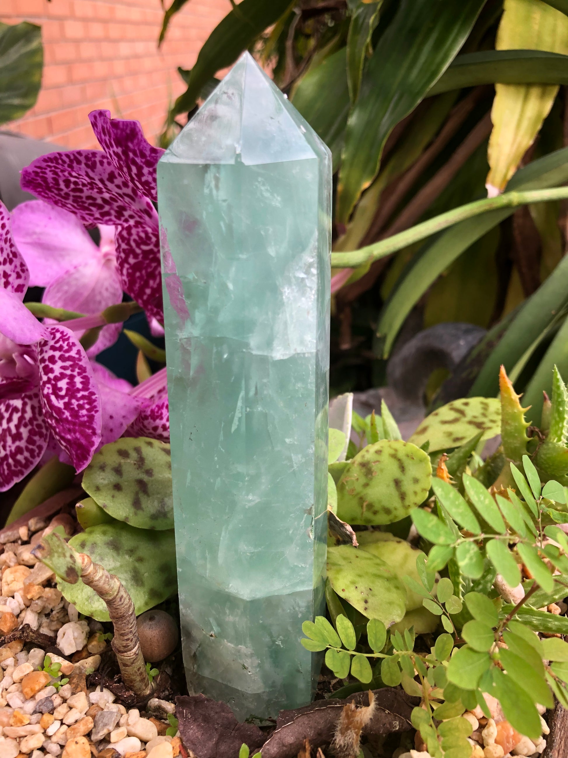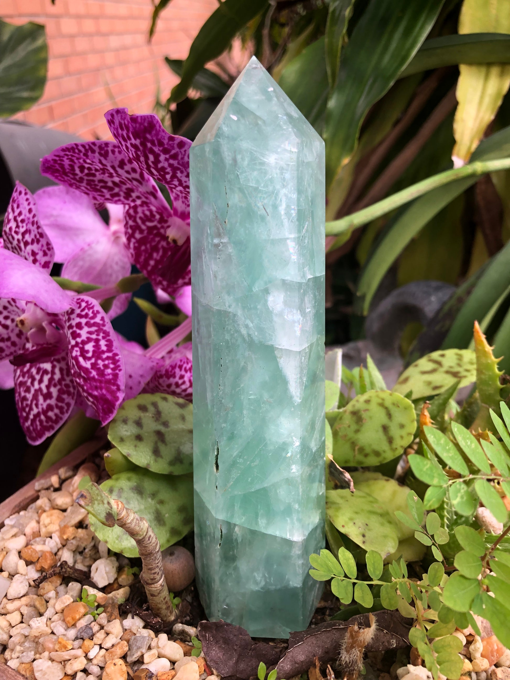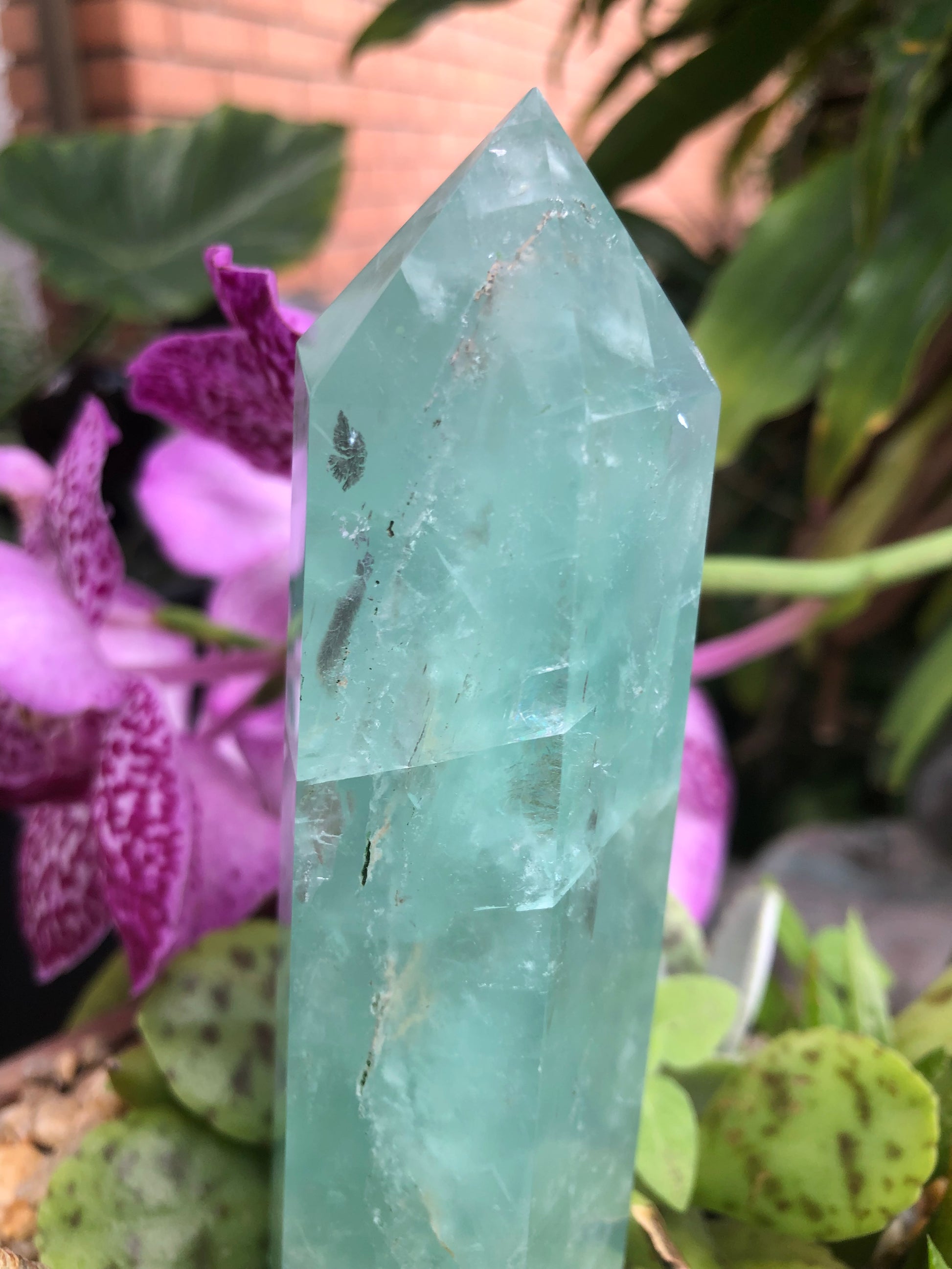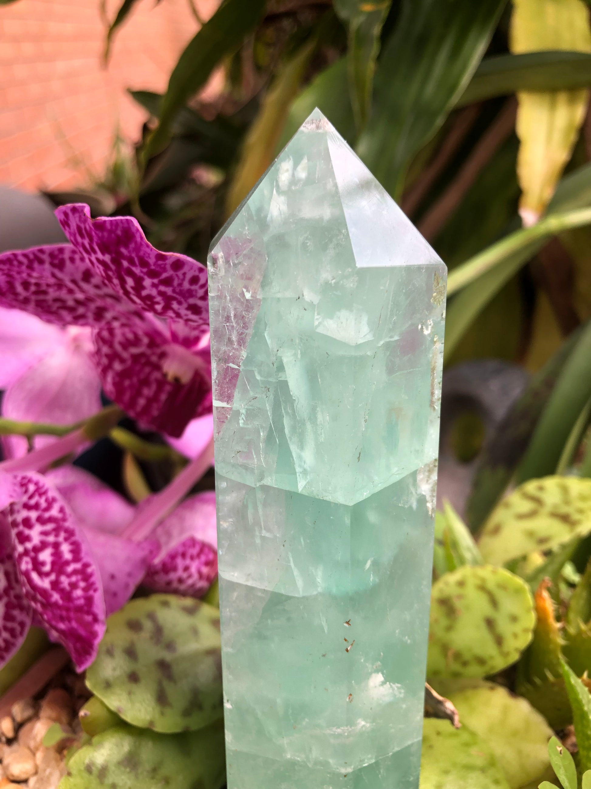 This large green fluorite obelisk is lovely to look at every angle! I hand choose my crystals for their energy and their quality.