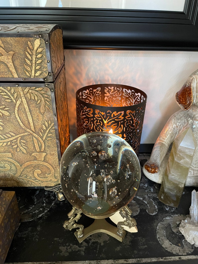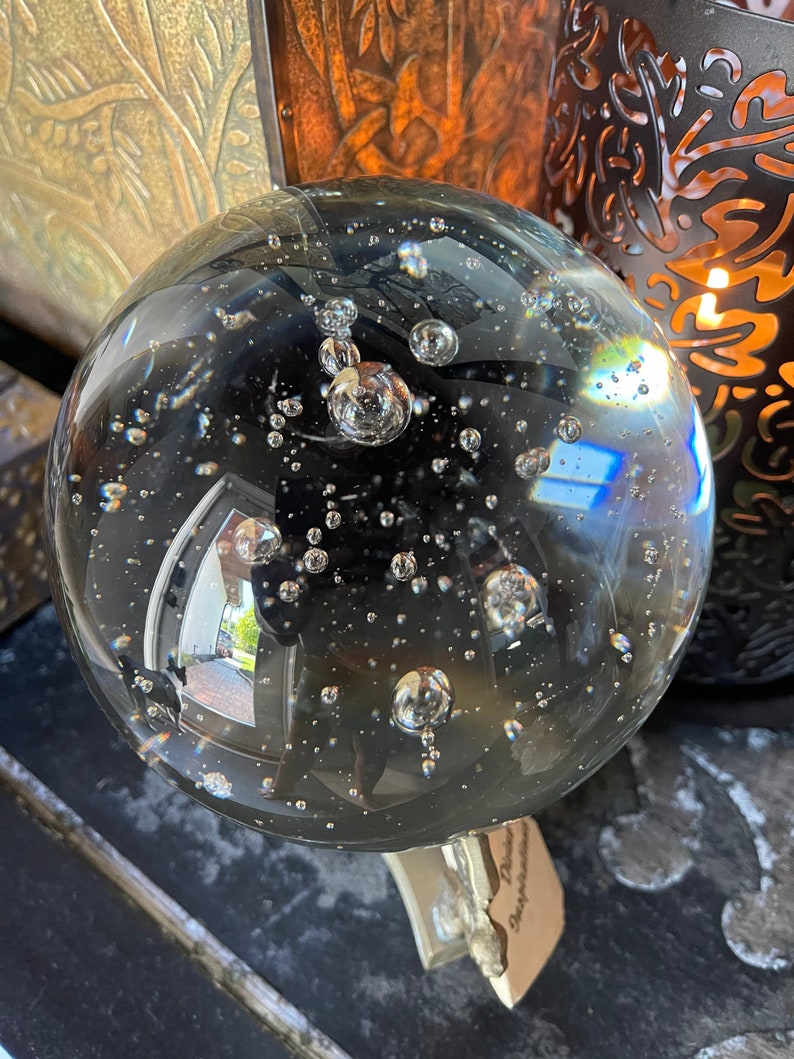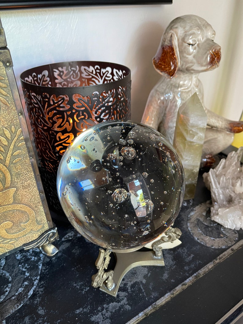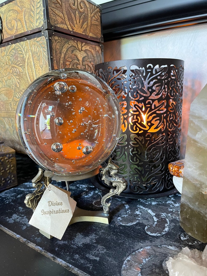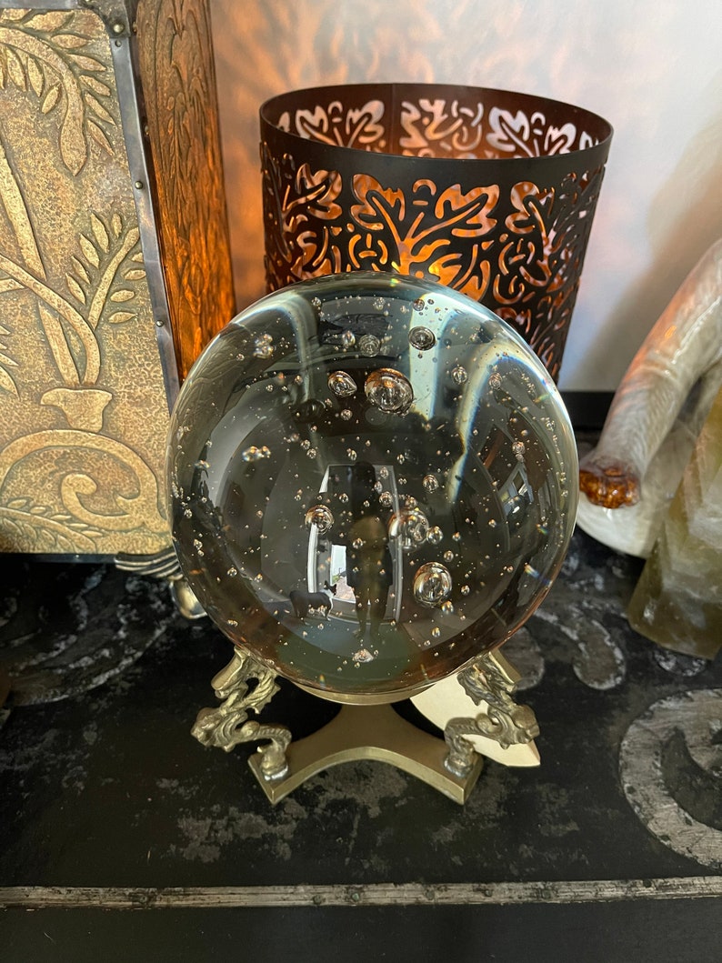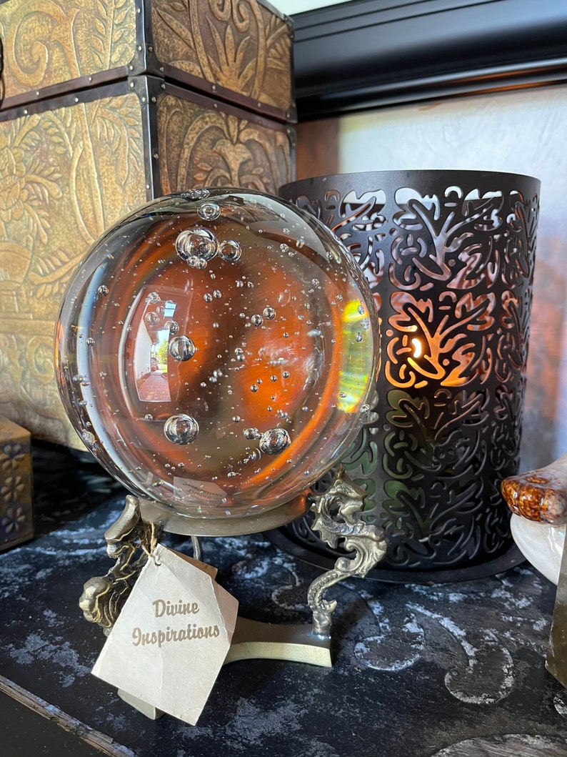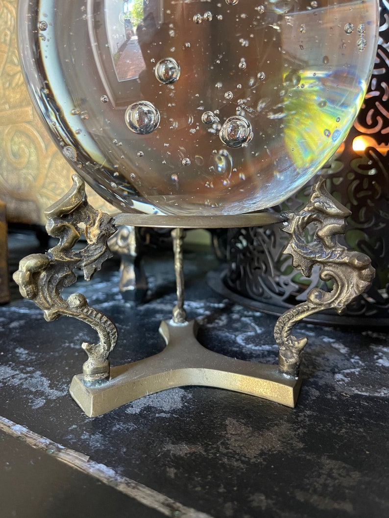 Spectacular Vintage Hand Blown Glass Ball with Ornate Base, Old World Vintage