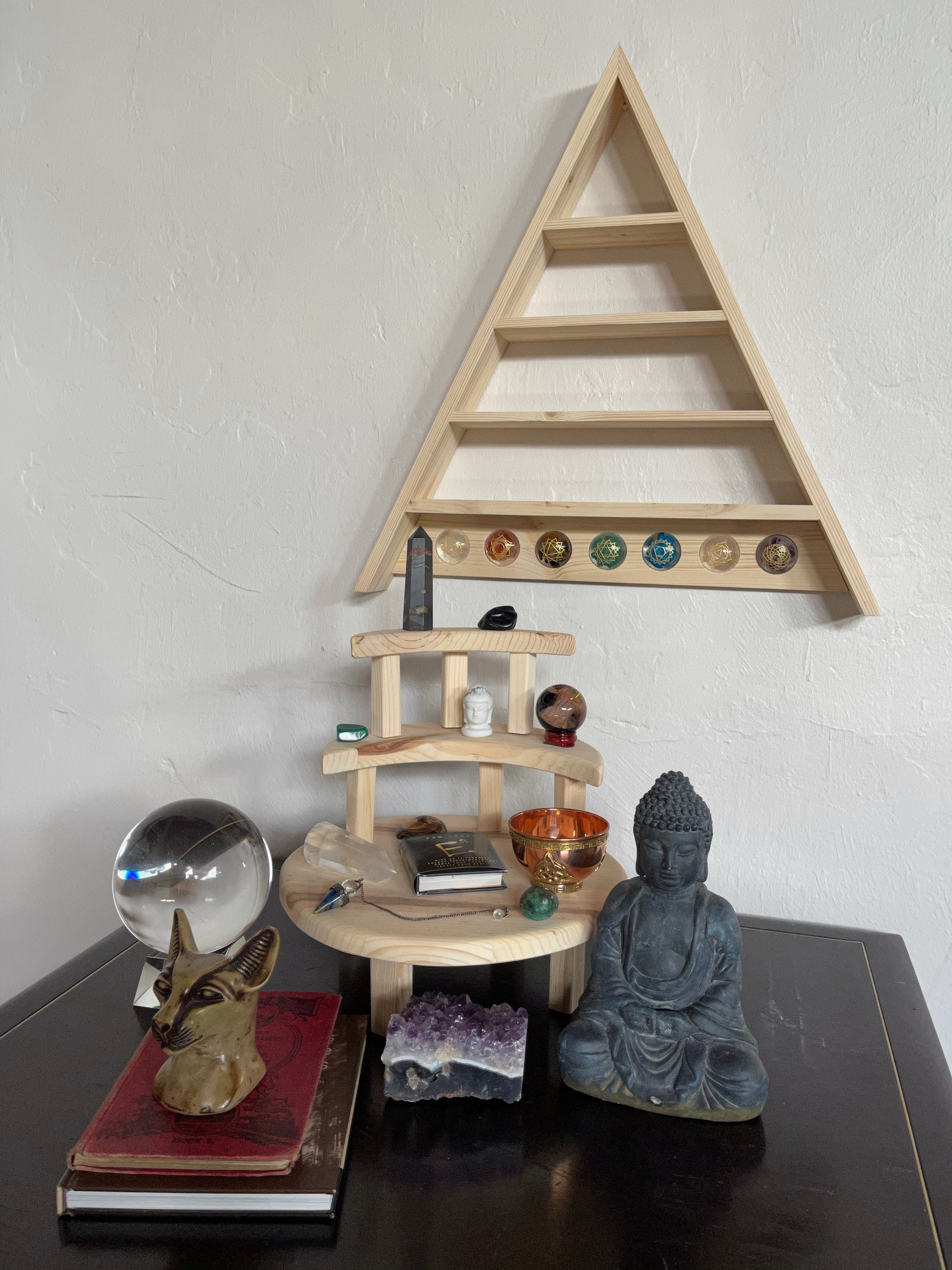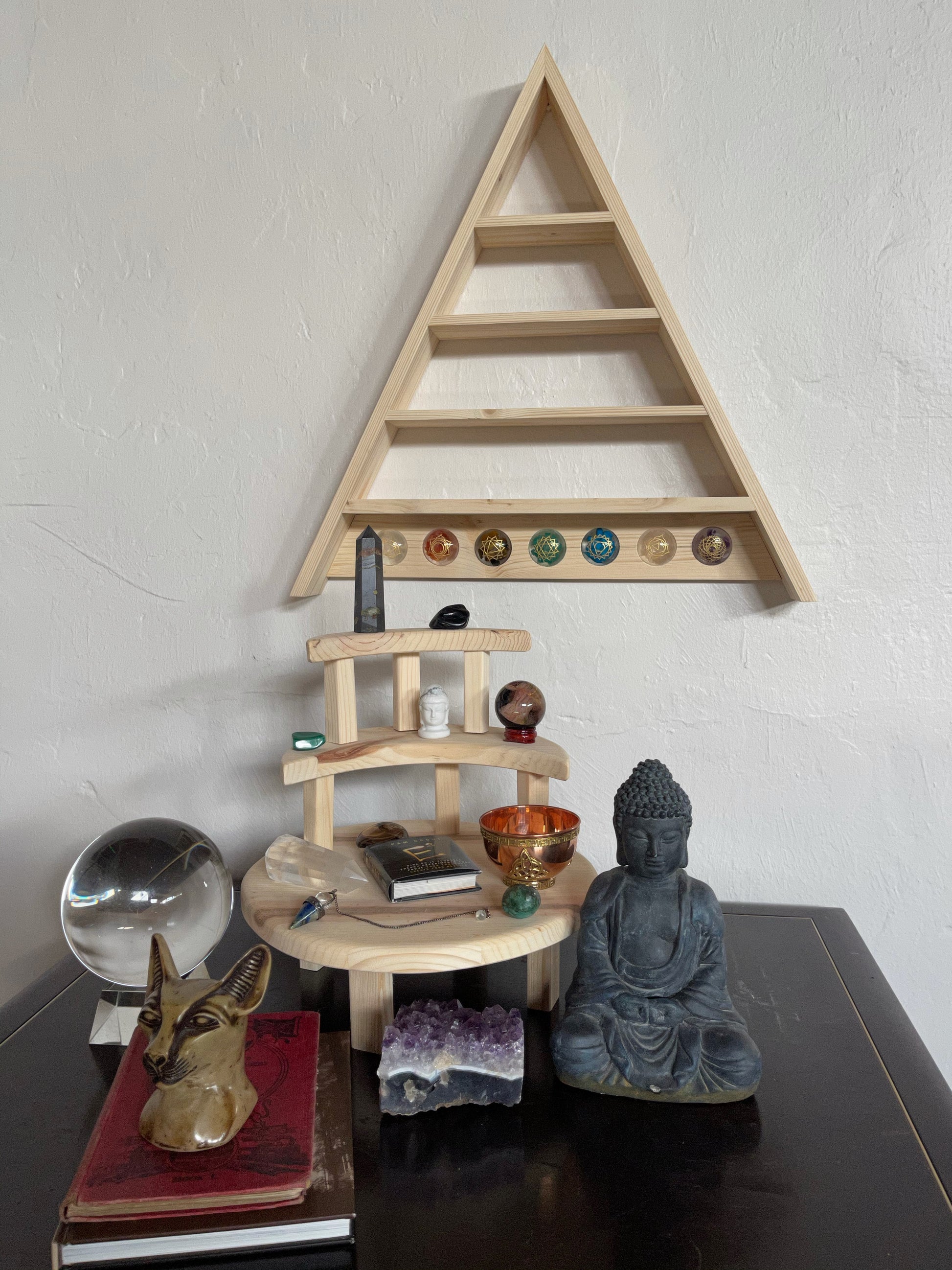 This past Seashellcraft design is sure to delight in any meditation area. Beautiful wood for pure positive energy in your space!