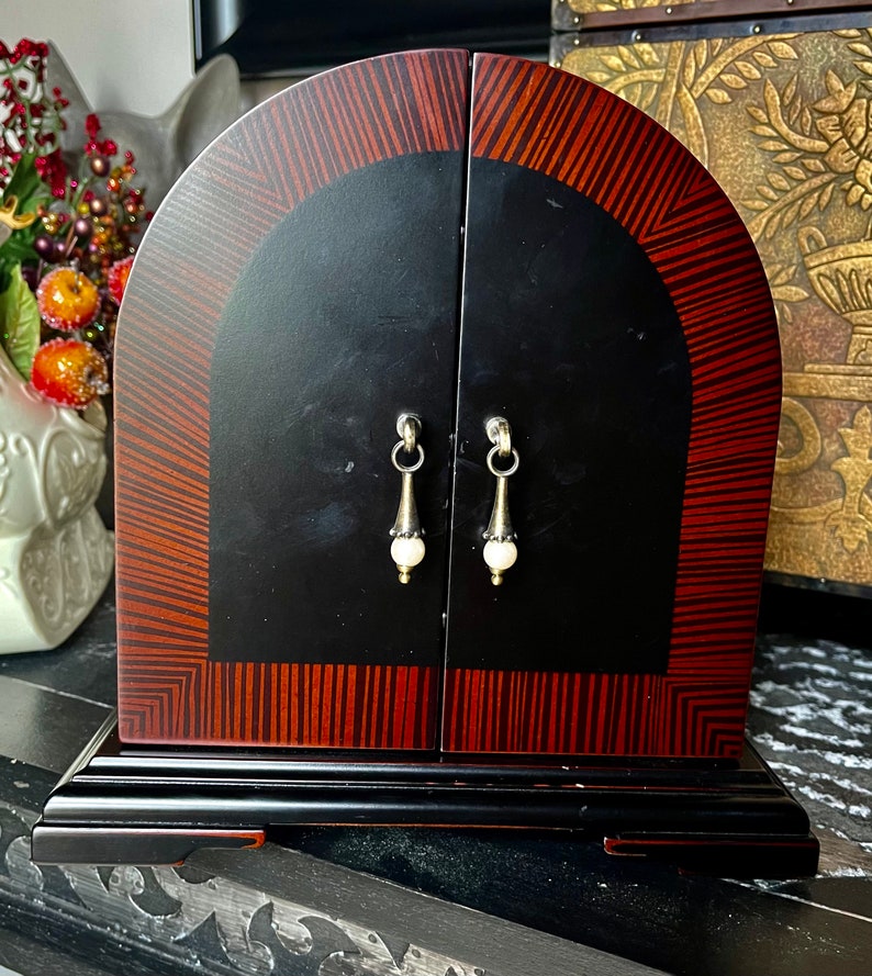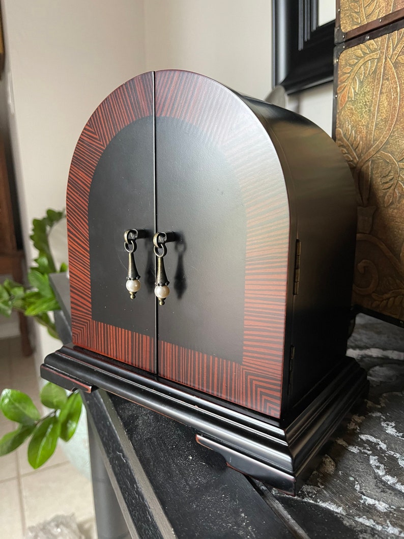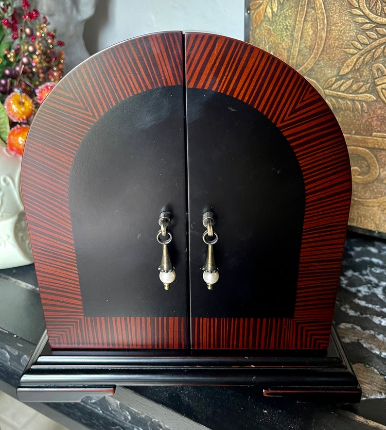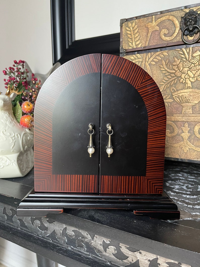 Striking Paris Chic Wood Jewelry Chest With Pearl Drop Hardware, Old World Vintage