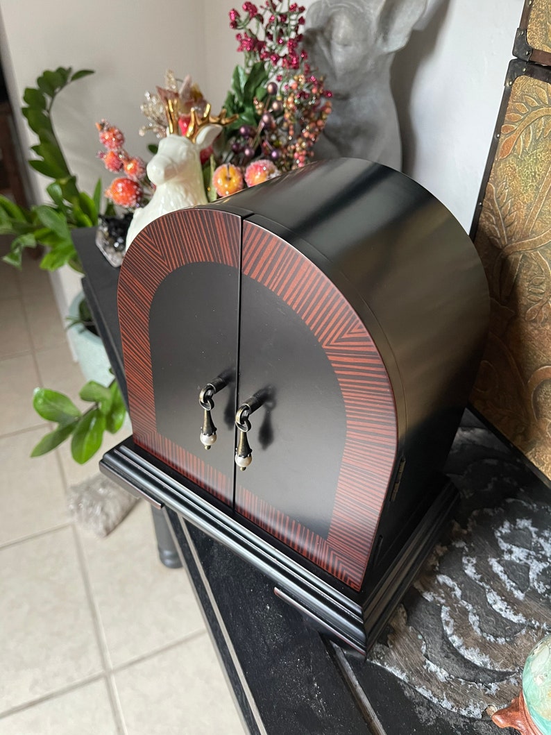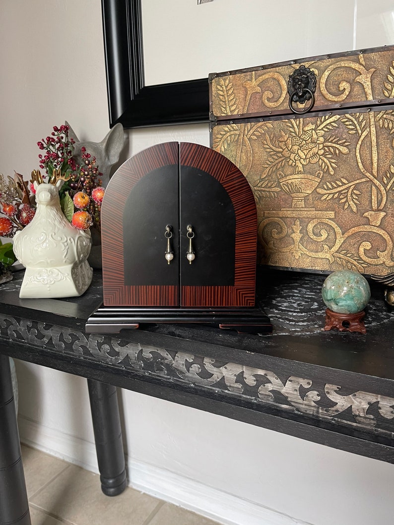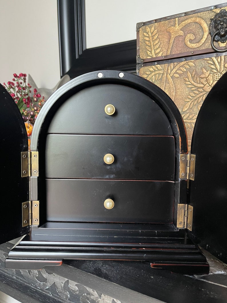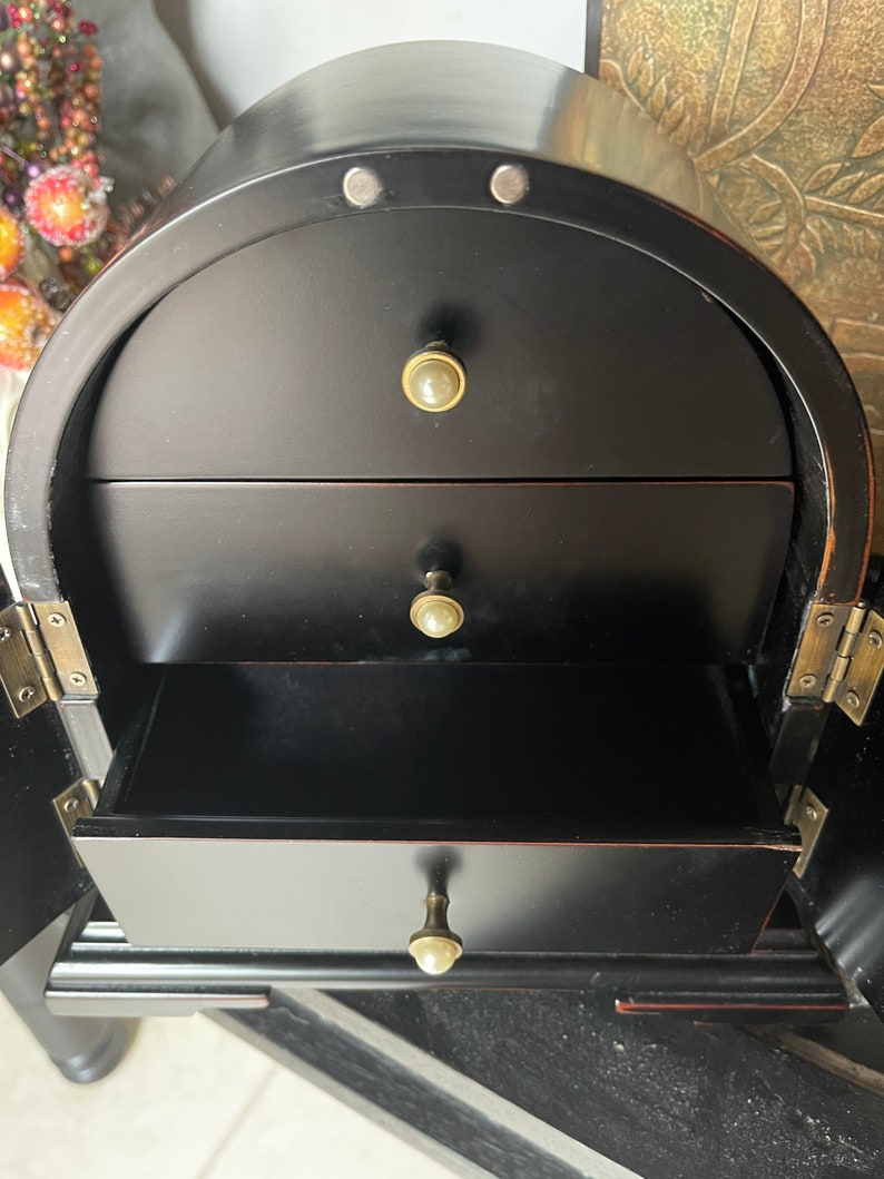 Striking Paris Chic Wood Jewelry Chest With Pearl Drop Hardware, Old World Vintage
