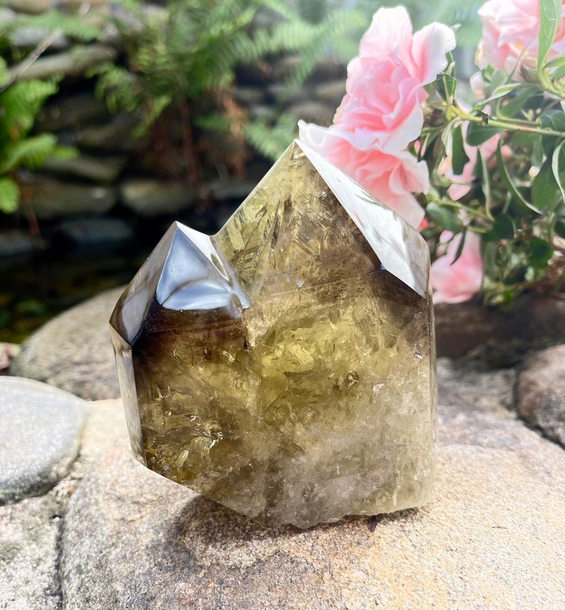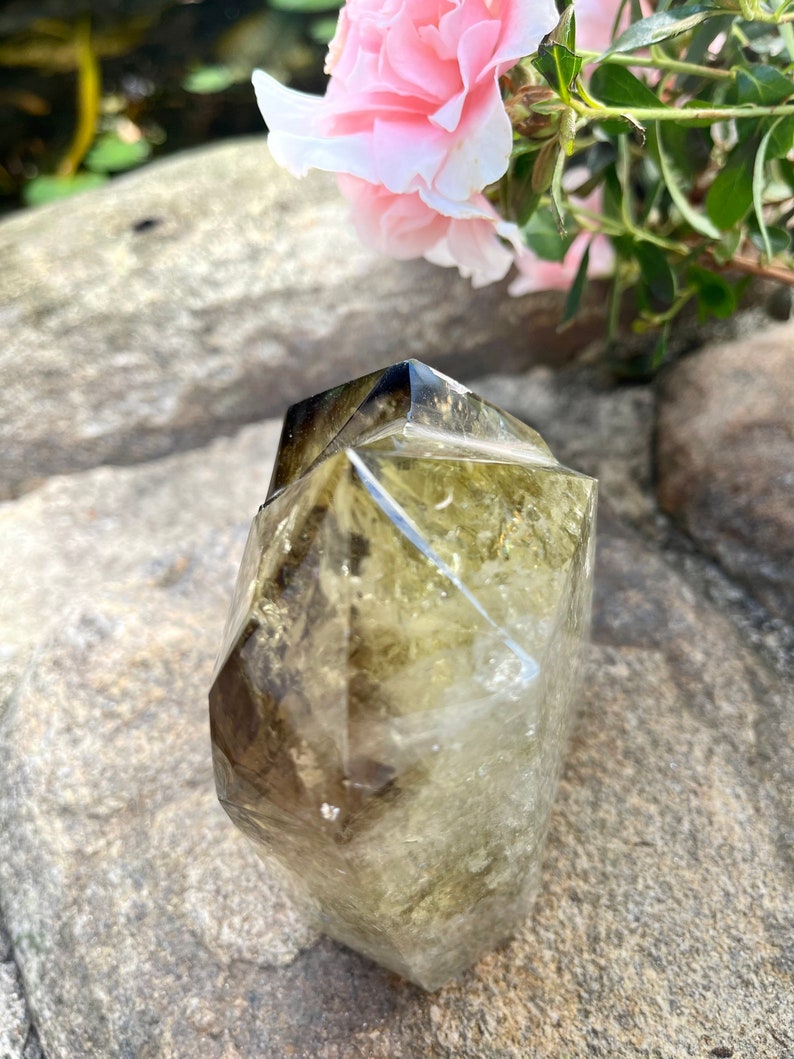 As a Quartz crystal, citrine gets this yellow color from the presence of iron. Darkened by earth's natural radiation as it formed, Smoky Citrine combines the powerful grounding and protective energies of Smoky Quartz with the otherworldly manifesting abilities of Citrine. Use it to neutralize any negative vibes and to bring your desires into reality.