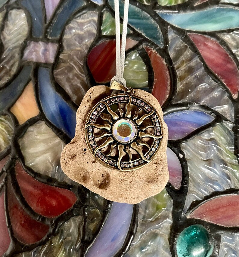 I will be showcasing some of my best stones as pendants/amulets and this one is sure to please with the sun motif.