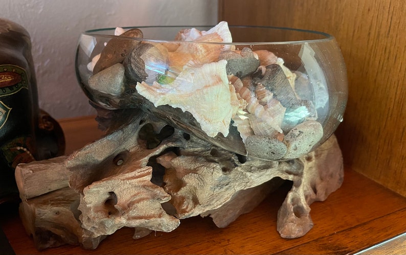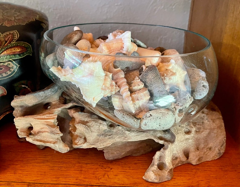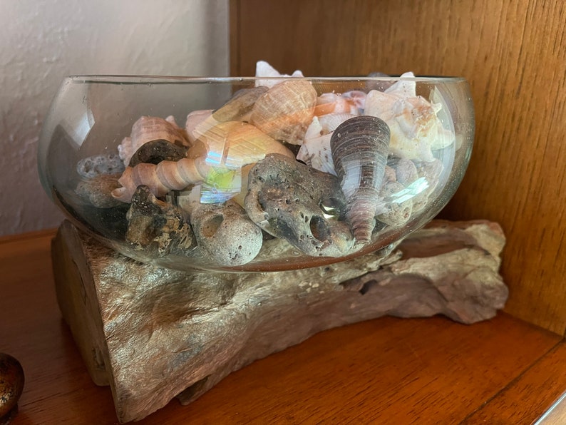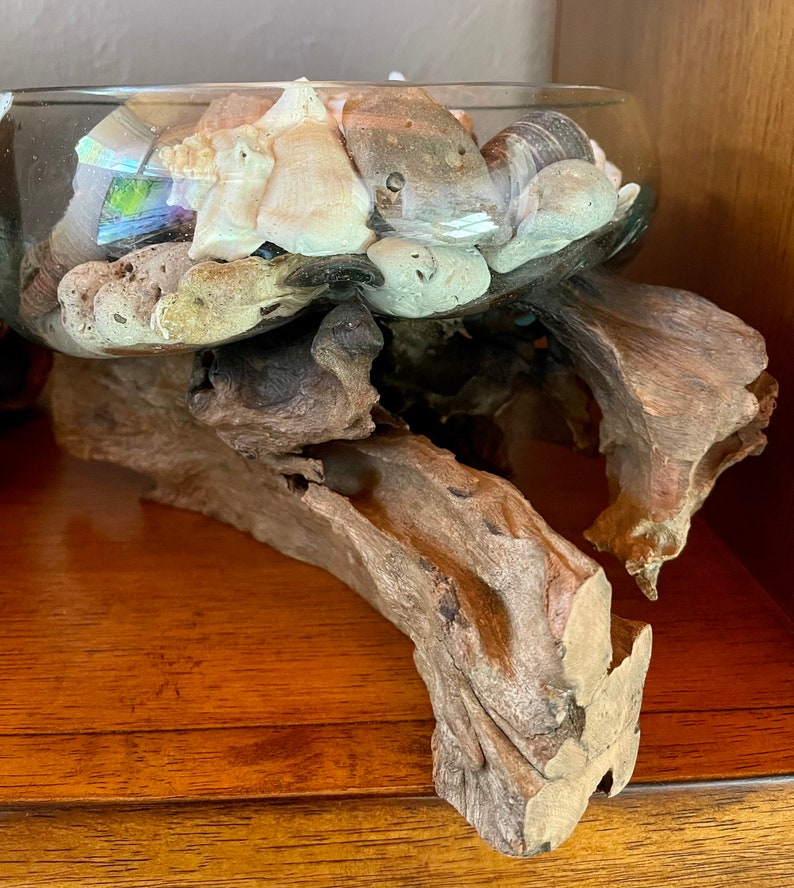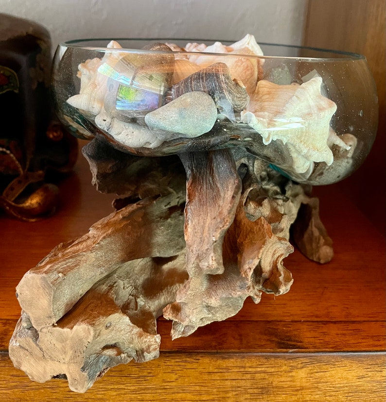 Treasures From The Sea, Molten Glass and Wood Root Sculptured Terrarium, Home Decor