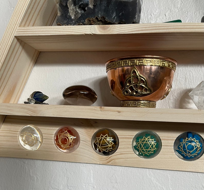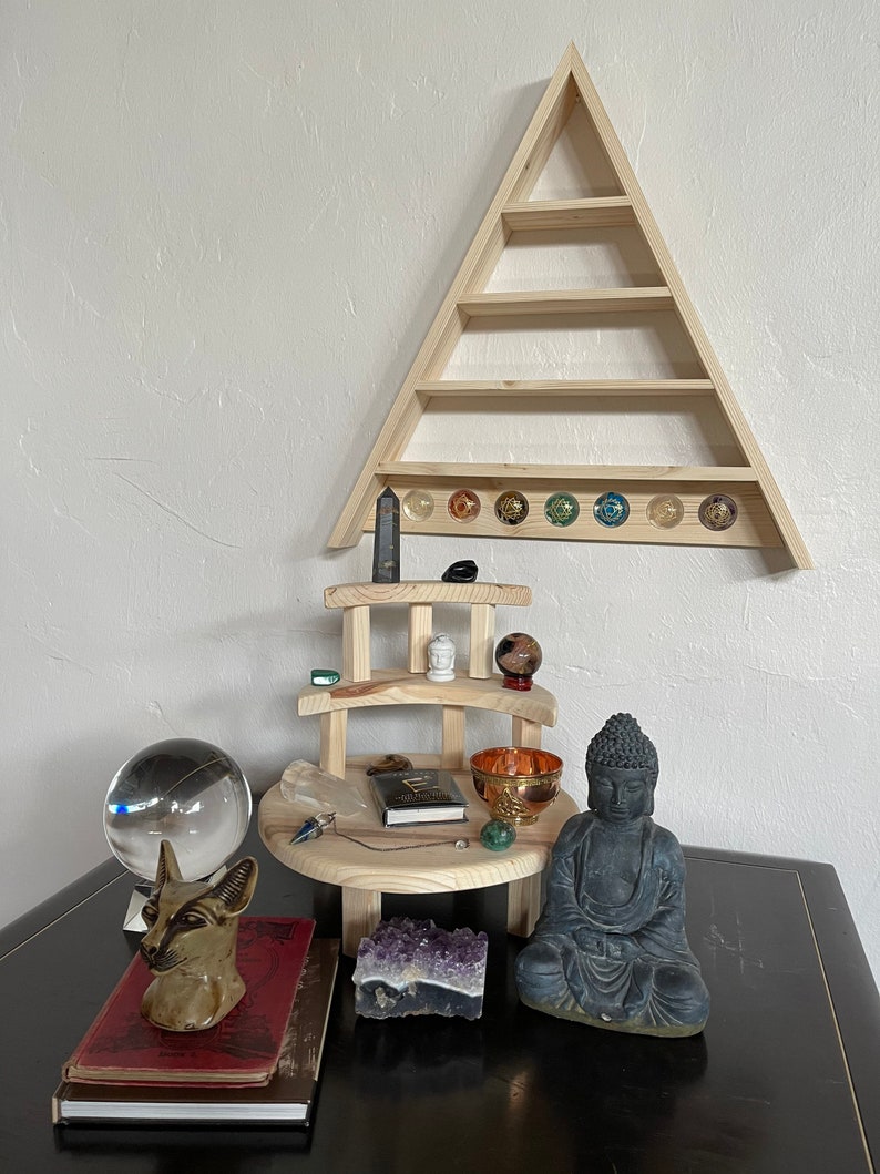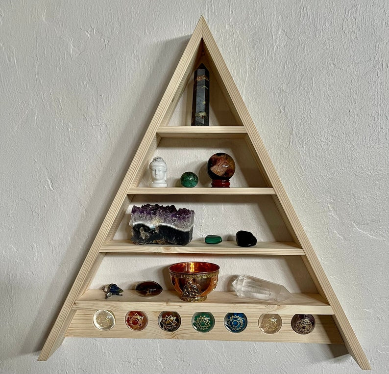Triangle Shelf with Chakra Disks, Home Decor