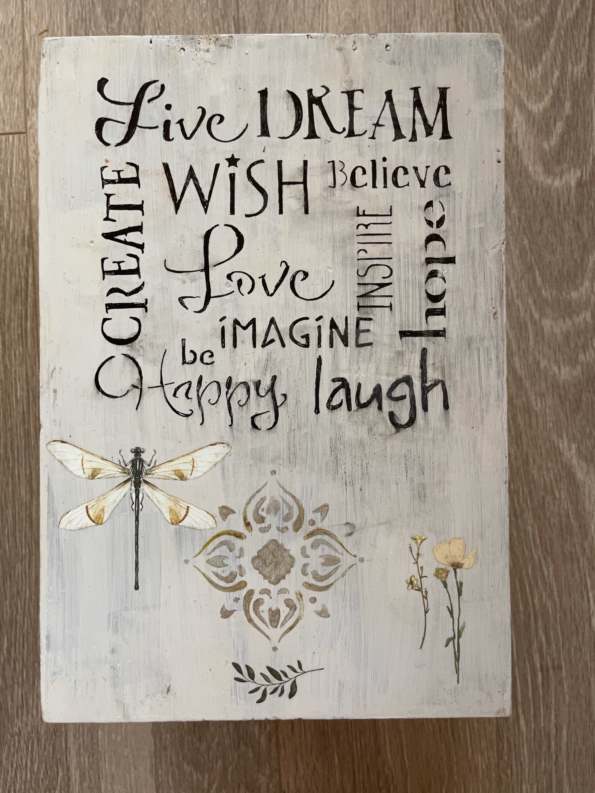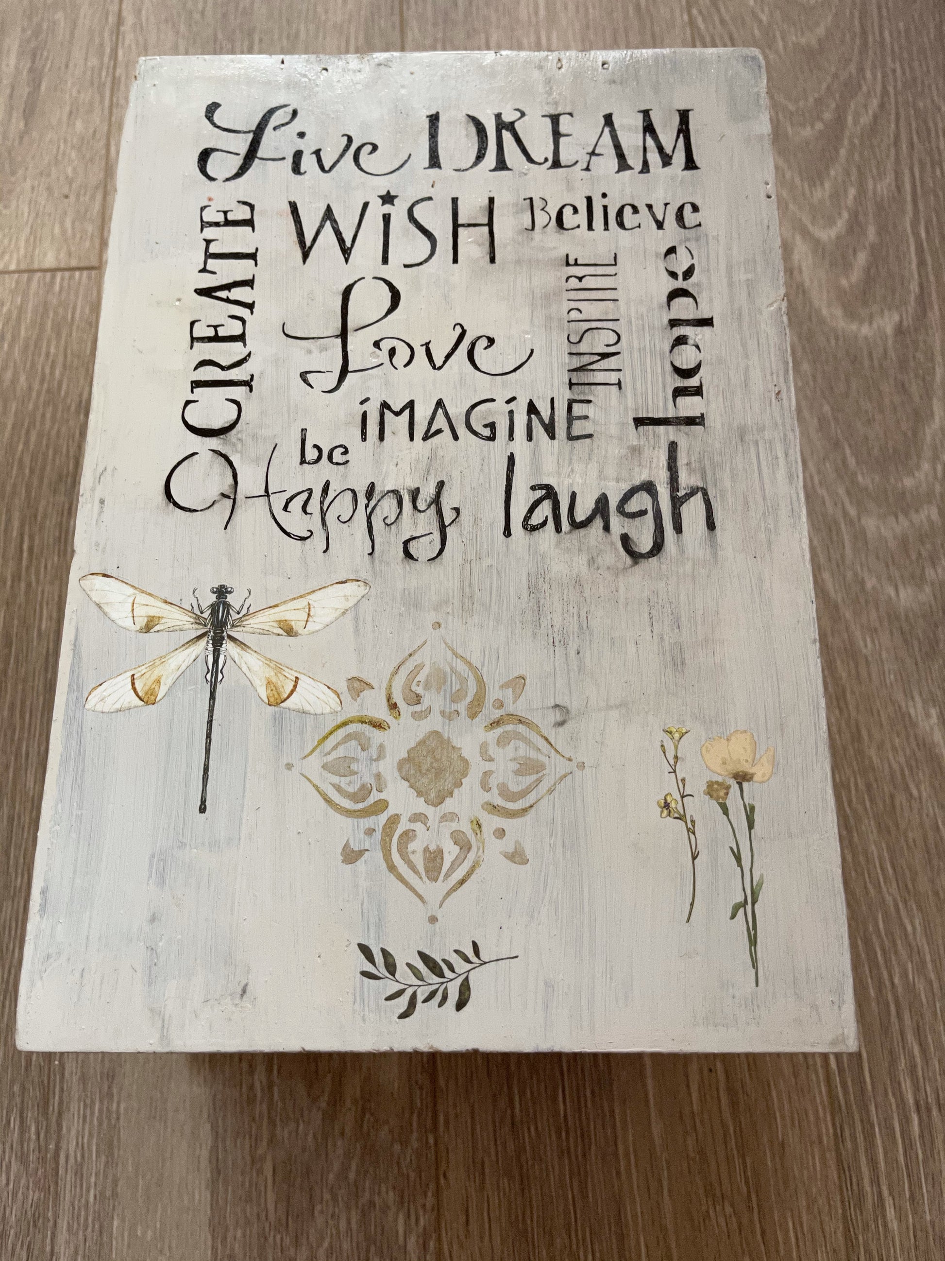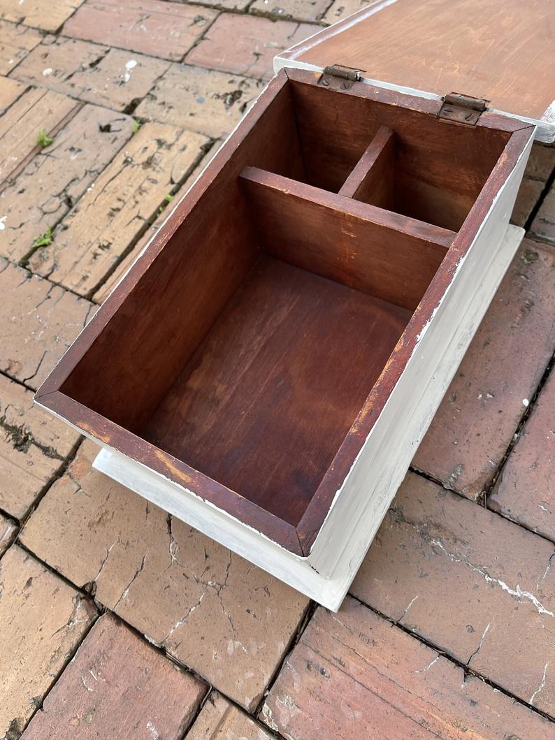 This was a great primitive box that looks to originally be handmade. I added a fresh coat of paint and some accents to give it a contemporary look.
