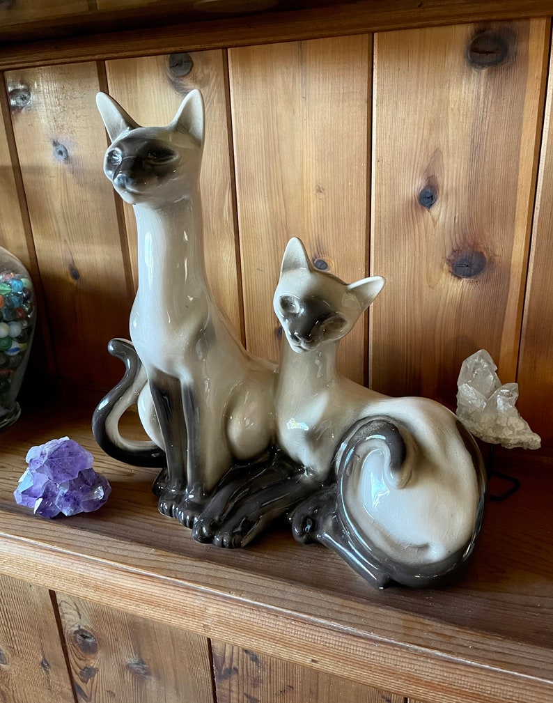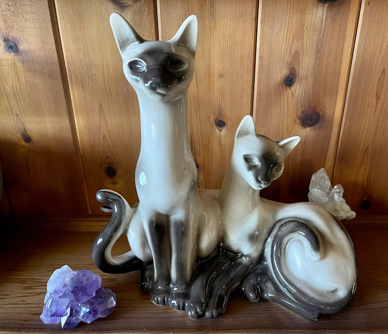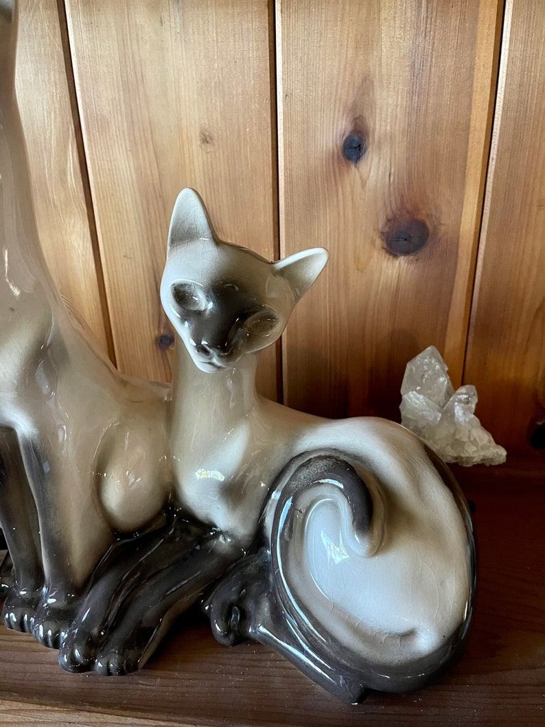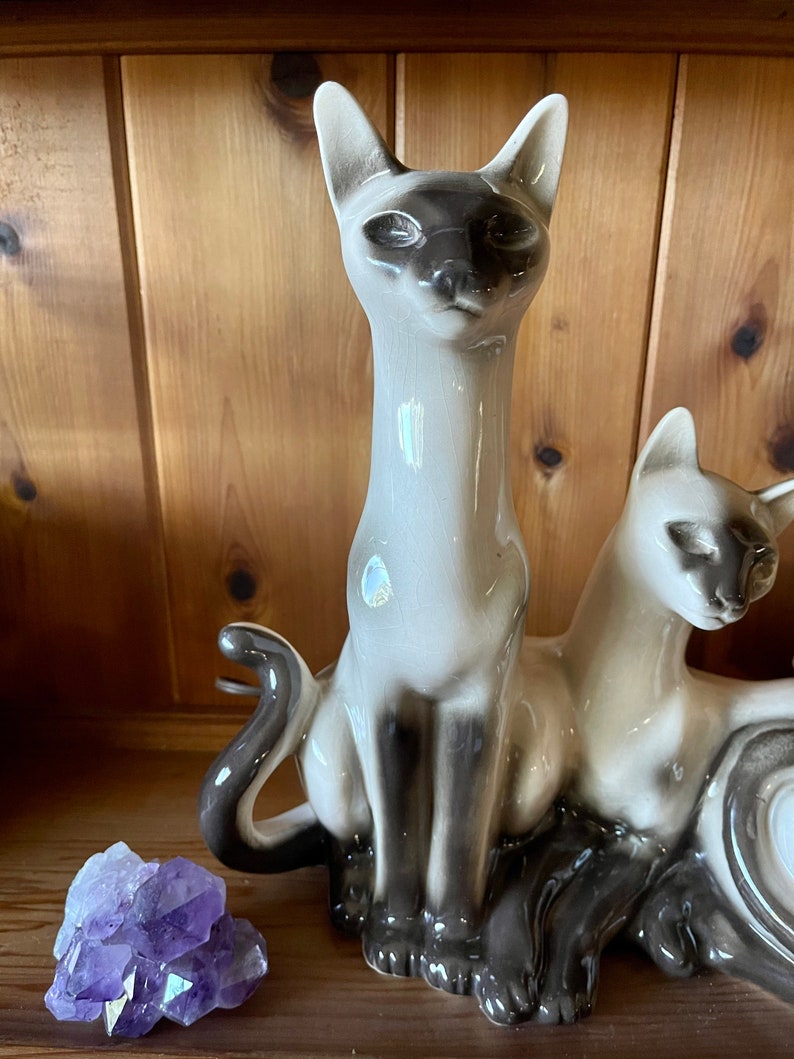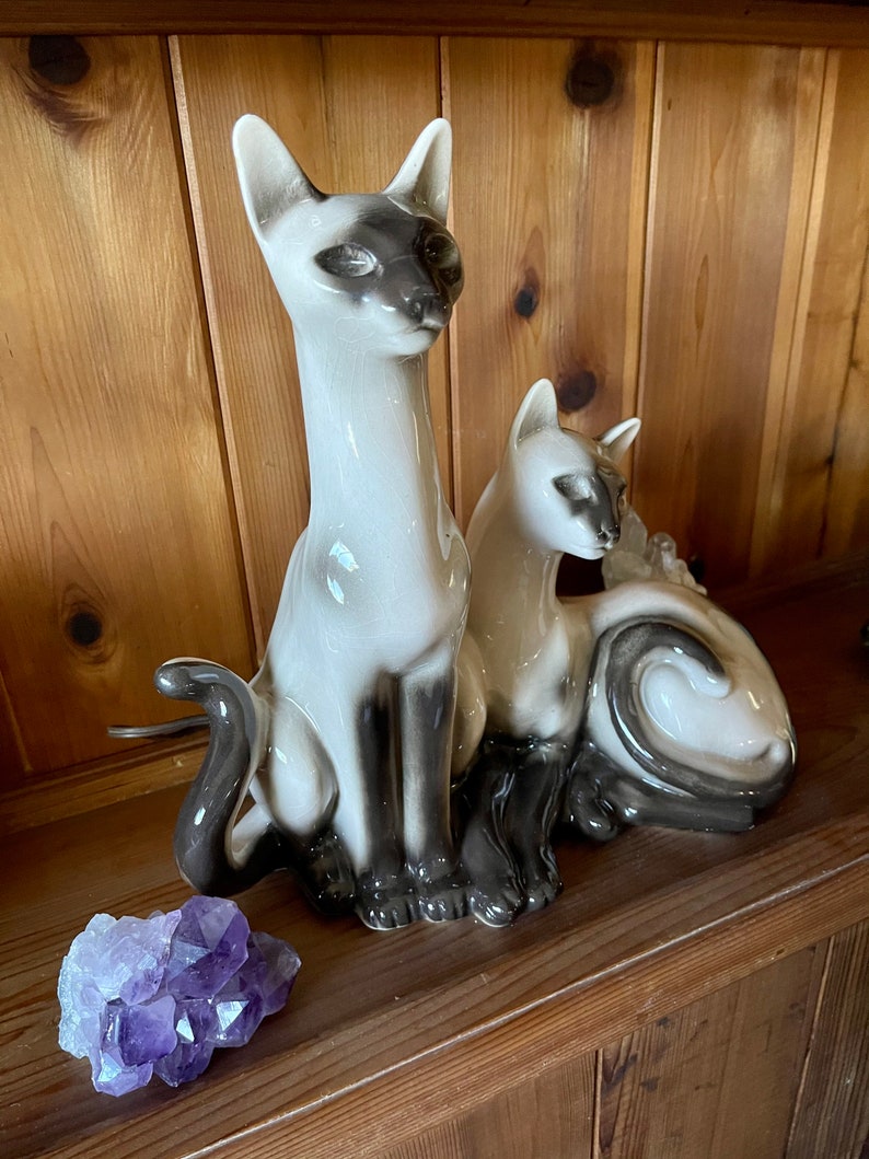 Beautiful vintage siamese cat lamp in working condition with light bulb in back.
