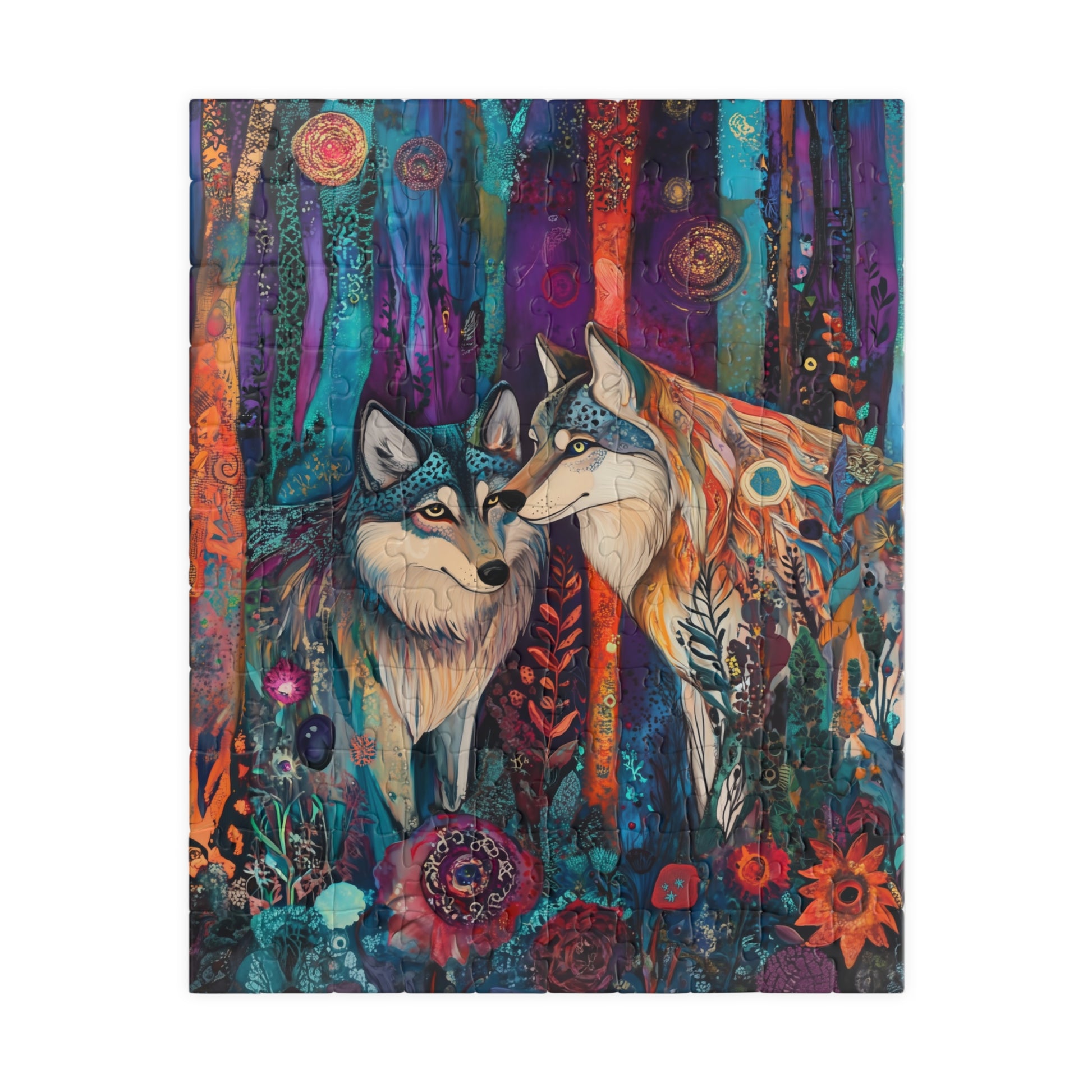 Whimsical Wolf Pair Puzzle | Colorful Forest Art Jigsaw