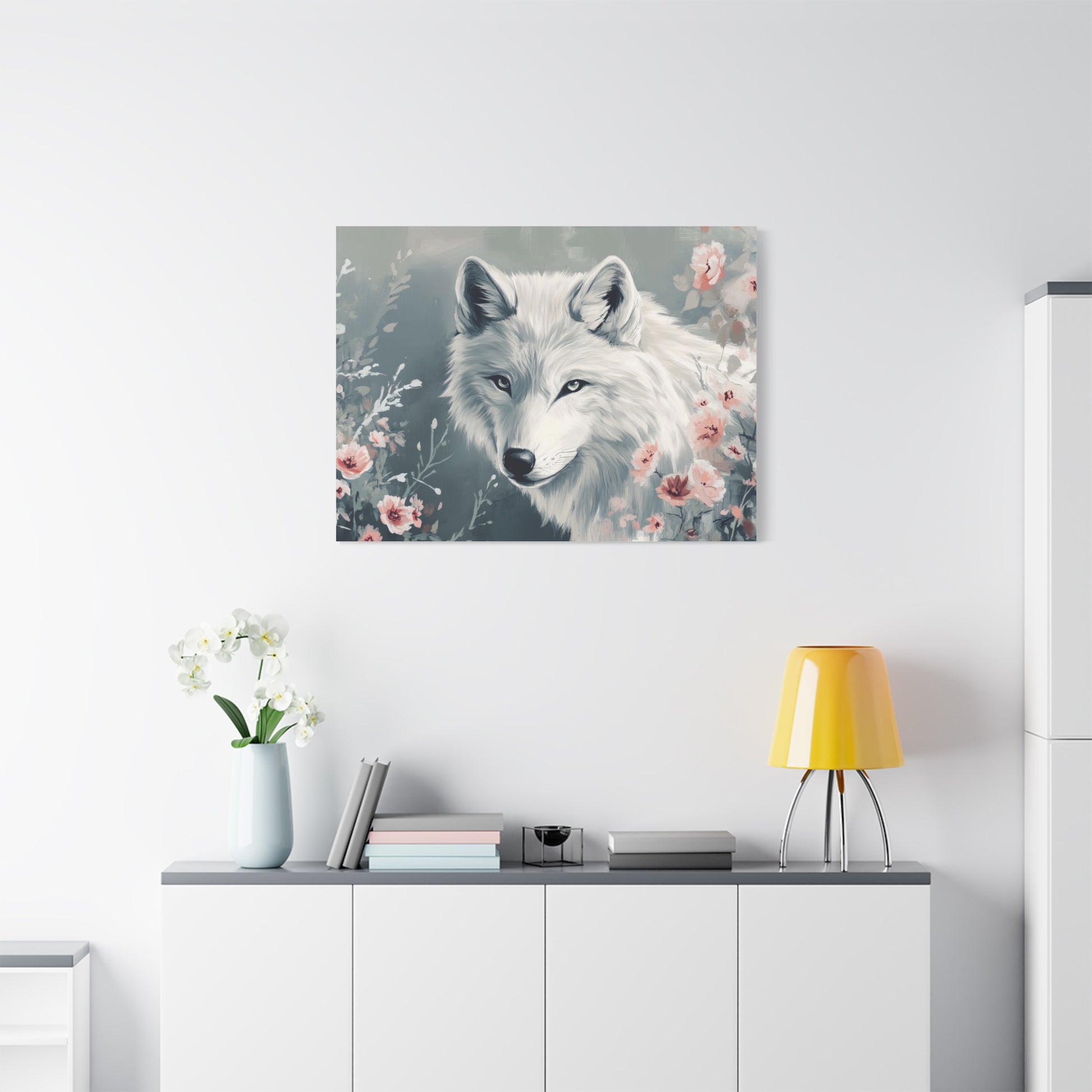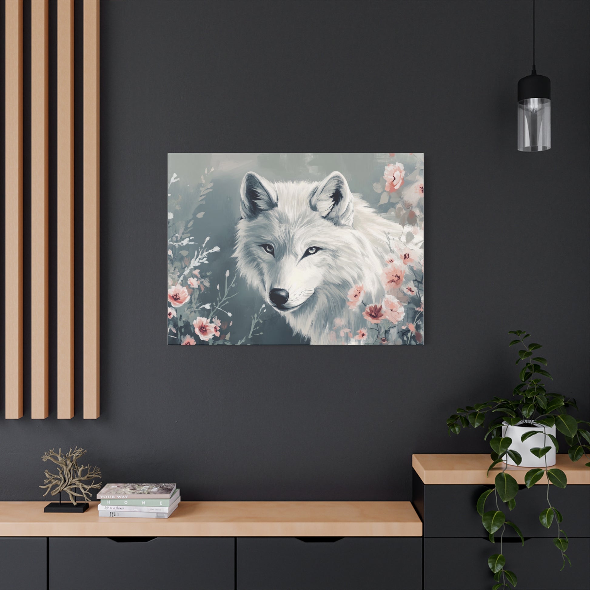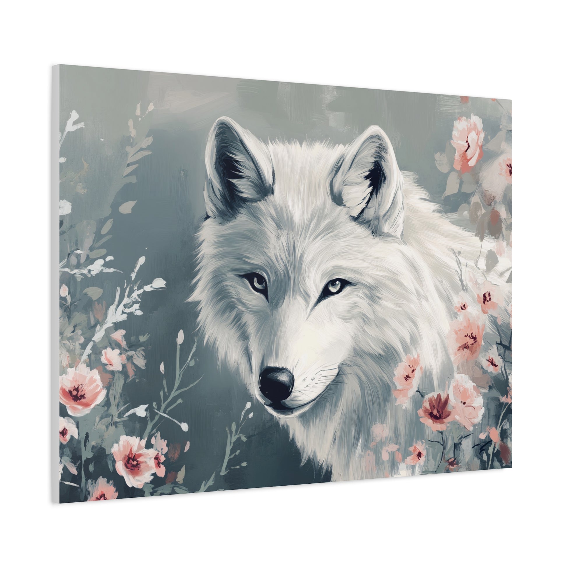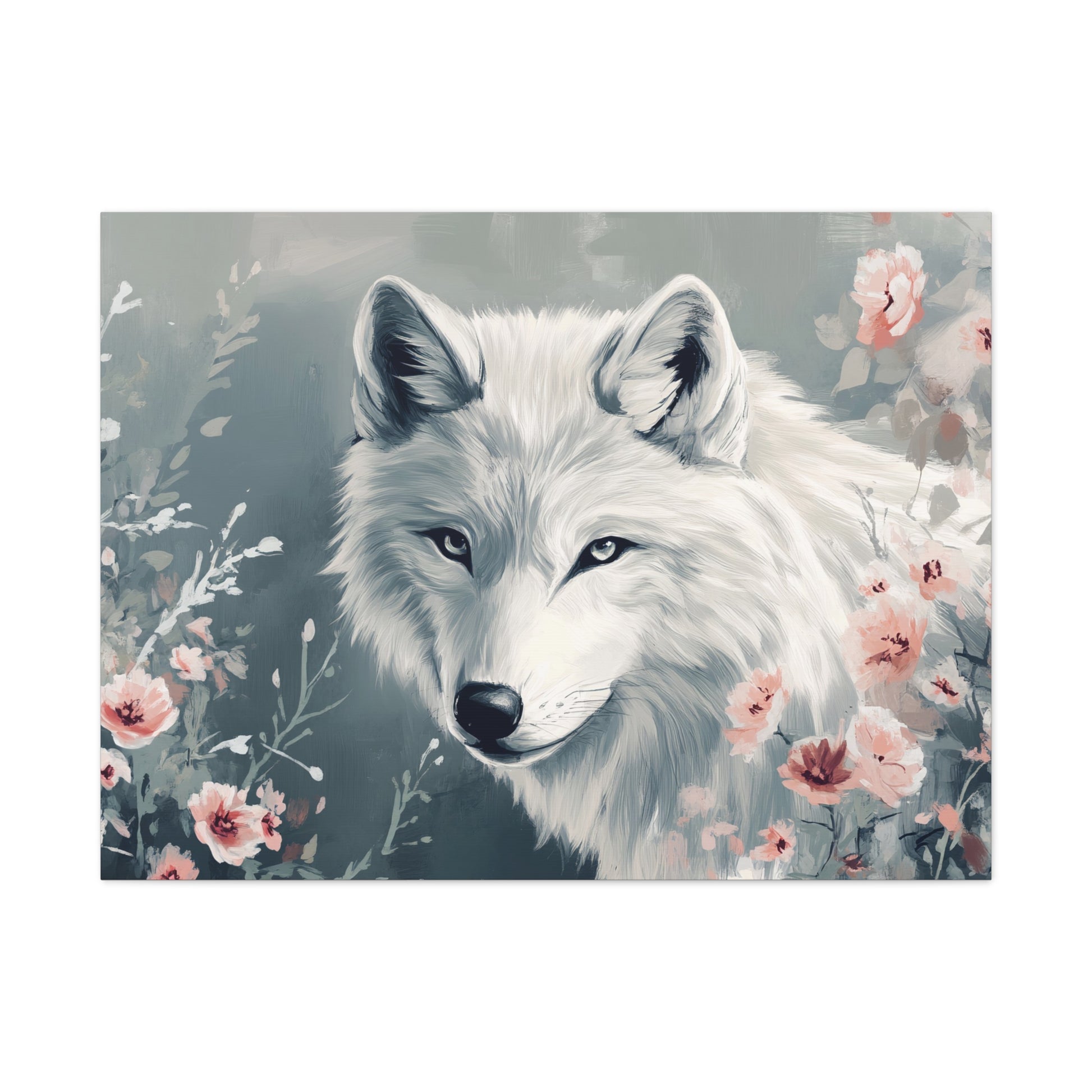 White Wolf Art Canvas Print, Nature Wall Decor, Floral Artwork, Animal Lover Gift, Home Decoration, Wildlife Art