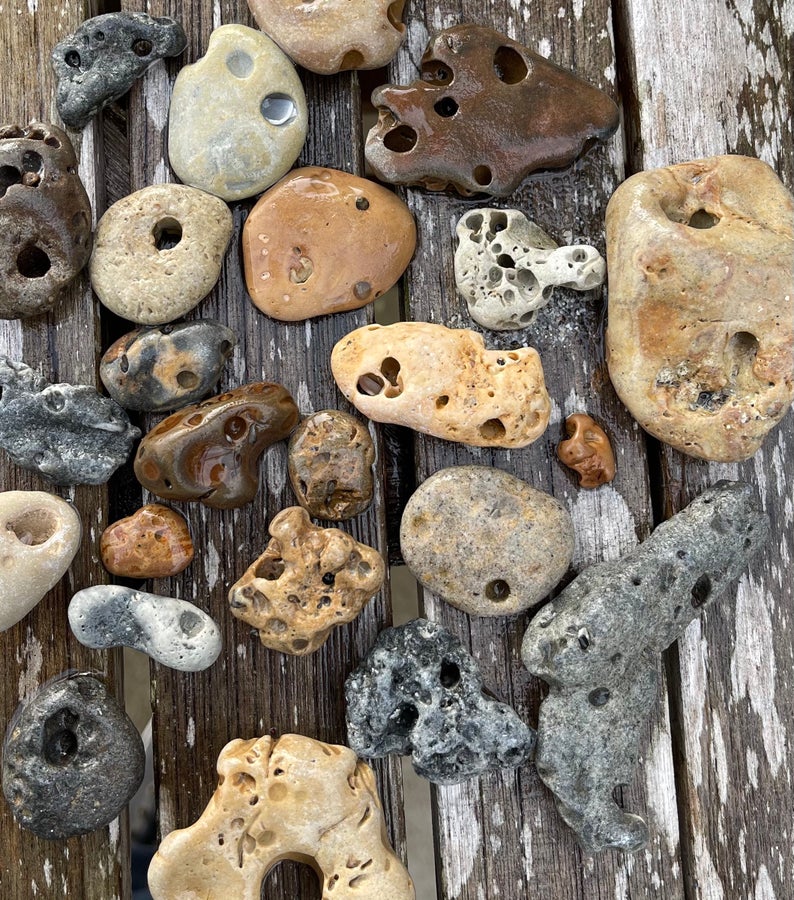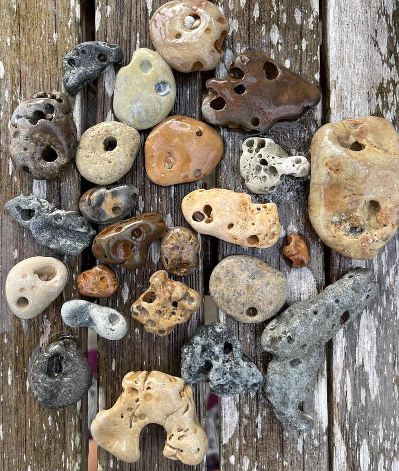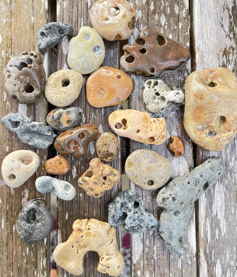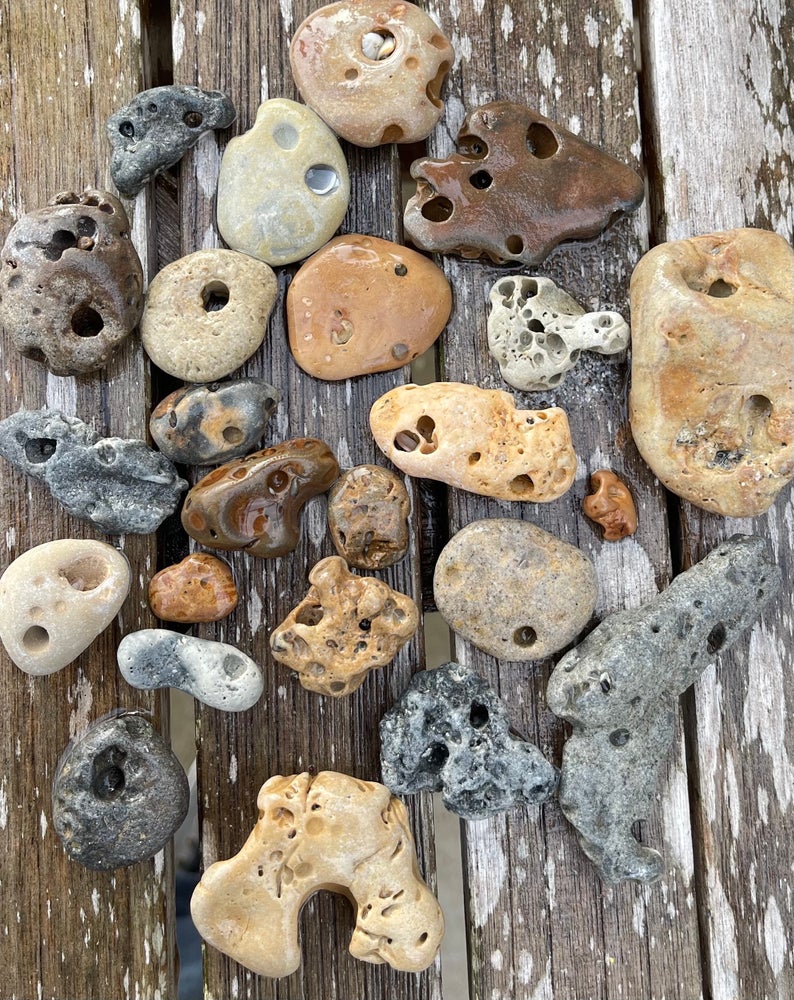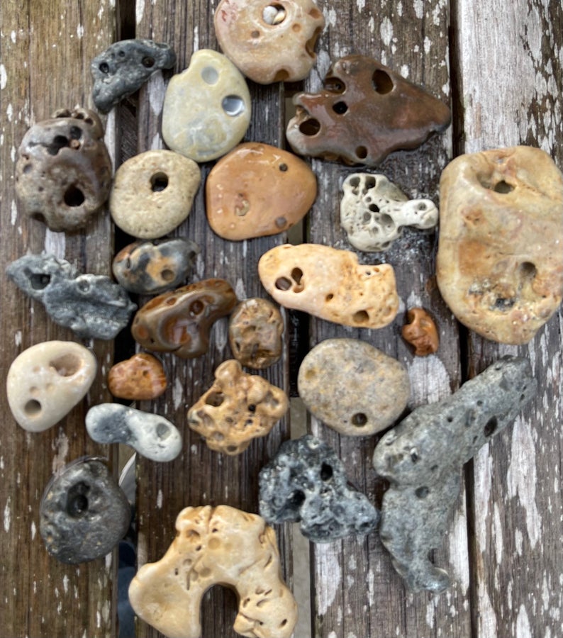 These are beautiful hag stones found on the beaches near Sanibel Island.