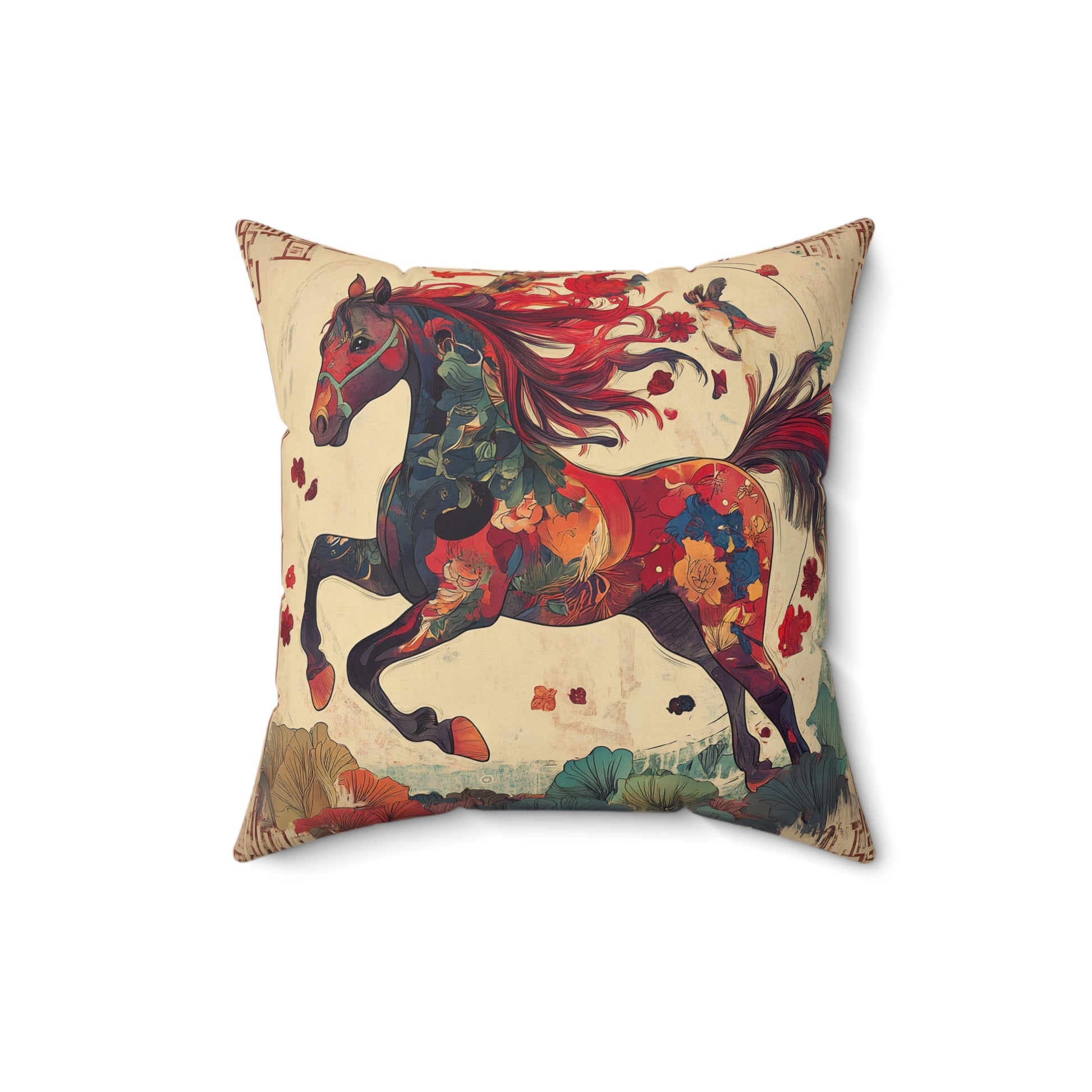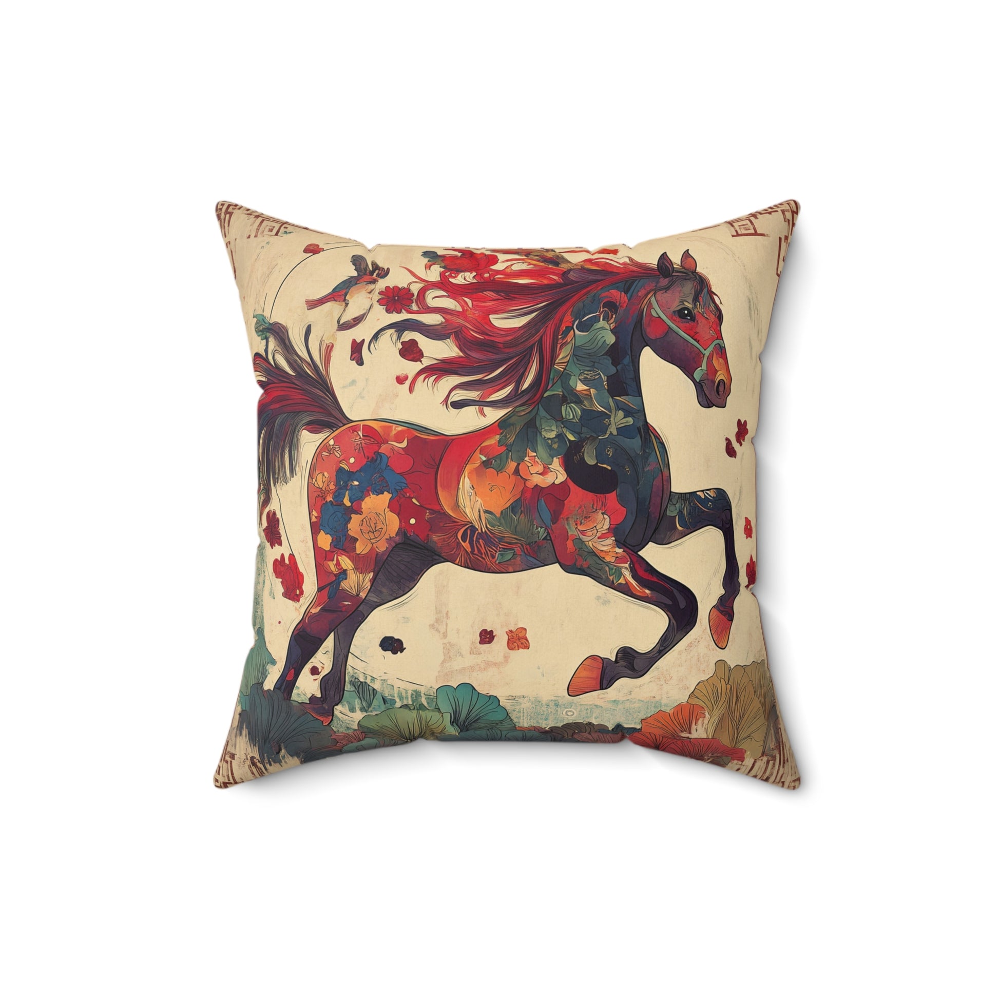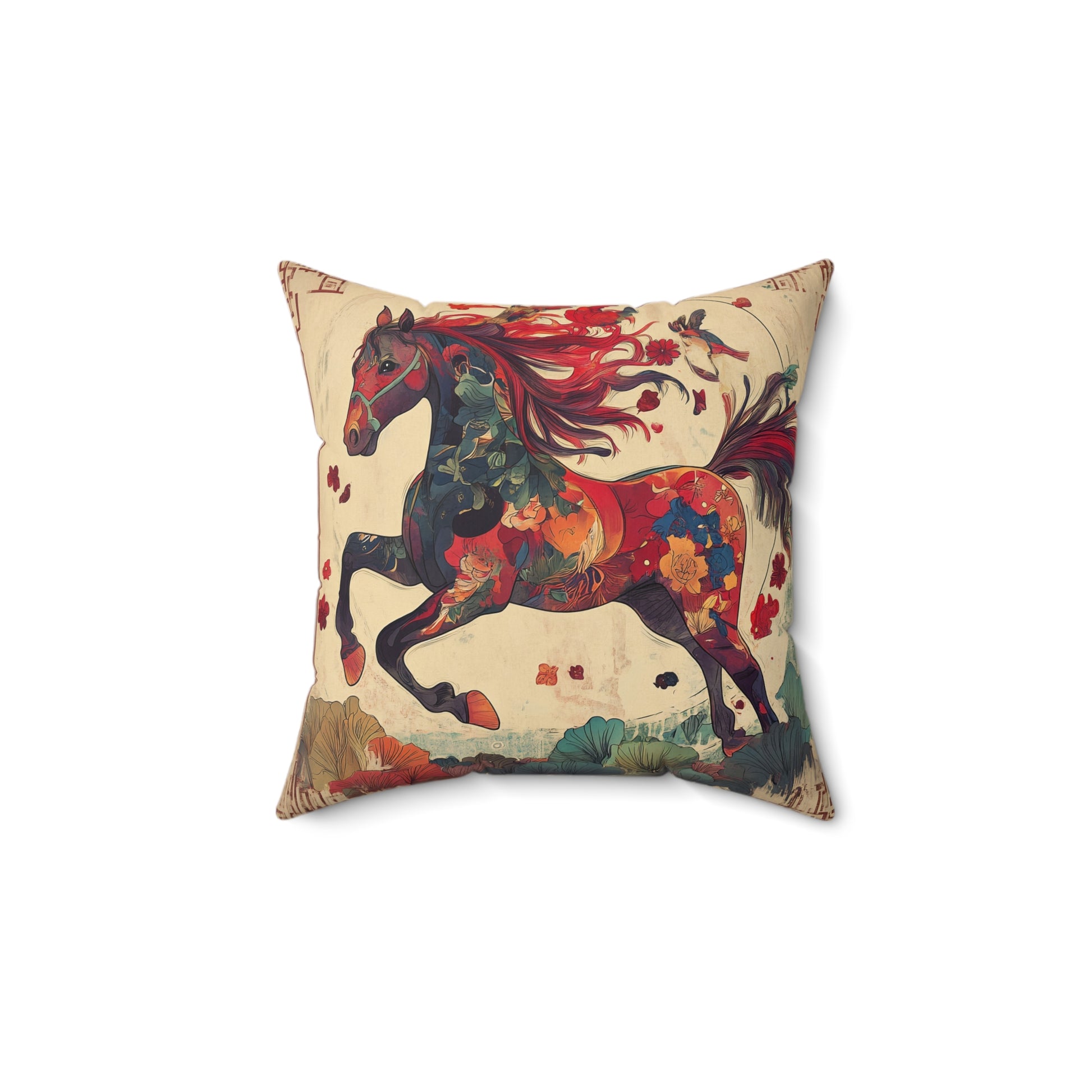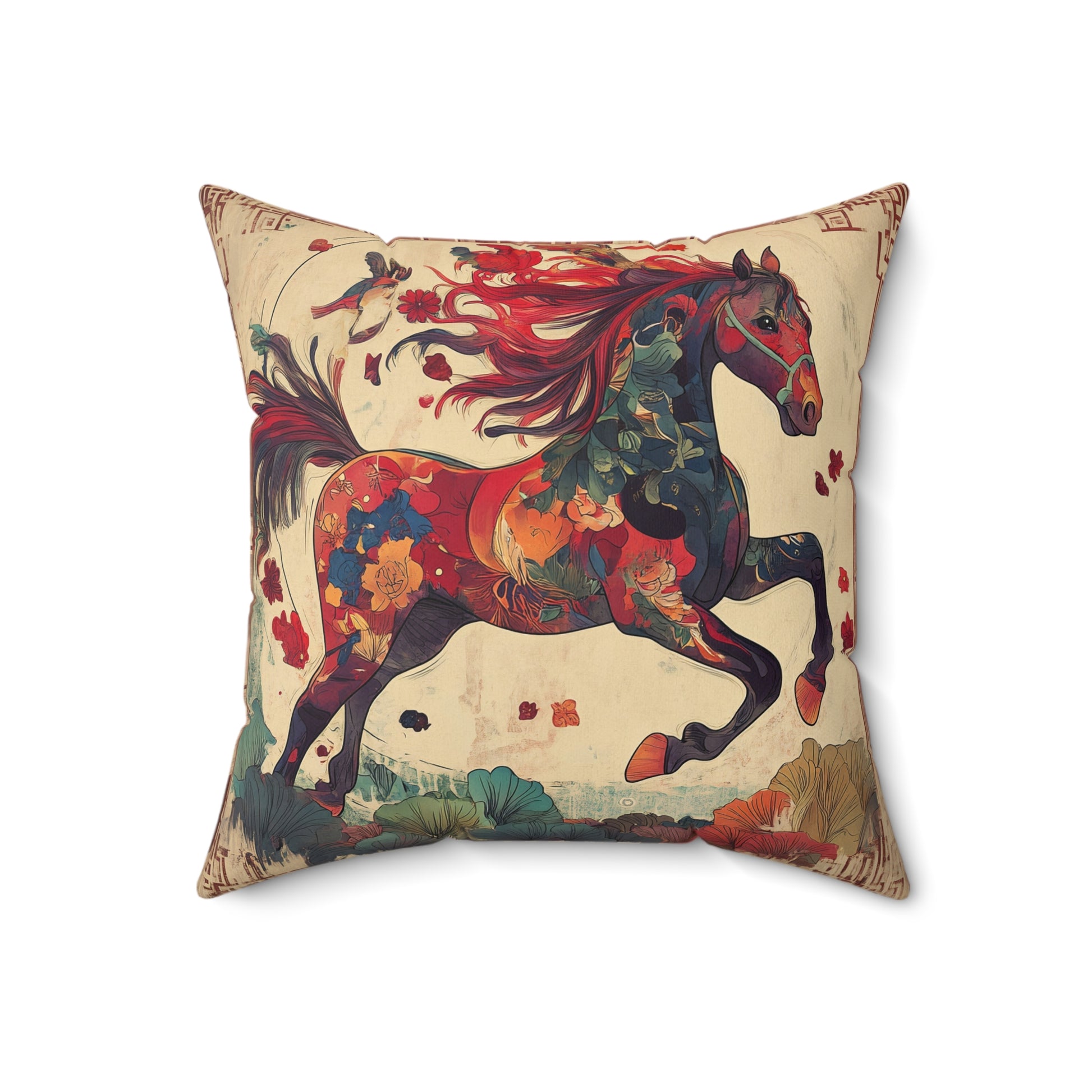 Year of the Horse Faux Suede Square Pillow | Decorative Throw Pillow